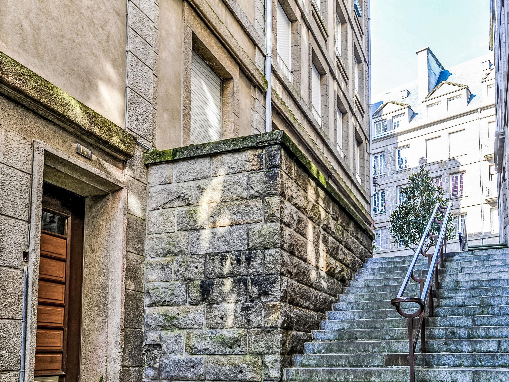 Apartment house "Grands Degrès", 4 storeys. In the centre of Saint Malo Intra Muros, excellent location: right in the centre but still quiet, traffic calmed area, 100 m from the sea, 250 m from the beach, in a cul-de-sac. Public parking on the road. Short-stay parking zone (fee). Shop 50 m, restaurant, bar 20 m, bakery 50 m, café 20 m, bus stop "Intramuros" 650 m, railway station "Gare TGV" 2.4 km, ferry "Gare Maritime" 700 m, sandy beach "Le Môle" 350 m, thermal baths "Thermes marins de St Malo" 2.6 km. Sports harbour 2.7 km, tennis 2.3 km, indoor tennis centre 2.3 km, riding stable 7.9 km. Nearby attractions: Cancale 15 km, Dol de bretagne 28 km, Dinan ville fortifiée 33 km, Dinard 11 km, Grand aquarium de saint Malo 5 km, Casino Saint-Malo 2 km. Please note: no lift. The keys‘ handover takes place by the agency Interhome in Saint Malo, 2 km.