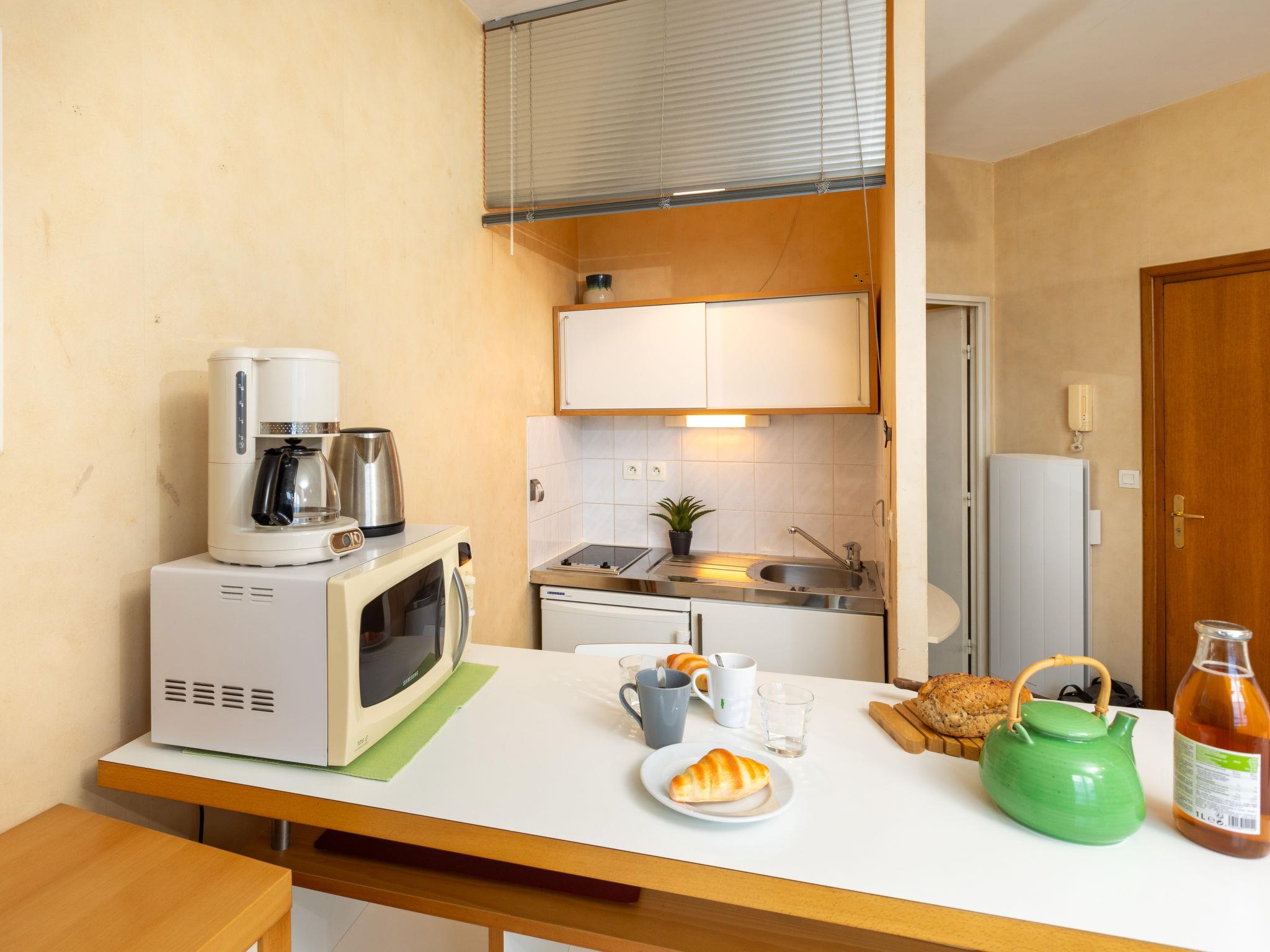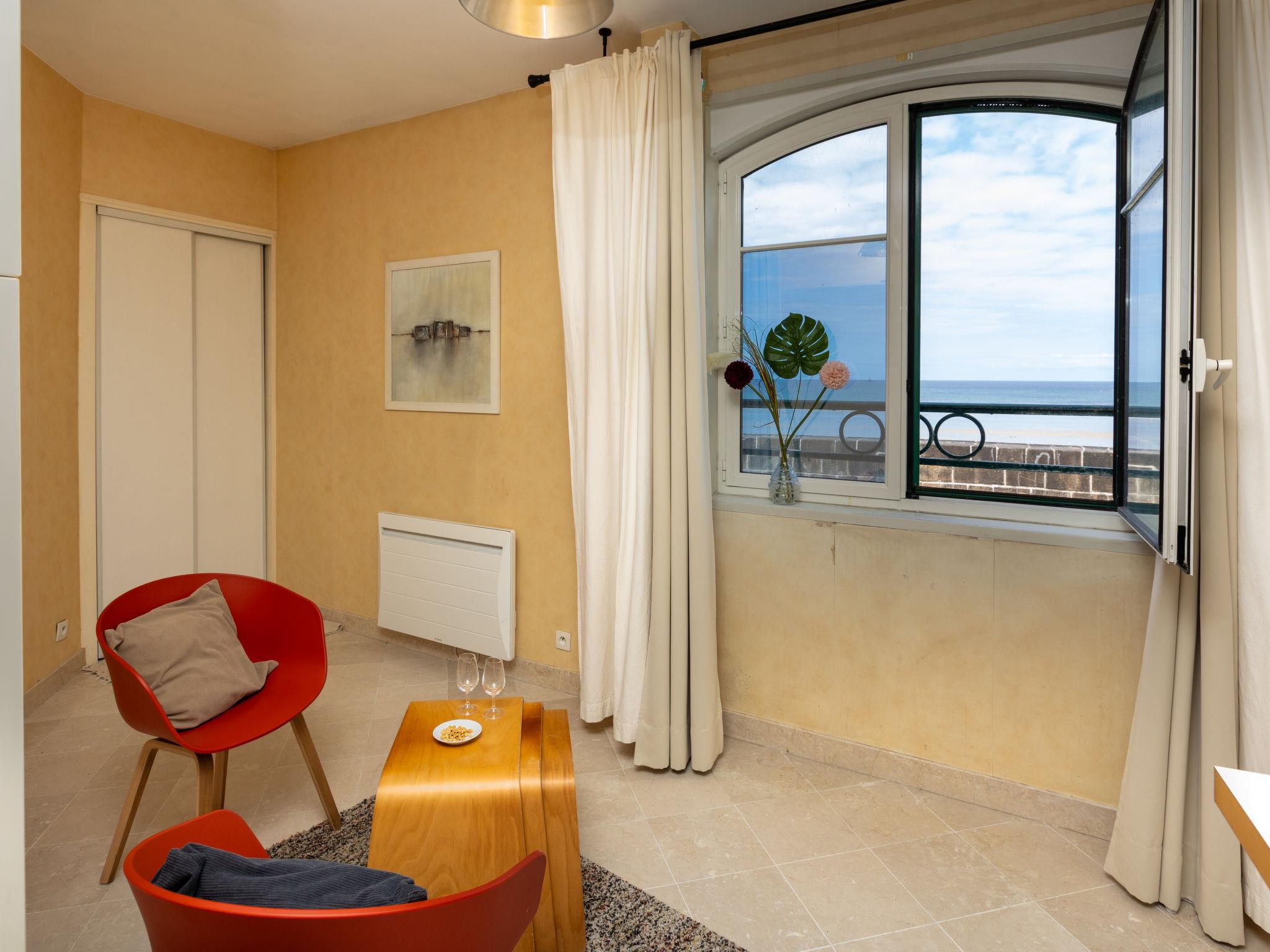 "Les Armateurs 3", 1-room studio 23 m2, on the ground floor. Bright, comfortable furnishings: living/sleeping room with 1 double fold-away bed (1 x 140 cm, length 190 cm), dining nook and TV (flat screen). Small kitchenette (2 hot plates, toaster, kettle, microwave, electric coffee machine). Shower/WC. Electric heating. Very beautiful view of the sea. Facilities: iron, hair dryer. Internet (WiFi, extra). Please note: apartment street side. Non-smokers only. Smoke alarm. Offer by a private individual according to Art. 155, IV of CGI. 35288005491A7