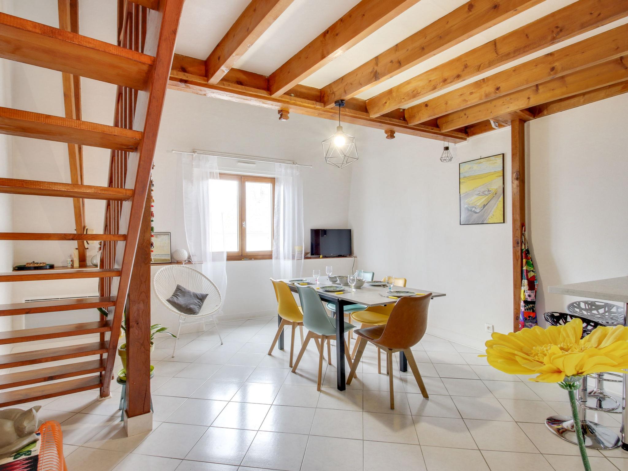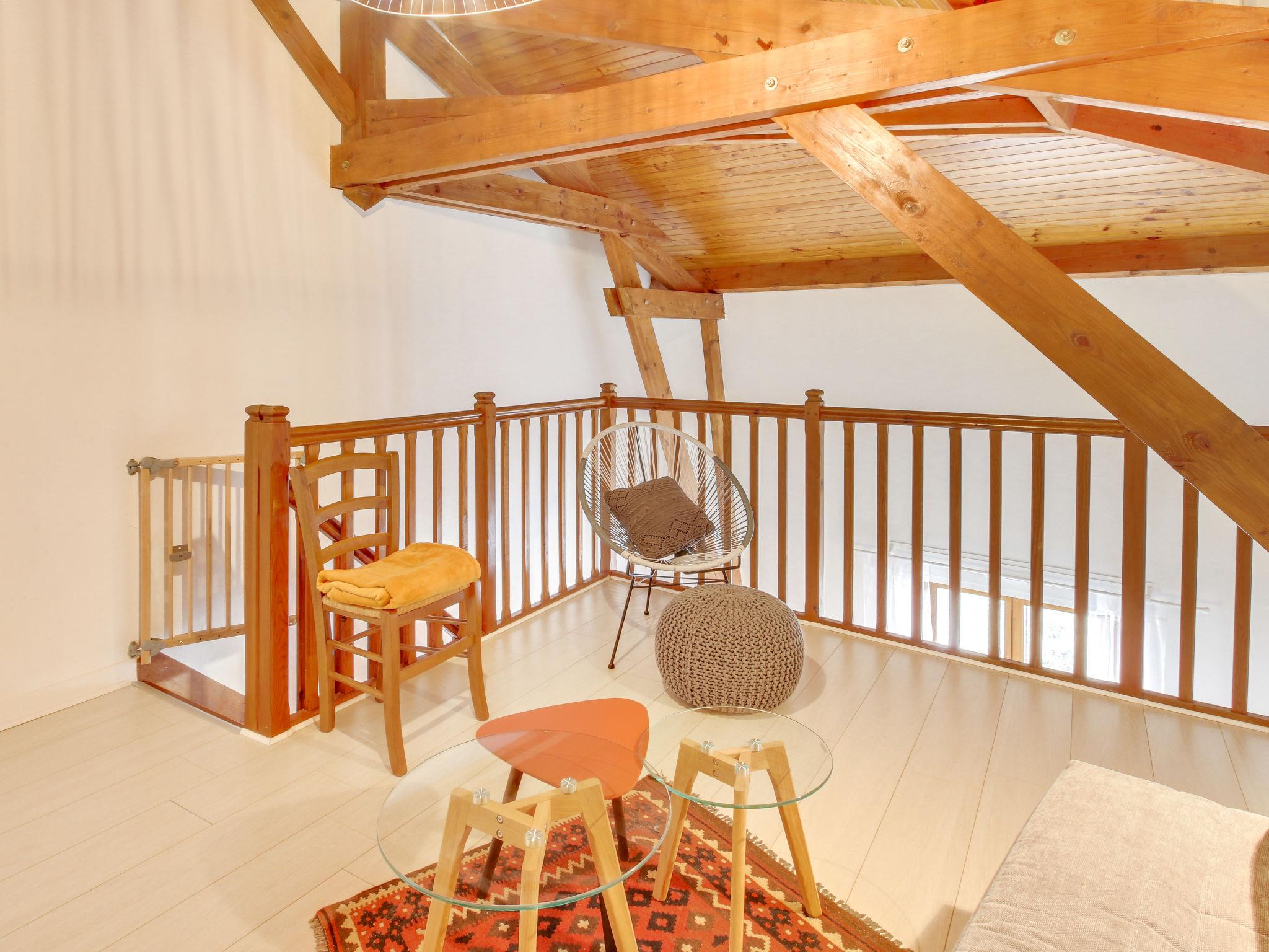 "Emeuraude", 2-room apartment 62 m2 on 3rd floor, south facing position. Beautiful and tasteful furnishings: living/dining room with TV (flat screen). Open kitchen (oven, 4 induction hot plates, microwave, freezer, electric coffee machine). Sep. WC. Upper floor: gallery with 1 double sofabed (1 x 140 cm, length 190 cm). 1 room with 1 french bed (1 x 140 cm, length 190 cm). Shower/WC. Electric heating. Facilities: washing machine, dryer. Internet (WiFi, extra). Please note: smoke alarm. Instead of an enclosed bedroom, some sleeping areas are located in an open-plan area (gallery, alcove, etc.). 3528800288919