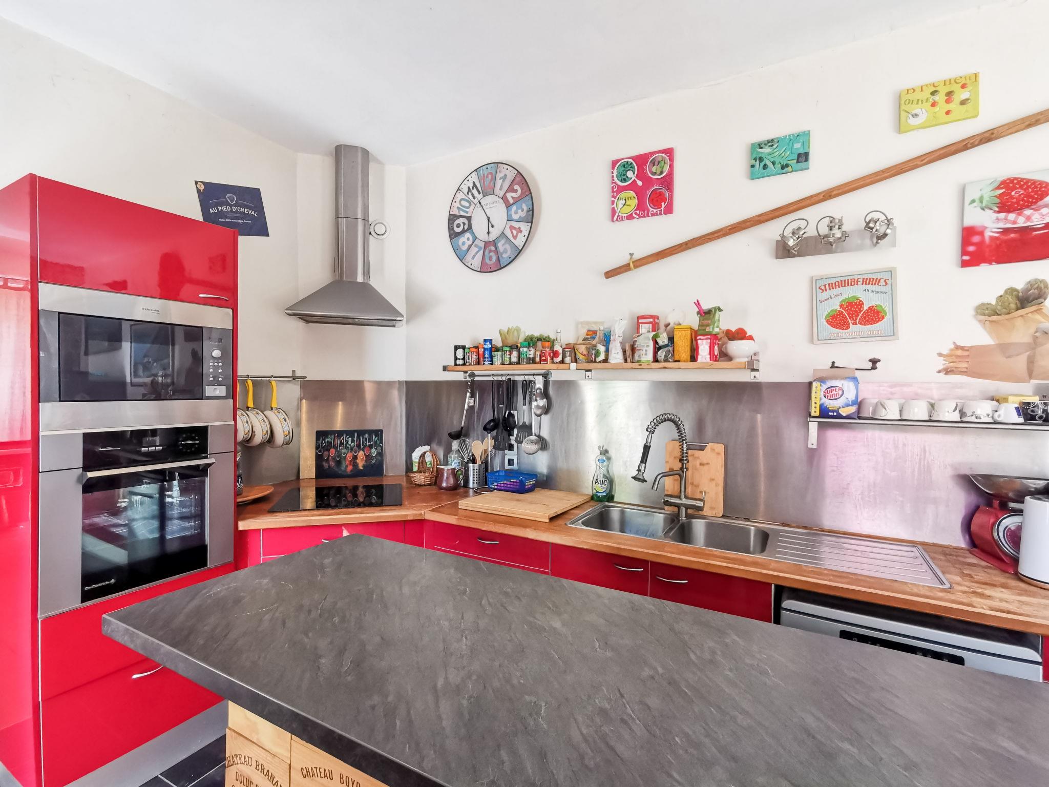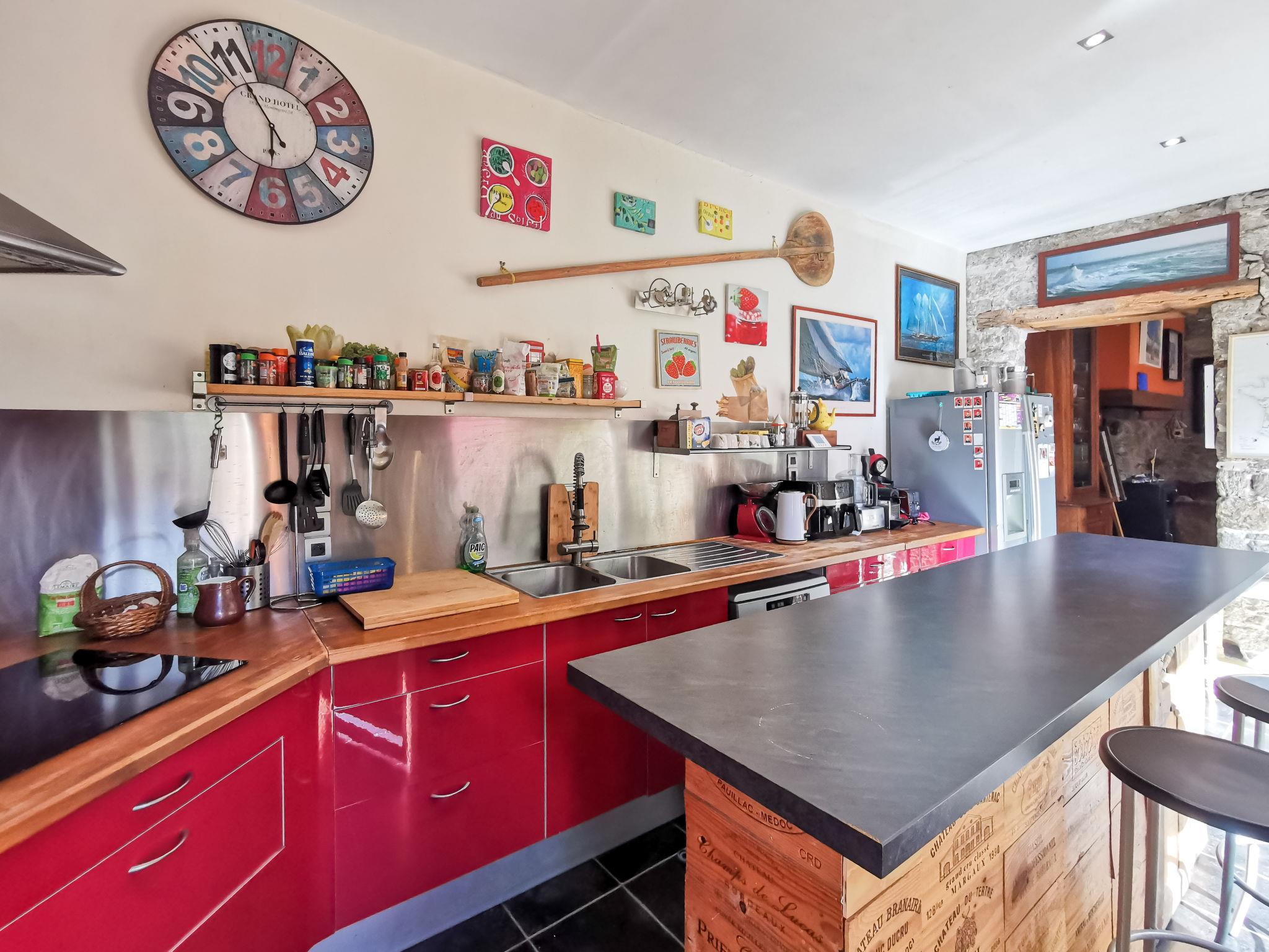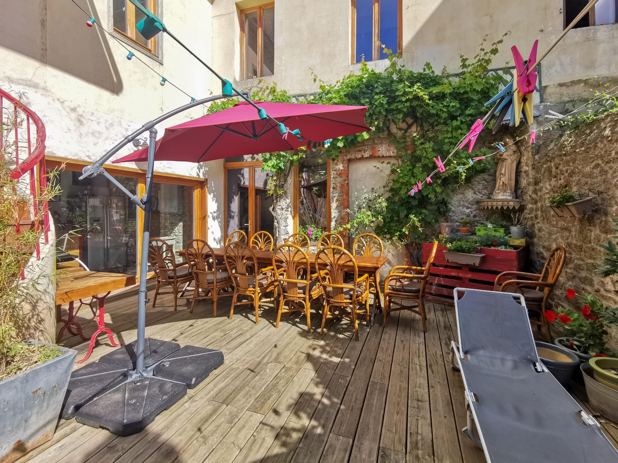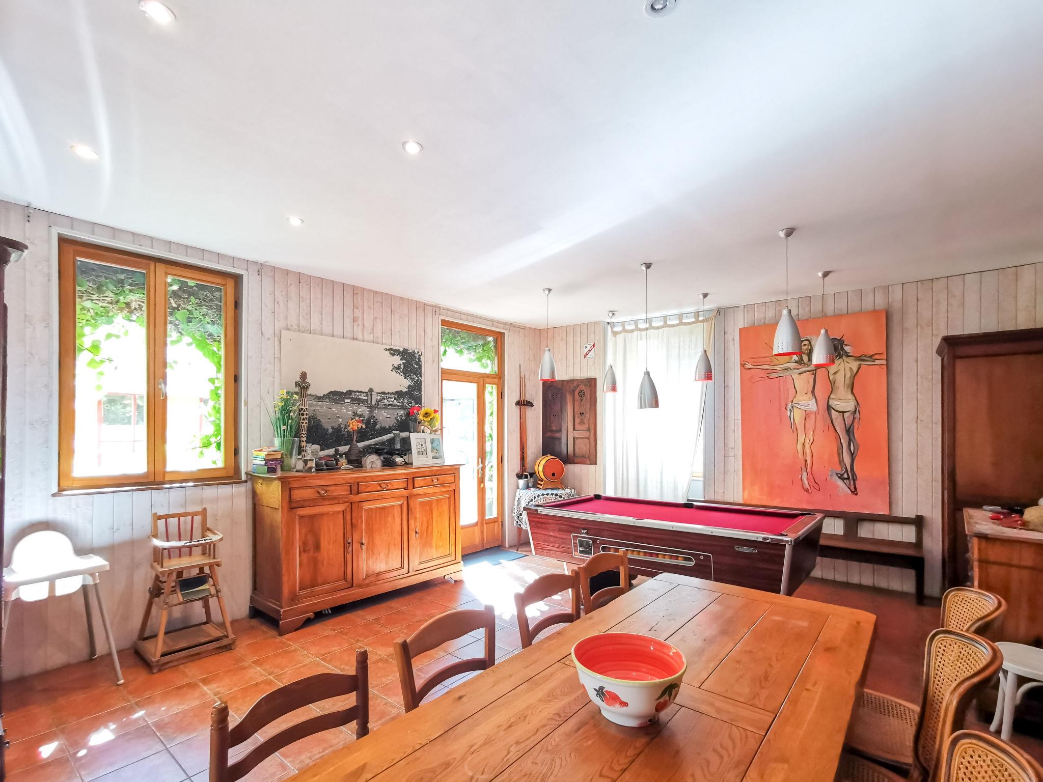 "Le Patio", 7-room house 250 m2 on 3 levels. Spacious, comfortable furnishings: large dining room 30 m2 with dining table. Exit to the terrace. Large lounge with TV (flat screen). Exit to the terrace. Billiard room. Large, open kitchen (oven, dishwasher, 4 ceramic glass hob hotplates, toaster, kettle, microwave, freezer, electric coffee machine) with bar. Exit to the terrace. Sep. WC. Gas heating. Upper floor: 1 large room with 1 bed (90 cm, length 190 cm), 1 french bed (1 x 160 cm, length 200 cm), hand-basin and shower. 1 large room with 2 beds (90 cm, length 190 cm), 1 french bed (1 x 160 cm, length 200 cm), hand-basin and shower. 1 room with 1 bed (90 cm, length 190 cm). Sep. WC. 2nd upper floor: large walk-through room with 1 french bed (1 x 140 cm, length 190 cm). 1 large room with 1 french bed (1 x 160 cm, length 200 cm), hand-basin. Large terrace. Terrace furniture, barbecue. Facilities: washing machine. Internet (WiFi, free). Please note: non-smoking house. Smoke alarm. 3528800311982