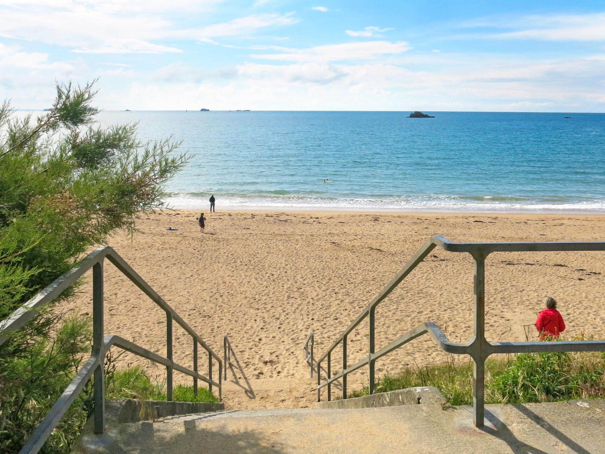 Very beautiful aparthotel "Reine Marine", 4 storeys. 67 apartments in the residence. 3 km from the centre of Saint Malo, 30 m from the sea, direct access to the beach. For shared use: indoor pool heated (13 x 8 m, seasonal availability: 01.Jan. - 31.Dec.). Terrace. In the complex: reception, bar, steam room, lift, storage room for bicycles, washing machine, tumble dryer (for shared use, extra), bicycle rental. Bread roll service. Parking. E-charging station. Shop 400 m, bus stop 250 m, sandy beach "Plage de Minihic" 30 m. Sailing school 1 km, tennis 2 km. Nearby attractions: Cancale 12 km, Dinard 13 km, Dinan 36 km, Mont Saint Michel 58 km, Rennes 70 km. Hiking paths: GR34. Please note: the photograph shows a typical example.
