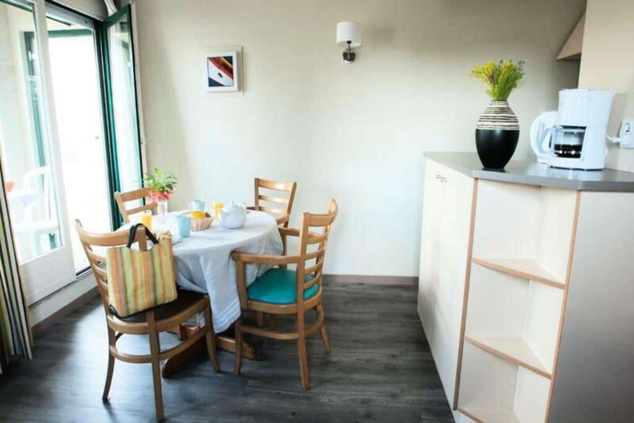Beliggende i det charmerende Saint-Servan-distrikt i Saint-Malo tilbyder R?sidence Ty Mat*** et fredeligt tilflugtssted midt i smukke bretonske landskaber. Boligen ligger i en blomsterfyldt, skovkl?dt have, der har f?et det prestigefyldte "Green Key"-m?rke. Dens hyggelige lejligheder, fordelt p? fire etager, der er tilg?ngelige med en elevator, giver en beroligende atmosf?re med lyse farver designet til at skabe et behageligt og afslappende milj? for dit ophold. Kun 500 meter fra Bas Sablons-stranden giver boligen nem adgang til b?de afslapning ved havet og aktive udfoldelser. For dem, der s?ger eventyr, kan du nyde cykling, ridning eller sejlads. Fra juni til september inviterer den lille opvarmede udend?rs pool g?ster til at slappe af. Det n?rliggende shoppingomr?de og fiskerihavn, kun 300 meter v?k, sikrer, at du har alle de faciliteter, du har brug for under dit ophold. Kulturelle vandreture, workshops og lokale bes?g tilbyder berigende m?der at udforske regionen p?. Hver studio er designet til to g?ster, og byder p? en stue med en dobbelt sovesofa, et veludstyret tek?kken og et badev?relse med separat toilet. Yderligere faciliteter inkluderer gratis Wi-Fi, og for familier er et babys?t (med seng, klapvogn, h?j stol og pusleunderlag) tilg?ngeligt efter reservation. Parkering er ogs? tilg?ngelig mod et gebyr, samt slutreng?ring (undtagen k?kkenomr?det). K?ledyr er velkomne mod et ekstra gebyr.