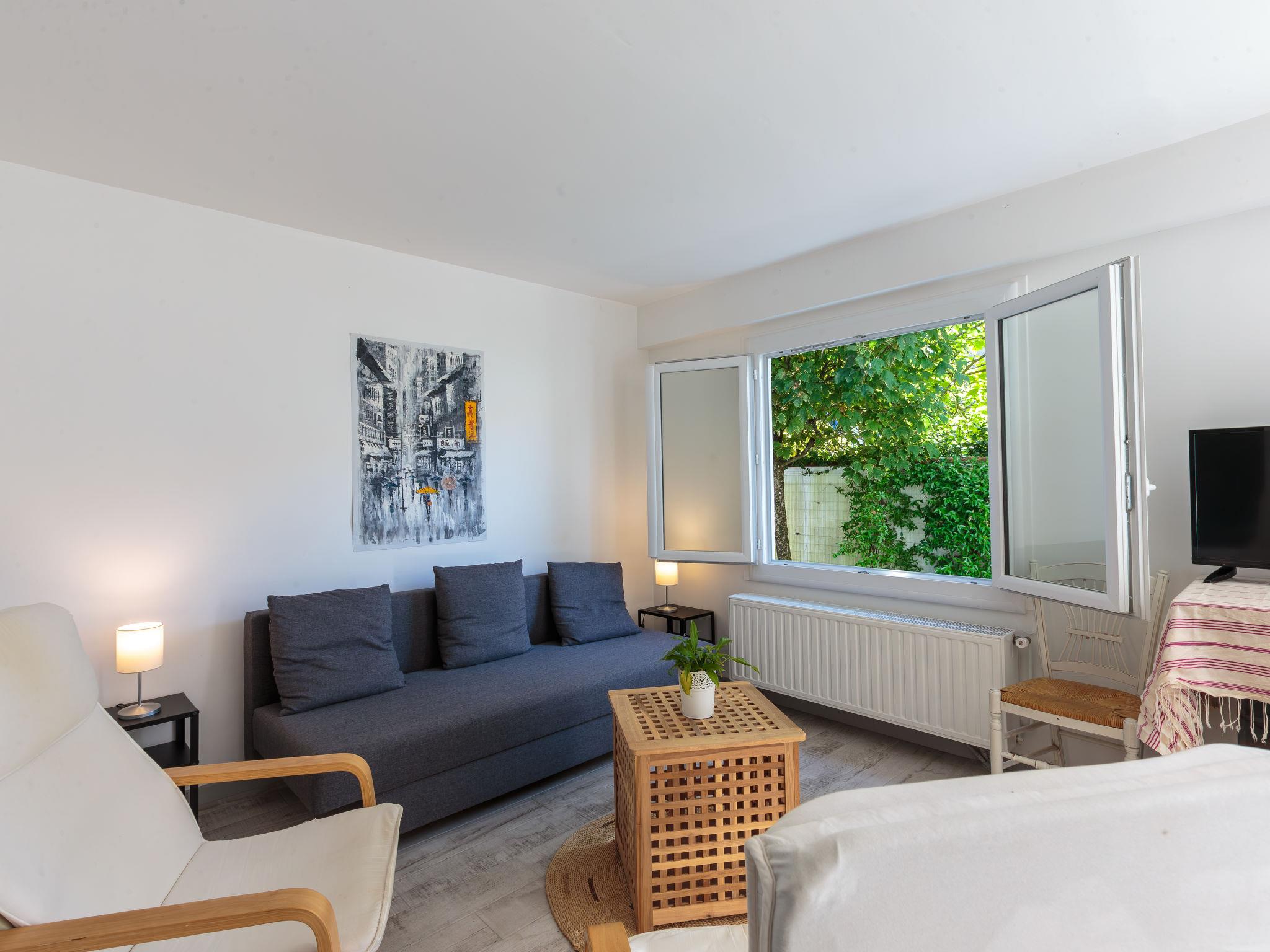 2-room apartment 60 m2, on the lower ground floor. Practical and beautiful furnishings: living/dining room with 1 double sofabed (1 x 140 cm, length 190 cm), TV (flat screen). Exit to the terrace. 1 room with 1 french bed (1 x 140 cm, length 190 cm), shower. Open kitchen (4 hot plates, oven, dishwasher, microwave, freezer, electric coffee machine, Capsules for coffee machine (Nescafe Dolce Gusto) extra). Sep. WC. Electric heating. Terrace. Terrace furniture, barbecue. Facilities: washing machine. Internet (WiFi, free). Please note: smoke alarm. Access to the apartment by an access path with stairs at the rear of the residence.