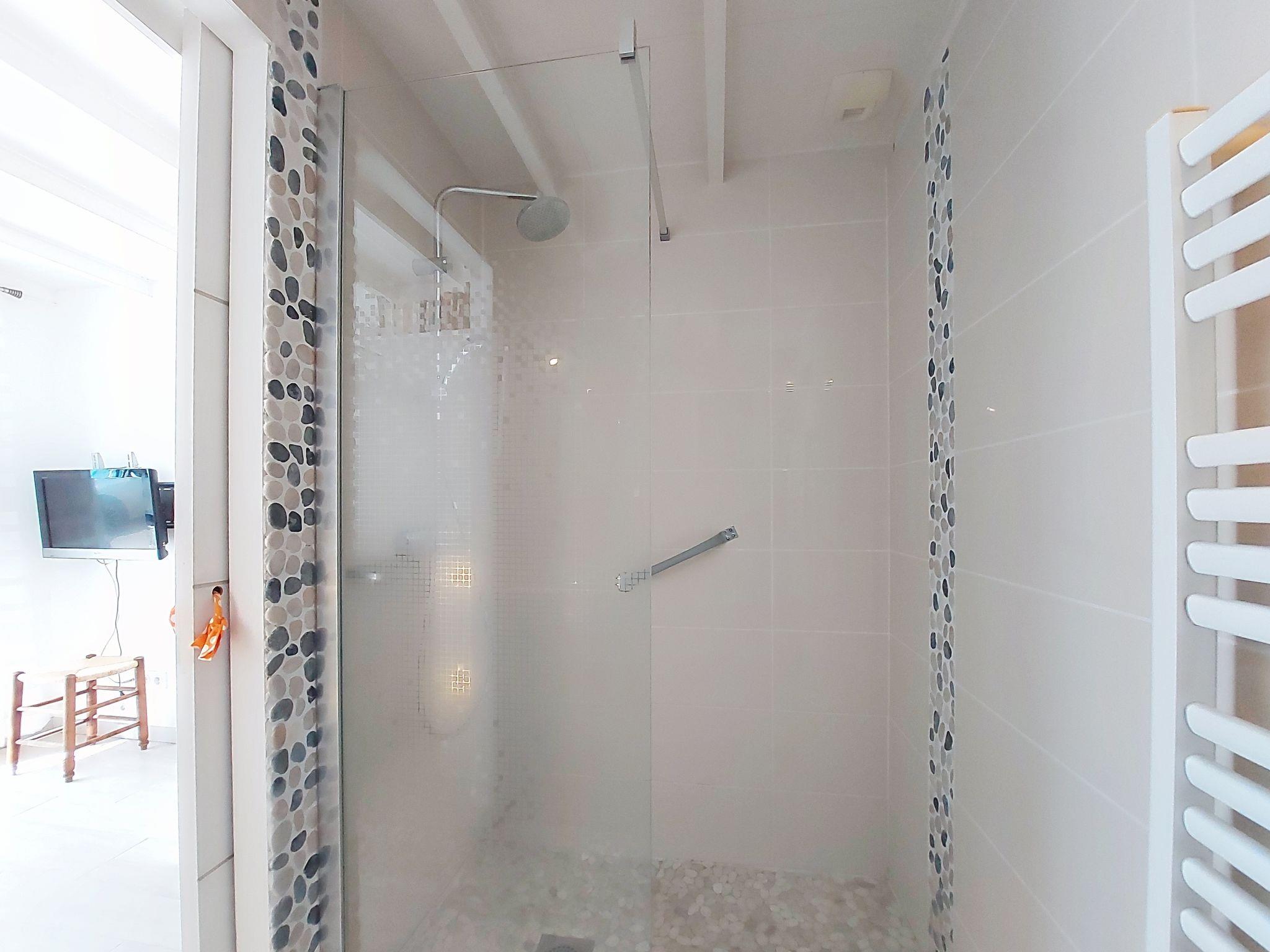 Saint Palais 6 km from Royan: Small terraced house "Les Hauts du Parc". In the resort 600 m from the centre of Saint Palais sur Mer, in the residential district, 600 m from the sea, 600 m from the beach, west facing position. Public parking on the road. Grocery 600 m, supermarket 700 m, restaurant 600 m, bakery 850 m, café 600 m, bus stop "Rha" 500 m, railway station "Royan" 7 km, sandy beach "Bureau - Saint Palais sur Mer" 600 m, park "Luna Park (Juillet - Août)" 13 km, indoor swimming pool 7 km, thermal baths "Thalassothérapie Thalazur Royan" 5 km, lake Saint Palais sur Mer 600 m. Golf course (18 hole) 2.2 km, surf school 750 m, sailing school 1.2 km, indoor tennis centre 1 km, riding stable 3 km. Nearby attractions: Golf de Royan 2500 km, Centre équestre Maine Gaudin 3 km, Embarcadère Royan - Le Verdon 6 km, Palais des Congrès - Royan 6 km, Zoo de La Palmyre 9 km, Hippodrome - La Palmyre 10 km. Please note: the keys‘ handover takes place by the agency Interhome in Vaux sur Mer, 4 km. The owner lives on the same property.