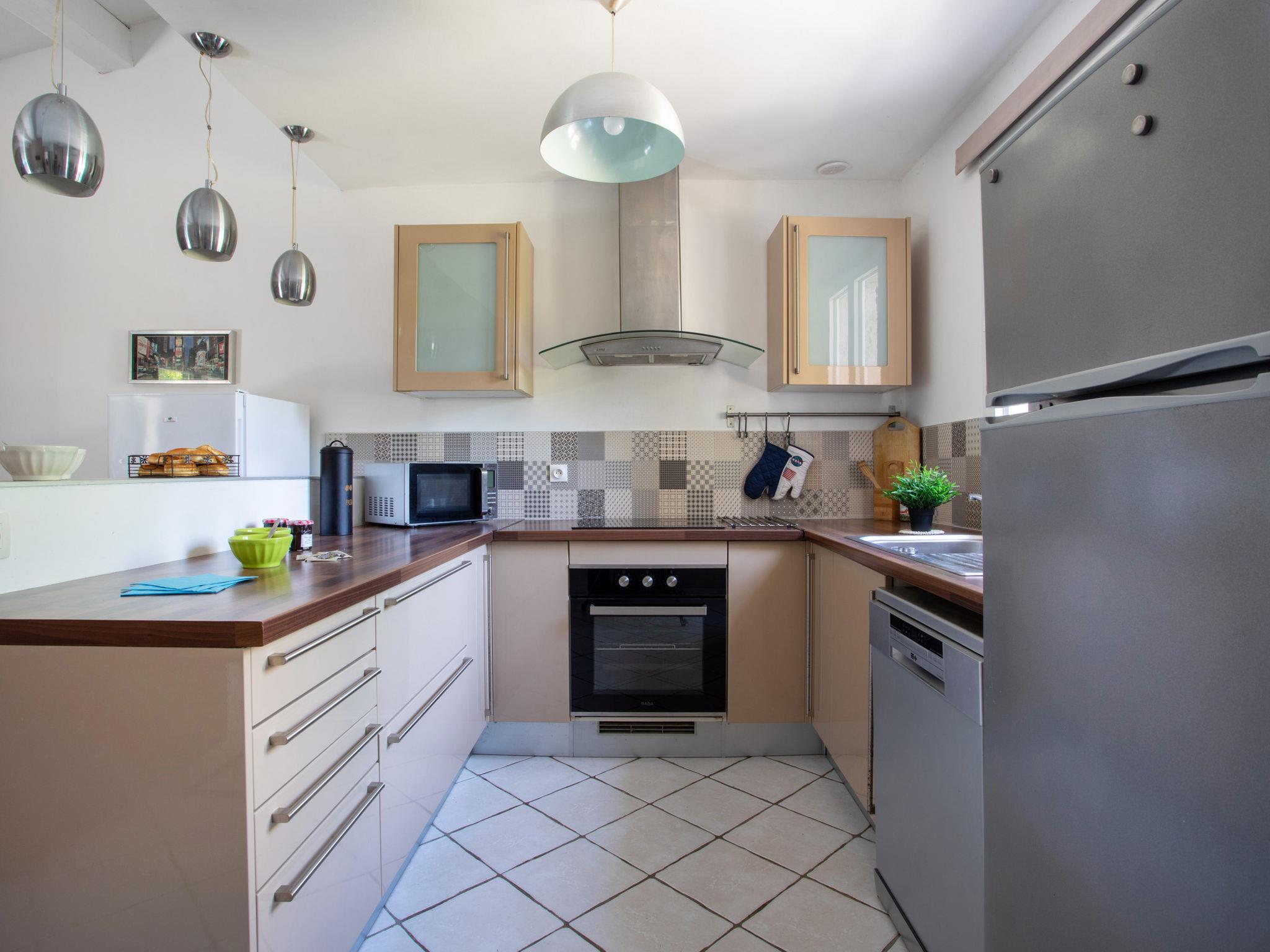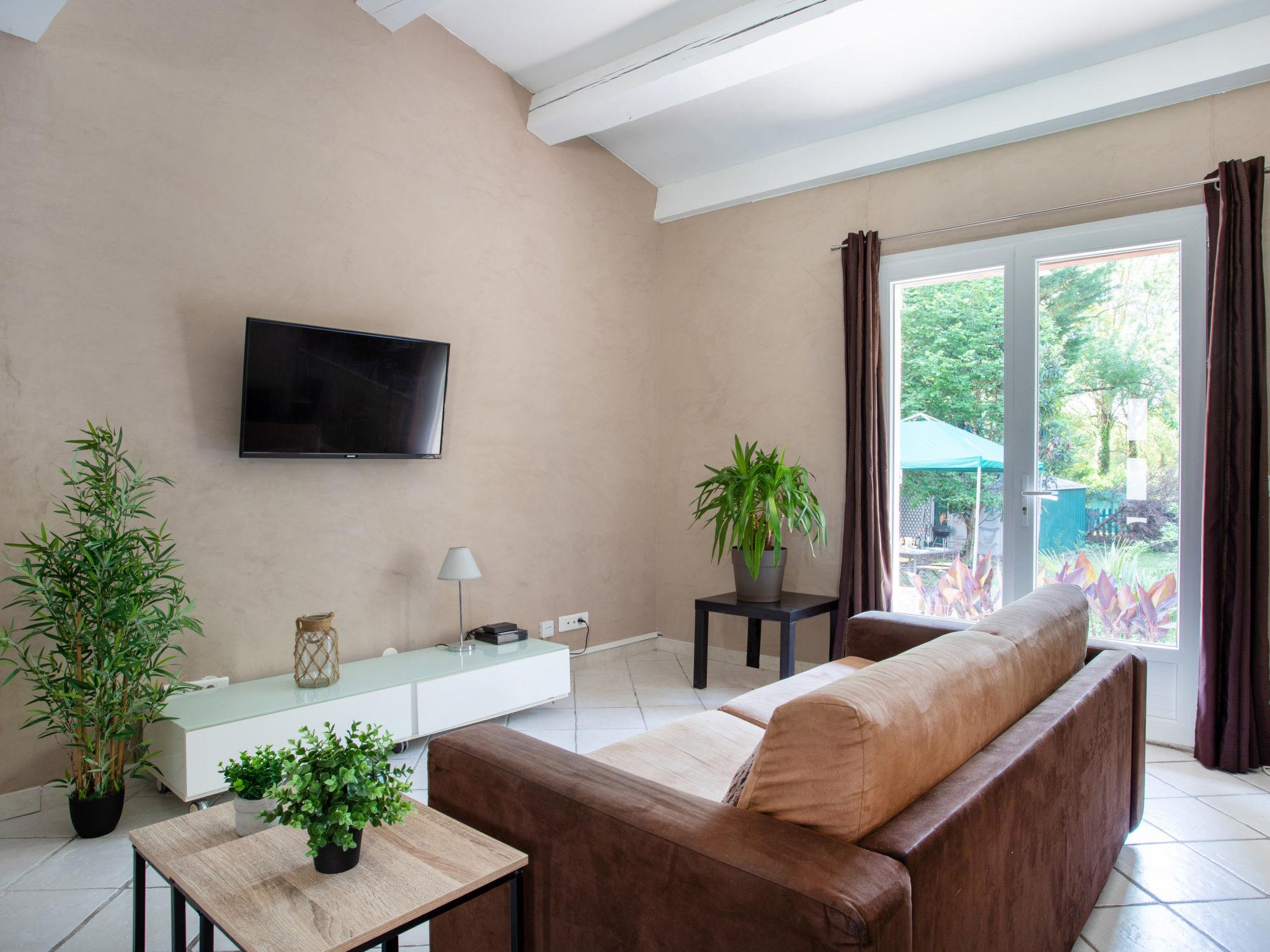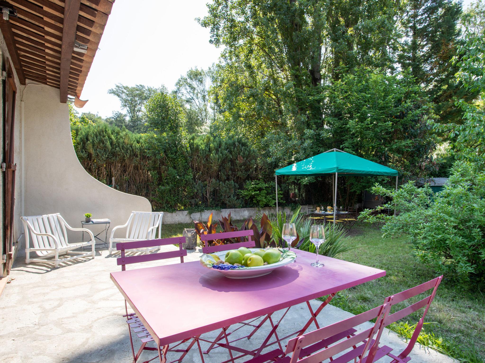 3-room terraced house 63 m2. Comfortable and modern furnishings: living/dining room with 1 double sofabed (1 x 140 cm, length 190 cm), TV (flat screen). Exit to the garden, to the terrace. 1 room with 1 french bed (160 cm, length 200 cm), TV (flat screen). Exit to the garden. 1 room with 2 beds (90 cm, length 190 cm). Open kitchen (oven, dishwasher, 3 induction hot plates, toaster, kettle, microwave, electric coffee machine). Exit to the garden. Shower, sep. WC. Heating, air-conditioning. Terrace 10 m2, porch. Terrace furniture, barbecue. View of the garden. Facilities: washing machine, iron, hair dryer. Internet (WiFi, free). Parking (2 cars). Please note: non-smoking house. Smoke alarm. Offer by a private individual according to Art. 155, IV of CGI. 06128000027SV