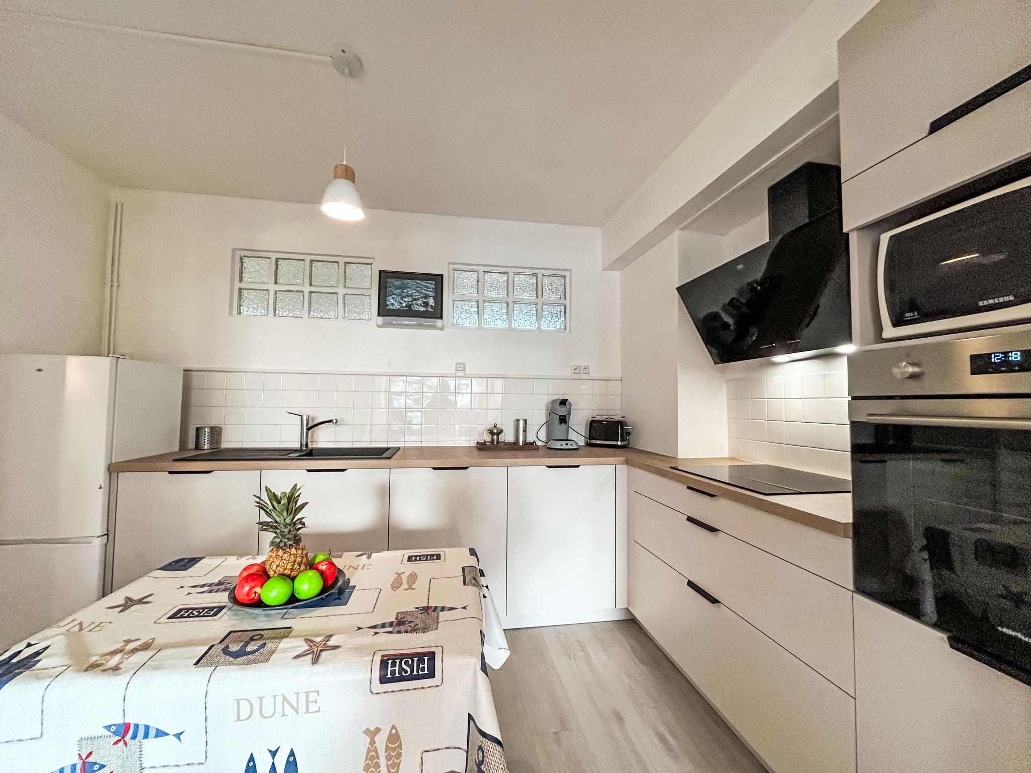 3-room apartment 70 m2 on 1st floor. Spacious, practical furnishings: living/dining room with sliding door with TV (flat screen). Exit to the balcony. 1 room with 1 double bed (1 x 140 cm, length 190 cm). 1 room with 2 beds (90 cm, length 190 cm). Kitchen (oven, dishwasher, 3 induction hot plates, microwave, electric coffee machine, Capsules for coffee machine (Senseo) extra) with small dining table. Bathroom, sep. WC. Balcony furniture. Beautiful view of the sea. Facilities: washing machine, baby cot. Internet (WiFi, extra). Parking. Please note: smoke alarm. Offer by a private individual according to Art. 155, IV of CGI. 5623300011402