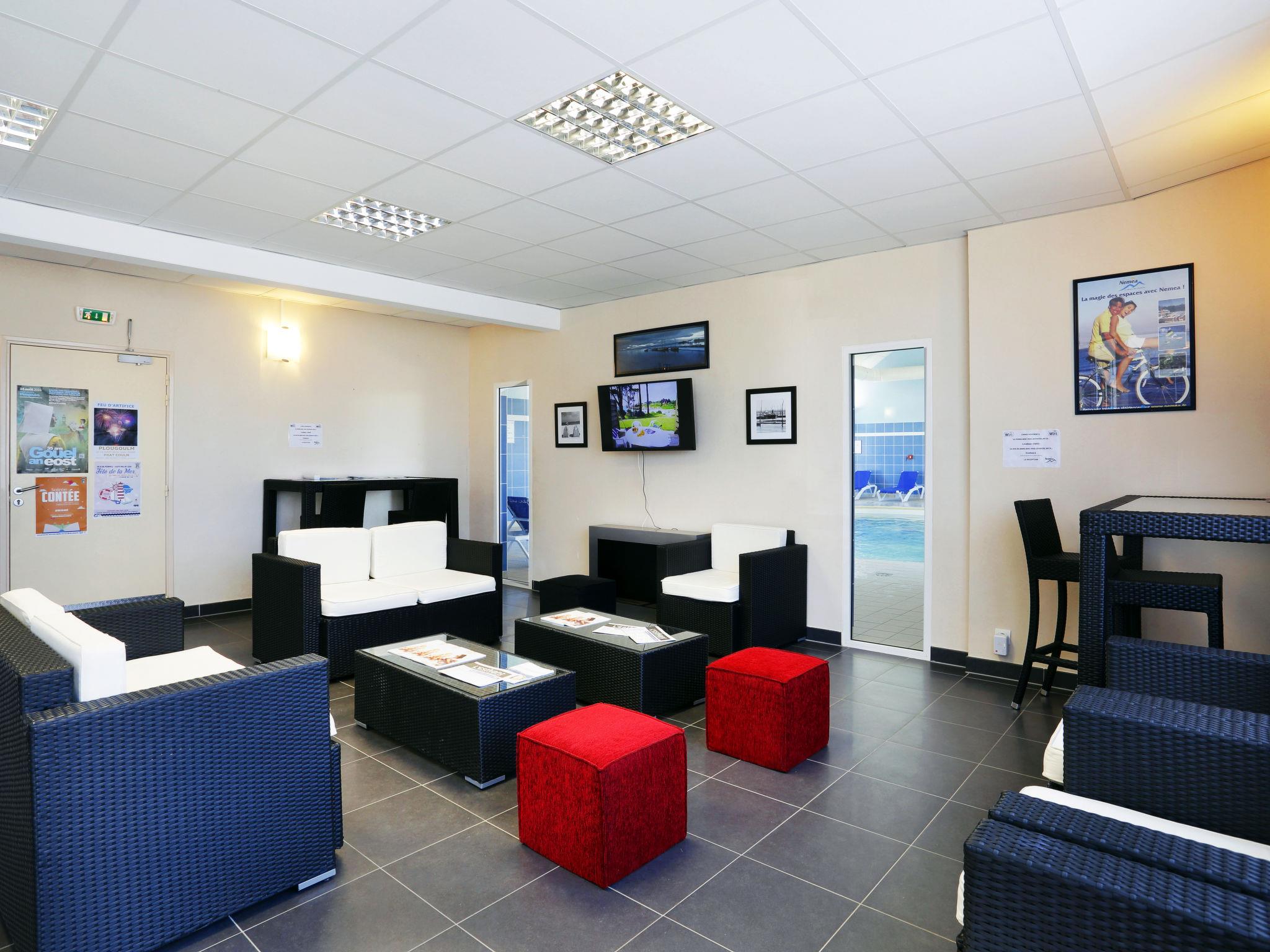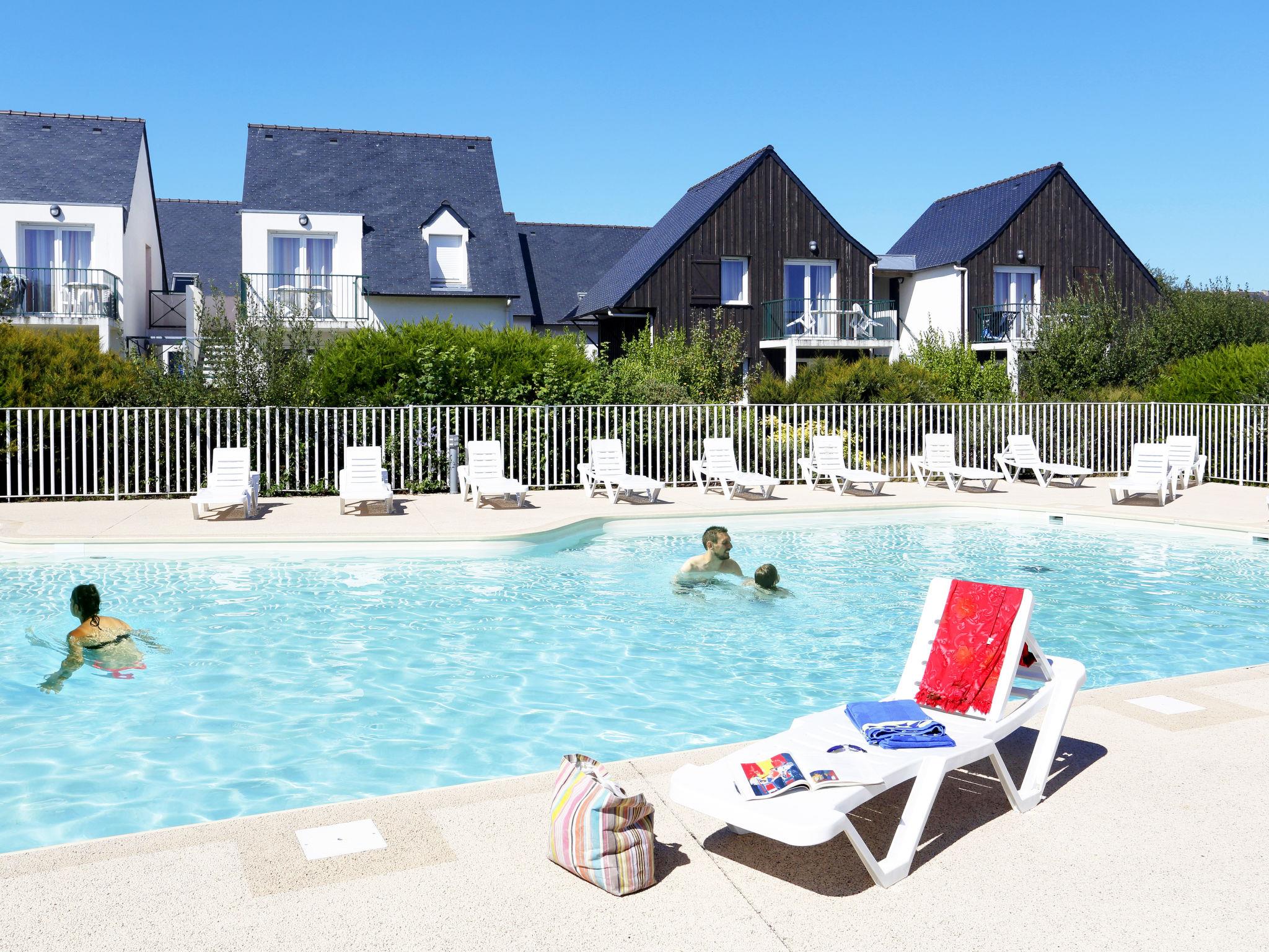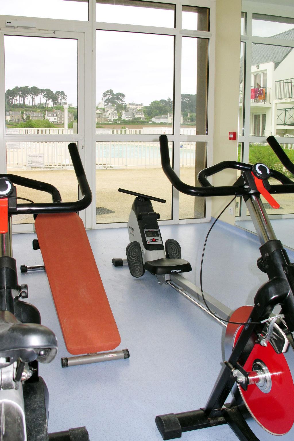 Child friendly resort "Les Roches". 84 houses in the residence. 28 apartments in the residence. 900 m from the centre of St. Pol-de-Léon, 1.5 km from the sea. For shared use: property 3 ha (fenced) with lawn, swimming pool heated, fenced (136 m2, seasonal availability: 01.Jan. - 31.Dec.). Tennis, terrace. In the complex: reception, internet access, WiFi, sauna, fitness room, storage room for bicycles, washing machine, tumble dryer (for shared use, extra). Parking at 50 m on the premises. Shop 900 m, restaurant 500 m, sandy beach 1.5 km. Please note: car-free holiday complex. The photograph shows a typical example. The holiday properties may differ in living space, floorplan, equipment and furnishing.
