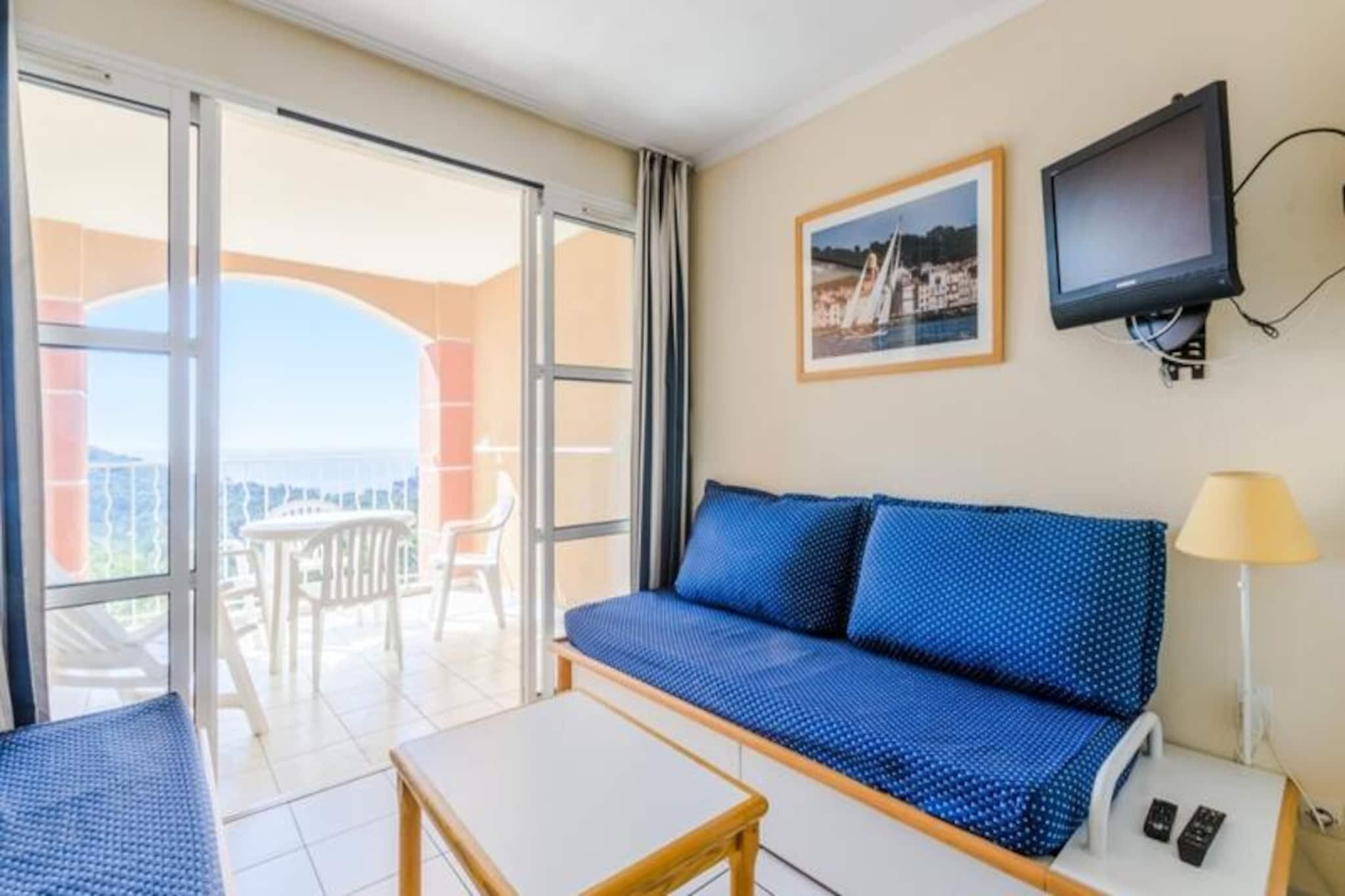 Beliggende p? 4. sal med en fantastisk havudsigt, denne ferielejlighed med aircondition tilbyder et hyggeligt og praktisk tilflugtssted. Det 29 m² store rum omfatter en stue med sovesofa og udtr?ksseng, et veludstyret amerikansk k?kken med spiseplads, et sovev?relse med en dobbeltseng og et badev?relse med badekar og separat toilet. Den overd?kkede sydvendte terrasse byder p? et afslappende udend?rsomr?de, og en dedikeret overd?kket parkeringsplads bidrager til bekvemmeligheden. Ejendommen er k?ledyrsvenlig (ekstra gebyrer) og tilbyder tr?dl?s internetadgang mod et ekstra gebyr. Denne lejlighed ligger i Cap Esterel Village Club og er omgivet af middelhavscharme. Boligen ligger i g?afstand fra butikker, restauranter og aktiviteter, kun 100-500 meter v?k. For udend?rsentusiaster giver ejendommen adgang til vandsport, vandreture i Esterel-massivet og canyoning i Verdon Gorges. G?sterne kan ogs? nyde det n?rliggende vandomr?de med flere pools, herunder opvarmede muligheder, der er s?son?bent. Det pulserende landsbyklubcenter med dets faciliteter og rekreative aktiviteter er mindre end 15 minutter v?k til fods. Denne budgetvenlige indkvartering tilbyder v?sentlige faciliteter, herunder leje af sengelinned og h?ndkl?der, daglig reng?ring og ladestationer til elbiler (mod till?gsgebyr). Med sin praktiske indretning og fantastiske beliggenhed leverer denne ejendom en ideel balance mellem overkommelighed og komfort, hvilket g?r den til et godt valg for en mindev?rdig ferie.