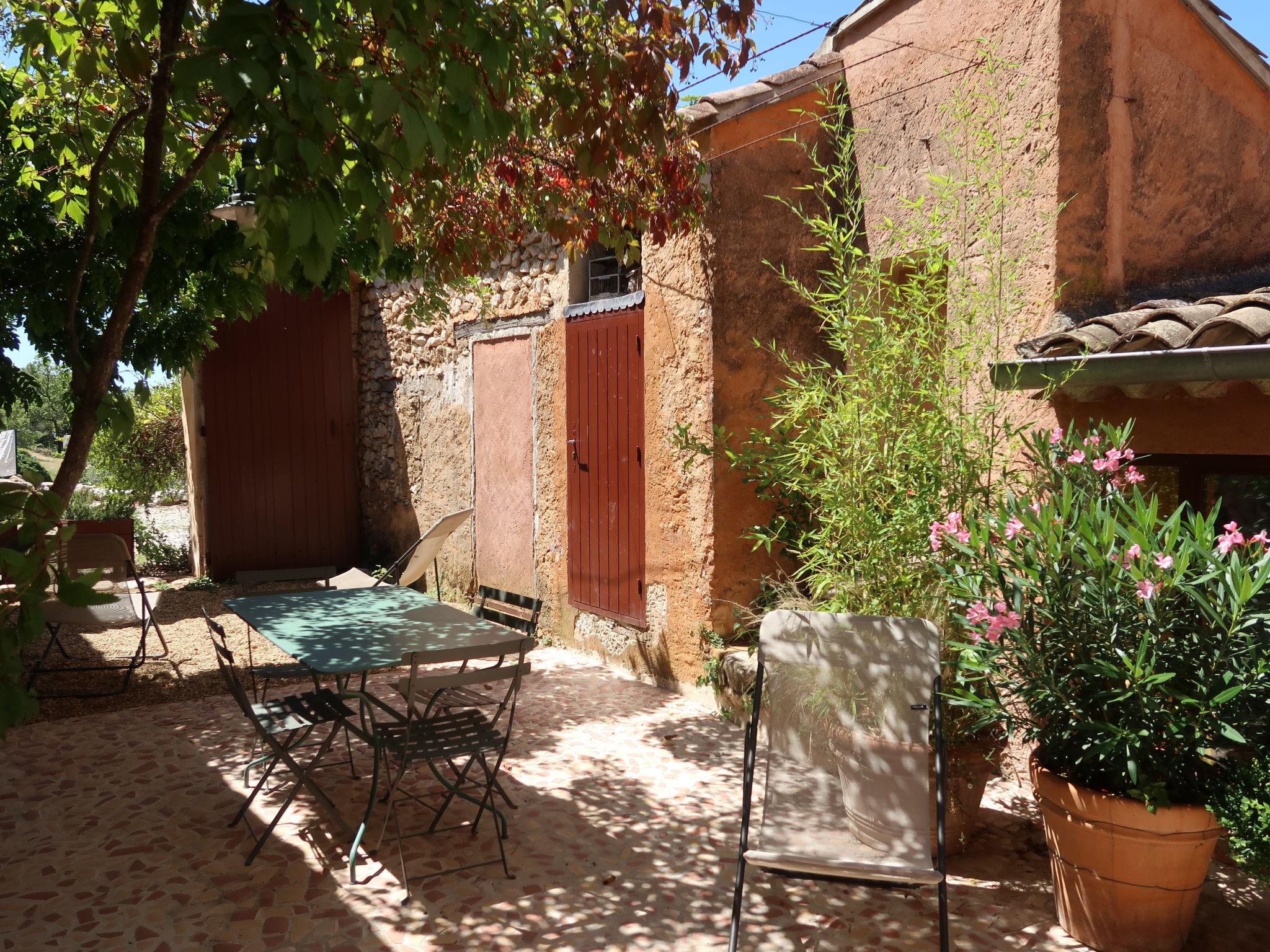 Divided into three adjoining houses (independent access) of which one is occupied by the owner. Mas "Les Geais", from the 17th century, renovated. In a secluded, quiet position. For shared use: property 1 ha with trees. Motor access (200 m via unmade road). Parking on the premises. Shop 3 km, restaurant 3 km, bus stop "Moulin à Huile" 3 km, outdoor swimming pool 3 km. Tennis 10 km. Hiking paths: Ayguier neuf 2 km, Travignon 5 km. Please note: car recommended. Additional accommodations can be booked. Property ref. FR8033.105 is situated on the same property. Lake,Apt 10 km. Please note: on the ground, 50 meters of rental, protected swimming pool reserved for owners.
