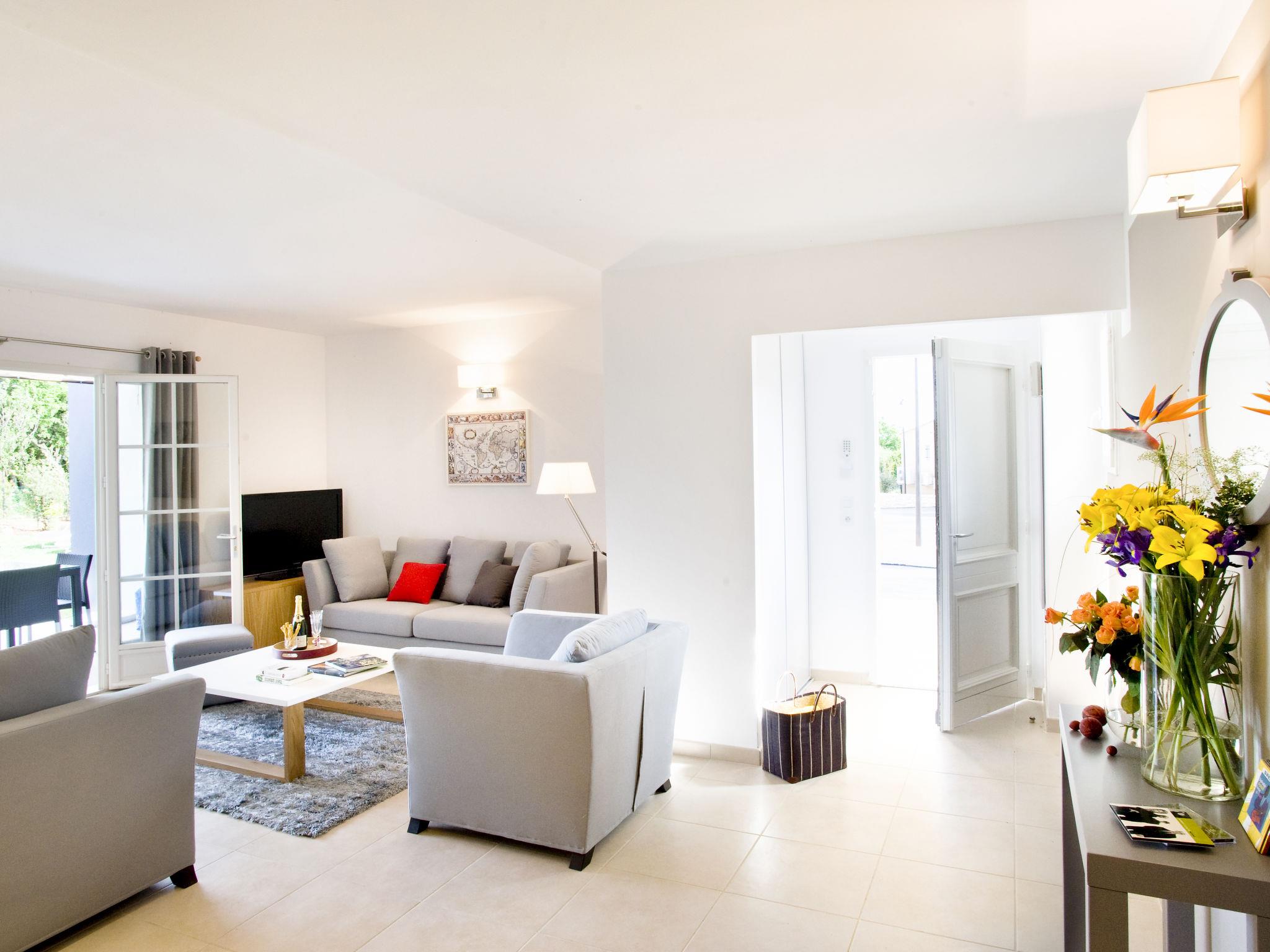 "Le Clos Savornin V10ID", 5-room house 145 m2 on 2 levels. Comfortable and tasteful furnishings: living room with 1 double sofabed, TV, hi-fi system and DVD. Exit to the terrace. 1 room with 1 french bed (160 cm), bathroom and double hand-basin. Exit to the garden. 1 room with 1 french bed, shower and double hand-basin. Dining room with dining table. Open kitchen (oven, dishwasher, 4 ceramic glass hob hotplates, toaster, kettle, microwave, freezer, electric coffee machine). 2 sep. WC's. Upper floor: 2 rooms, each room with 2 beds and shower. Sep. WC. Heating, air-conditioning. Terrace, lawn 600 m2. Terrace furniture, box-room. Facilities: washing machine, dryer. Internet (WiFi, free). Garage. Please note: non-smoking house. Maximum 1 pet/ dog allowed. Please note: WIFI connection is provided for 4 devices. One of the separate toilets is only accessible from the outside.
