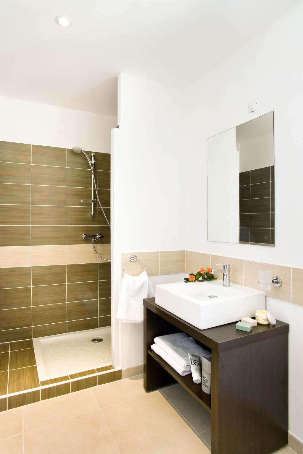 Comfortable resort "Le Clos Savornin", built in 2010. 22 houses in the residence. 900 m from the centre of St. Saturnin-les-Apt, 9 km from the centre of Apt, 54 km from the centre of Avignon. For shared use: property (fenced). Private: garden 500 m2 with lawn and wildlife garden, swimming pool heated (8 x 4 m, depth 120 - 160 cm, seasonal availability: 11.Apr. - 10.Oct.). In the house: reception, WiFi. Shop 900 m, supermarket 9 km, bus stop "Avenue Jean Geoffroy" 1.6 km. Please note: the photograph shows a typical example. The holiday properties may differ in living space, floorplan, equipment and furnishing.