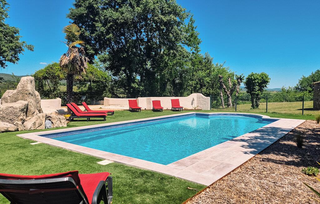 Det velholdte og rummelige udendørsområde byder på smuk udsigt over landskabet mellem Provence og Cevennerne. Glæd jer til timevis af solbadning i det børnesikre indhegnede poolområde, spil boule eller bordtennis. Nyd romantiske solnedgange på tagterrassen og tag plads under den hyggelige terrasse til en stemningsfuld grillaften.