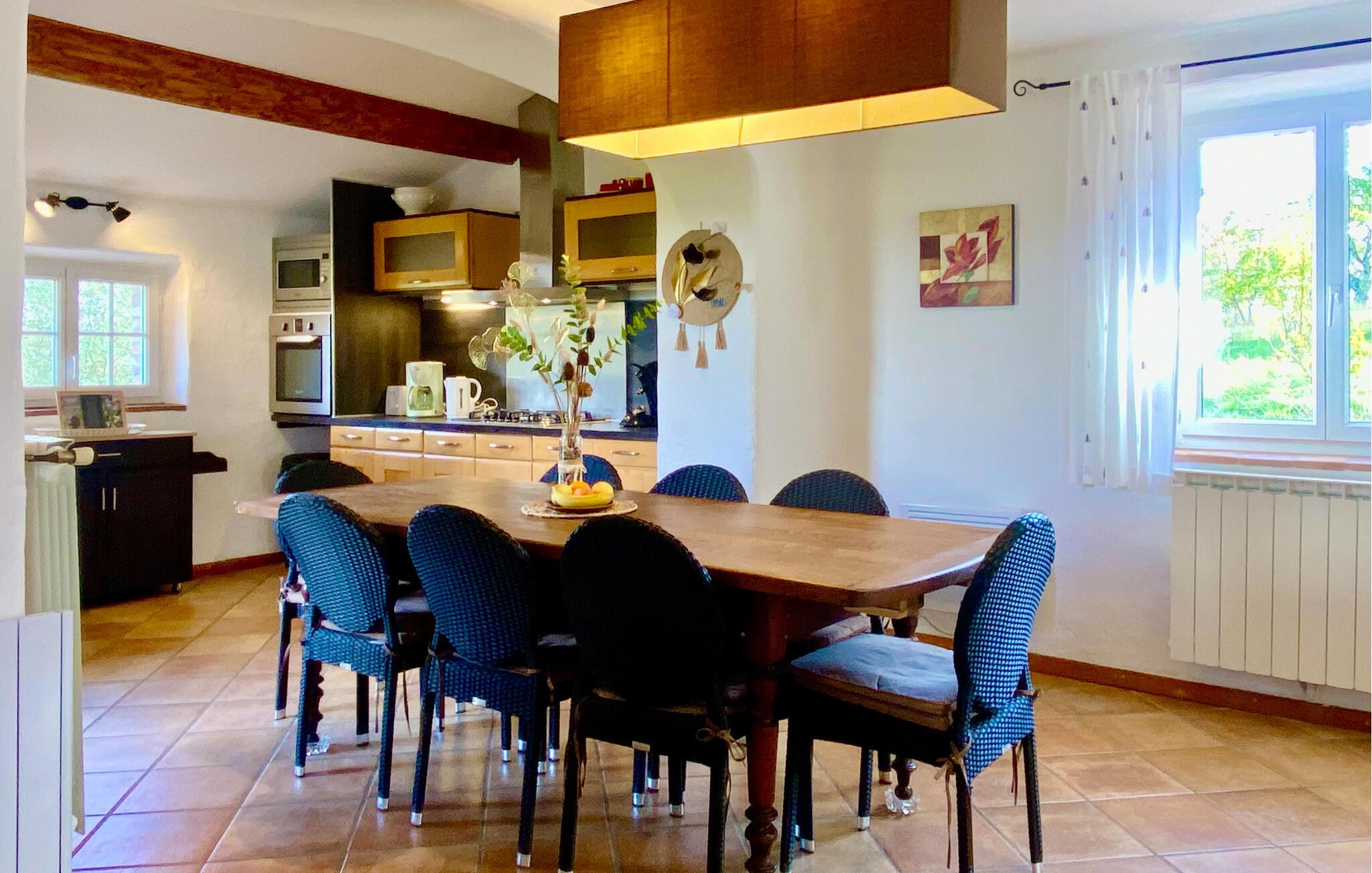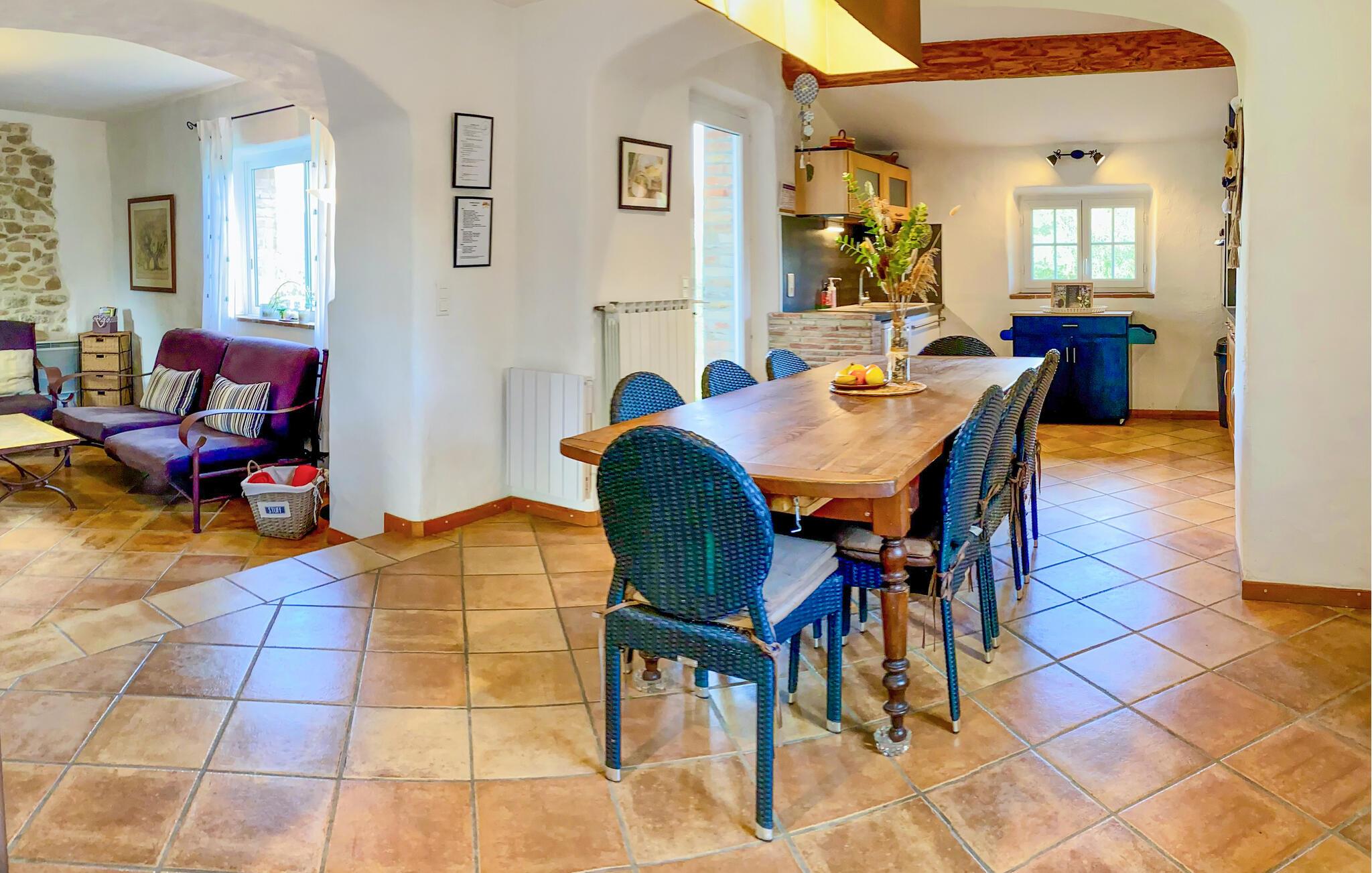 Beliggende mellem vinmarker og oliventræer tilbyder denne tidligere gård fra 1800-tallet jer et roligt tilflugtssted i det sydlige Ardèche. Fremtryll lækre retter i det moderne køkken, fejr omgængelige måltider i den lyse spiseplads og nyd om aftenen den hyggelige stemning i stuen med en selskabelig spilleaften.