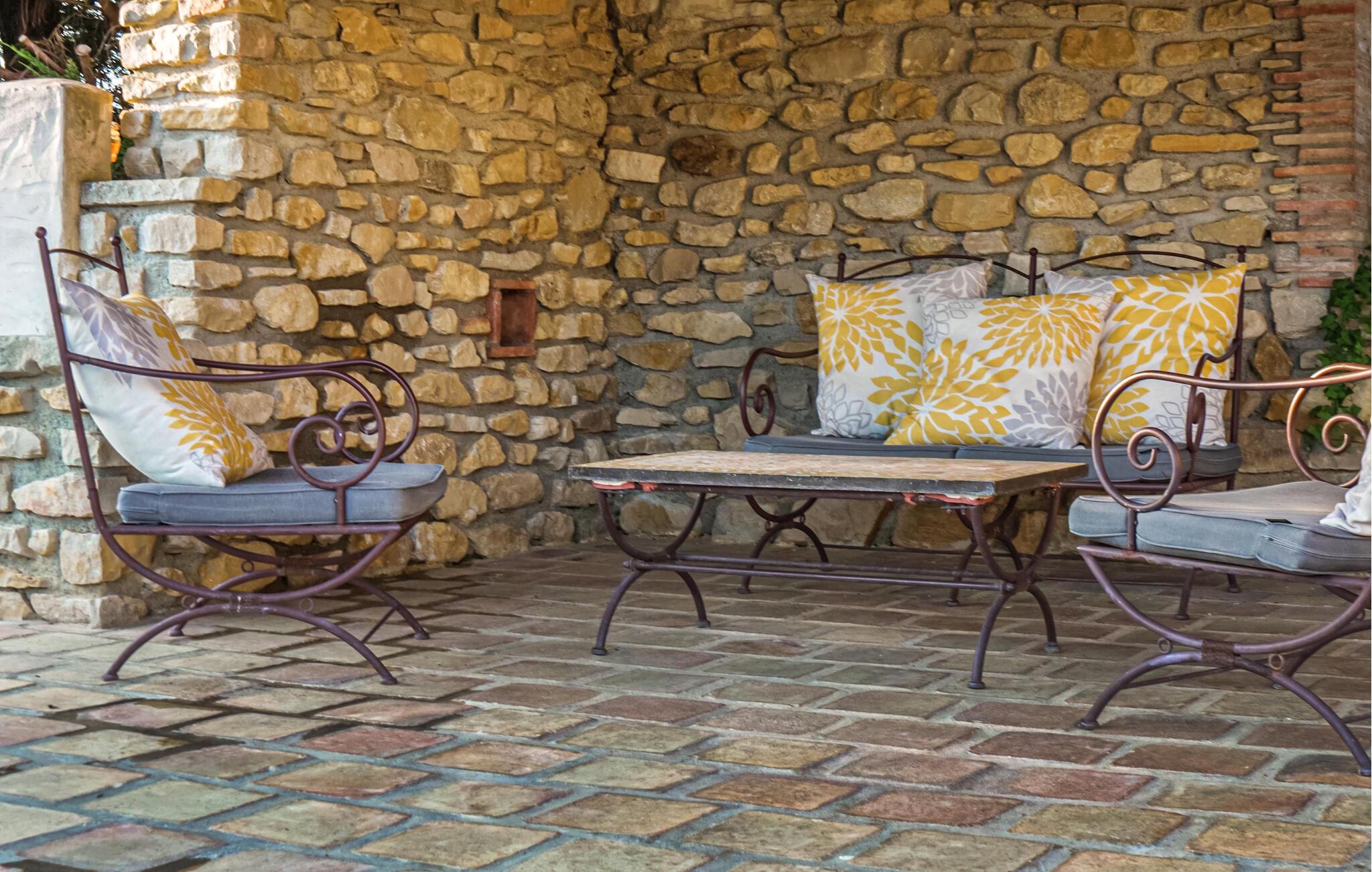 Dette nænsomt restaurerede landsted ligger placeret mellem vinmarker og oliventræer og består af to selvstændige fløje, som er forbundet via en terrasse. Del den idylliske stemning med jeres udvidede familie eller venner, gør lækre retter klar sammen i det moderne køkken, tænd for brændeovnen og glæd jer til hyggelige måltider i den rustikke spiseplads.