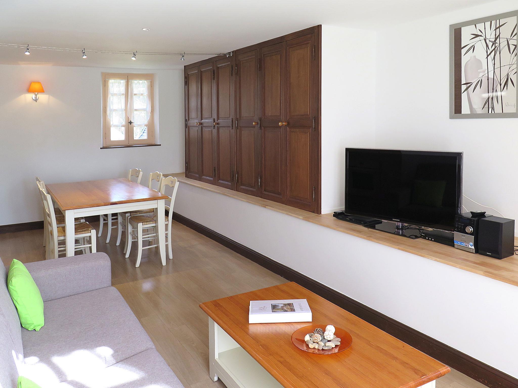 "Le Clos des Rives", 4-room apartment 86 m2 on 2 levels on 1st floor. Object suitable for 2 adults + 4 children. Beautiful and cosy furnishings: living/sleeping room with 1 double sofabed (160 cm, length 200 cm), dining table and satellite TV (flat screen), hi-fi system and DVD. Exit to the balcony. Open kitchen (oven, dishwasher, 4 ceramic glass hob hotplates, toaster, kettle, microwave, freezer, electric coffee machine, Capsules for coffee machine (Tassimo) extra). Sep. WC. Upper floor: 1 room with sloping ceilings with 1 double bed (2 x 90 cm, length 190 cm), shower. 1 room with sloping ceilings with 2 beds (90 cm, length 190 cm). 1 room with sloping ceilings with 1 french bed (160 cm, length 190 cm). Bathroom, sep. WC, double hand-basin. Electric heating. Balcony 18 m2. Balcony furniture, box-room. Facilities: washing machine, safe, iron, children's high chair, baby cot (extra). Internet (WiFi, free). Please note: non-smokers only. Maximum 2 pets/ dogs allowed. Smoke alarm.