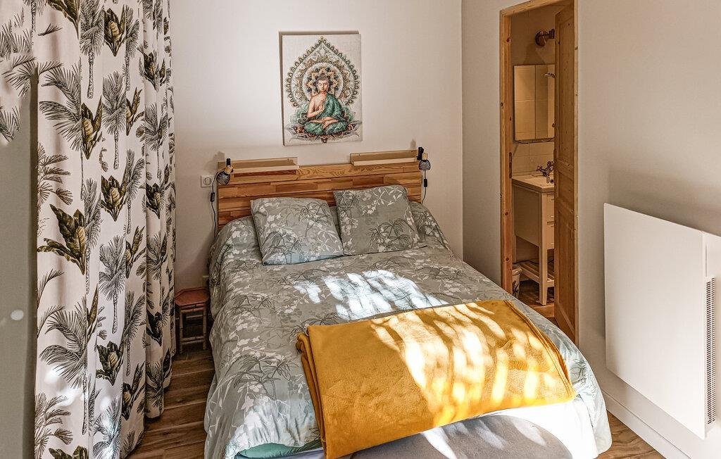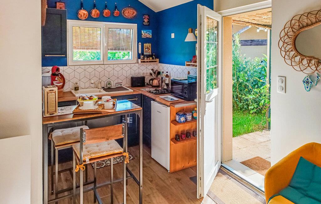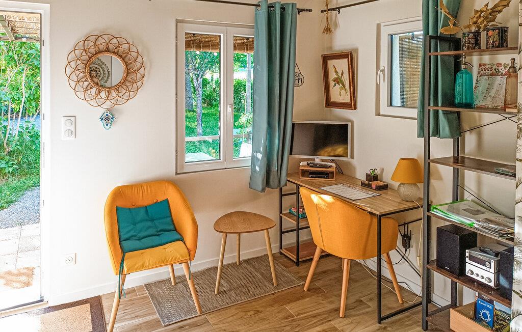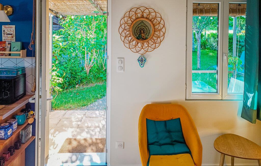 Nyd jeres parferie i denne lille ferieoase tæt på attraktionerne i Périgord Noir. Møblerne er funktionelle og designet med kærlige detaljer, hvilket skaber en varm og intim atmosfære. Find ro i det komfortabelt møblerede interiør og nyd de lyse rum med smagfulde møbler. Sæt jer til rette i siddeområdet, læs en bog eller lyt til musik. Tilbered måltider sammen i det kompakte køkken og server dem ved det lille spisebord.