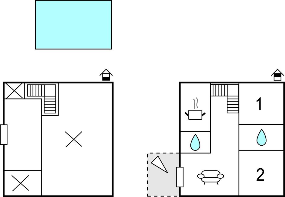Opholdsstuen og alle værelser ligger på 1. etage med undtagelse af vaskerummet. Stueetagen står tom, når førstesalen er udlejet. Fra opholdsstuen kan I gå ud på den dejlige, solrige altan. Boligen er ideel til en familie, der gerne vil holde ferie i denne region og gå skønne ture samt bade i havet.