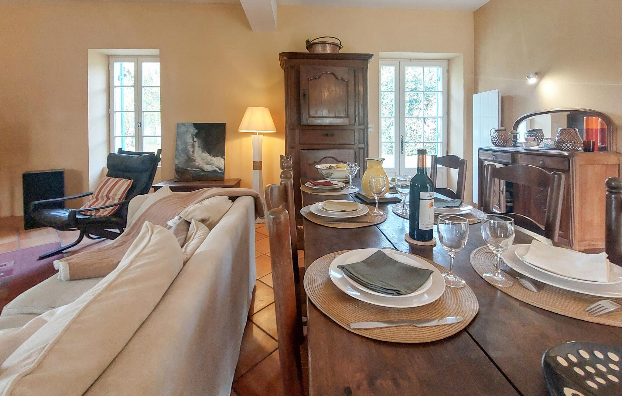 begiv jer ud på cykel til den hyggelige landsby Eymet, kun få kilometer væk. Udforsk Bergerac og Monbazillac, prøv regionale produkter som foie gras, trøfler og porcini-svampe på livlige markeder, og tag en kanotur på Dordogne-floden. Tag på ridning og oplev forhistoriske steder på lange vandreture.