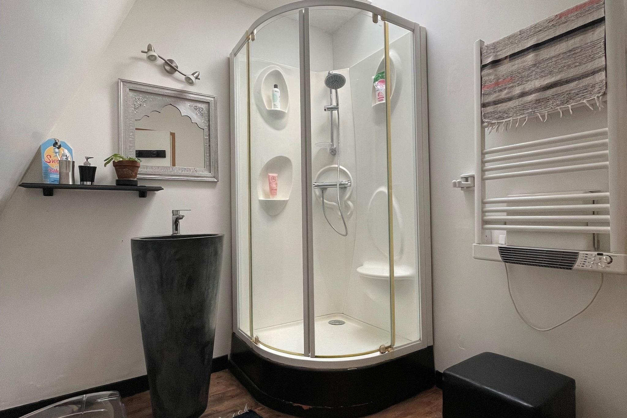 Dette feriehus blev designet som en duplex på 1. og 2. sal i et hus, hvis stueetage sandsynligvis vil være vært for en kommerciel aktivitet i løbet af dagen. Det er smagfuldt møbleret og tilbyder perfekt komfort. Fra opholdsstuen har du direkte adgang til en smuk terrasse på pæle, helt beskyttet mod indsyn. Den har udsigt over en smuk privat have, der vender mod syd. En ideel beliggenhed til din ferie i Bretagne, men også et perfekt valg til en længere periode med hjemmekontor i behagelige omgivelser, kun få minutter fra de første strande. Børnene er ikke glemt, da der er planlagt mange lege til dem, både inde og ude. 3 parkeringspladser er tilgængelige på privat grund. Saint-Brieuc centrum med sin middelalderlige bydel, sine bindingsværkshuse omkring den befæstede katedral og sin neoklassiske arkitektur er bestemt et besøg værd. Fra centrum kan du nå havnen i Légué ved at følge en smuk vandresti, der krydser den grønne Gouédic-dal. En ideel central beliggenhed mellem Côte du Goëlo mod vest og Côte de Penthièvre mod øst. Den lyserøde granitkyst tiltrækker besøgende med sine imponerende klippeformationer og Cap Fréhel med sine stejle klipper.