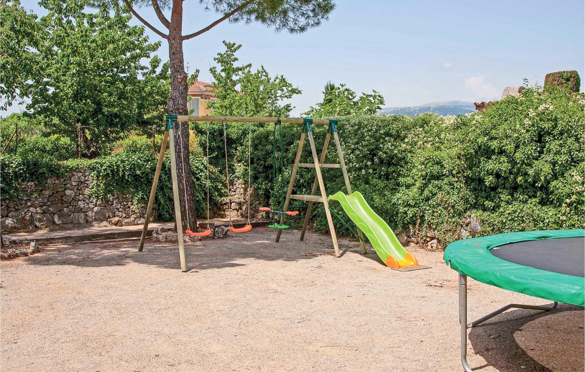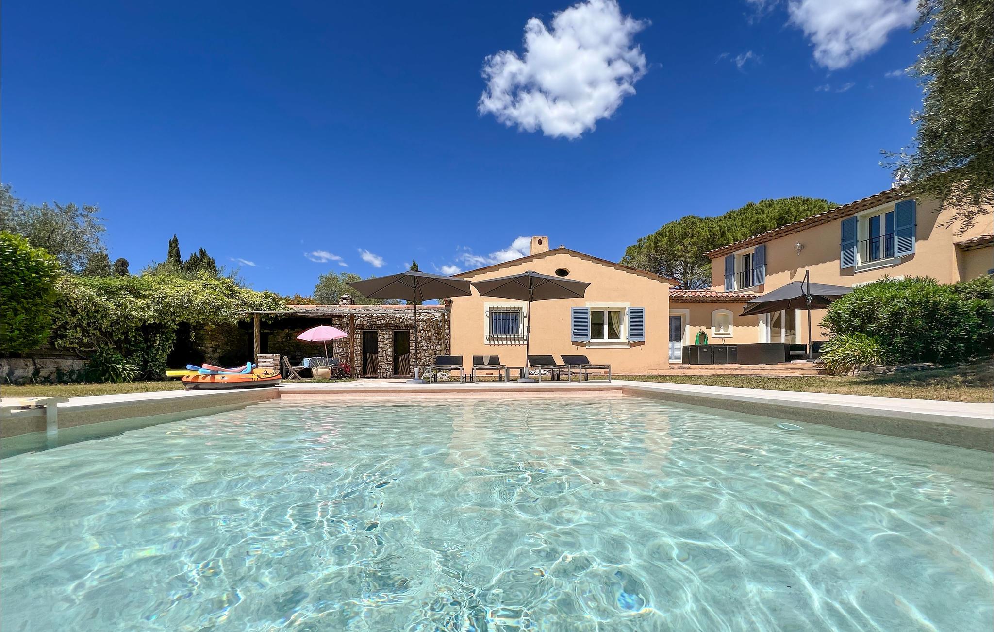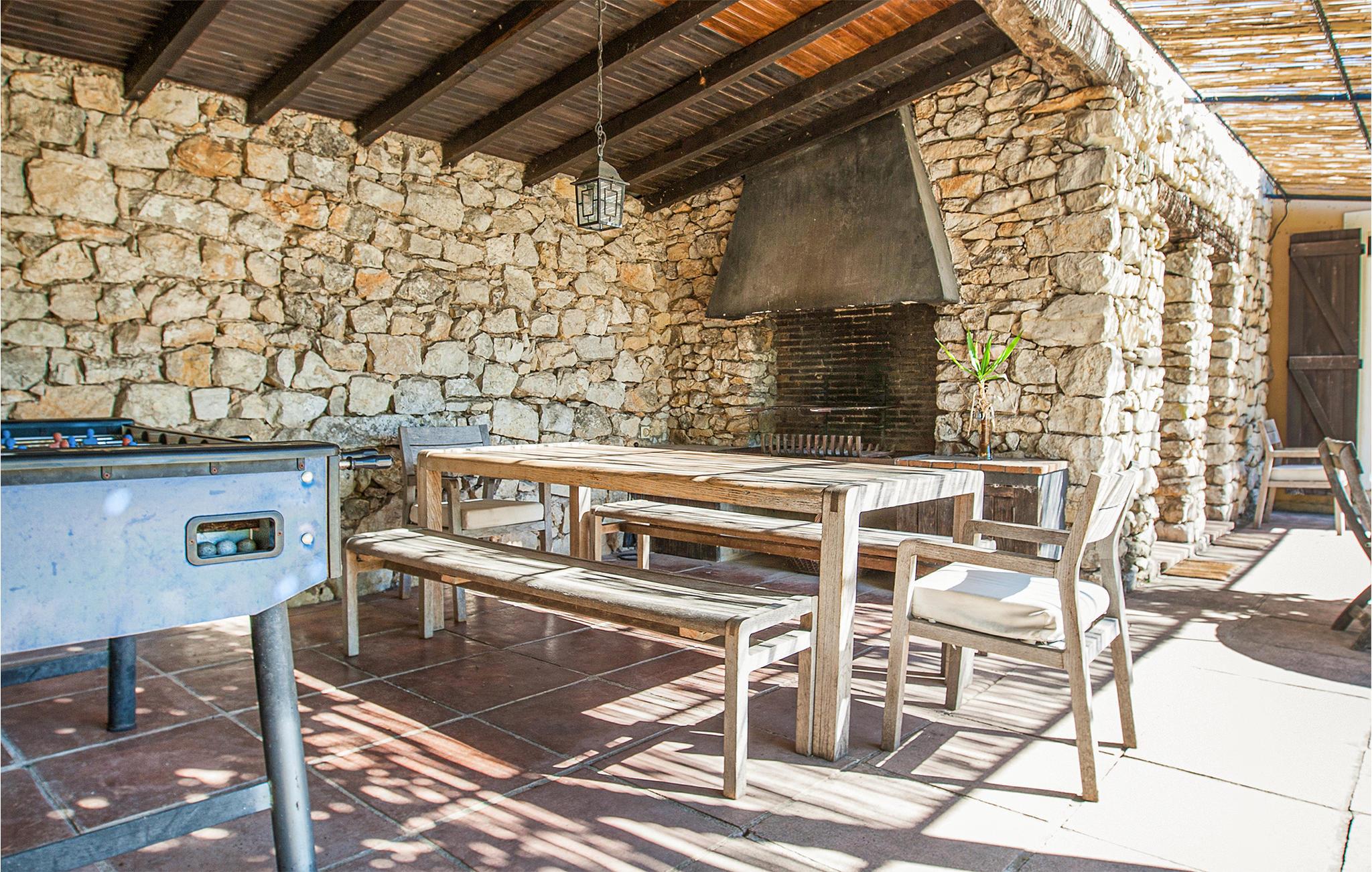 En skøn have med plæner, omgiver den forfriskende pool, desuden indbyder flere terrasser til behageligt ophold i solen og den friske luft. Desuden kan I tilberede mad på grillen, der står på en skyggefuld terrasse. Et skakspil i stor størrelse, boulebane og en legeplads til børnene sætter prikken over i’et i dette dejlige hus.