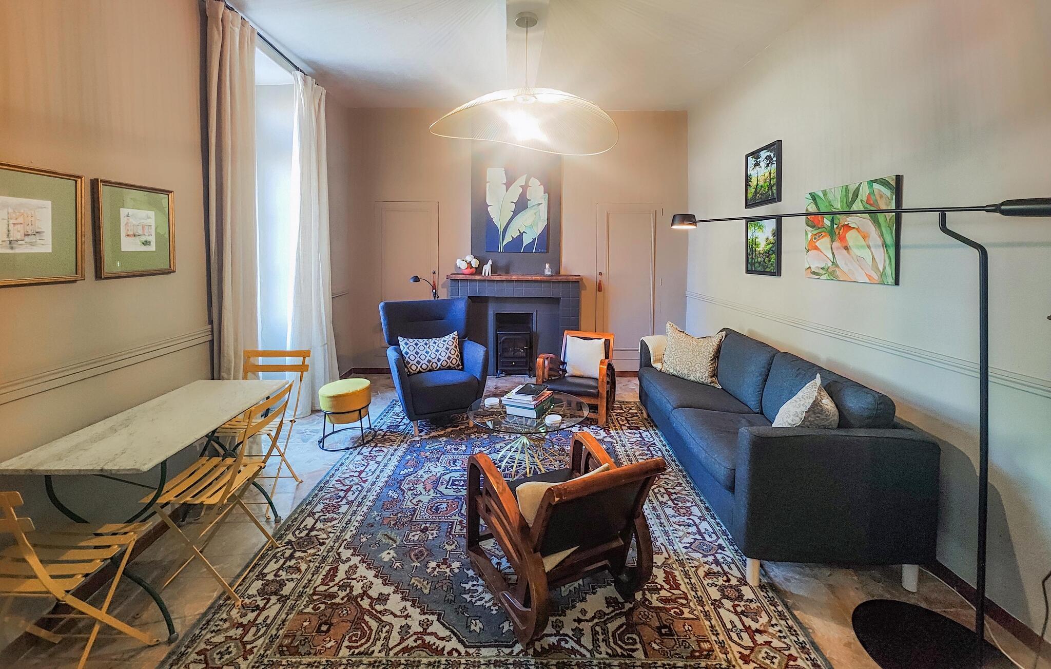 Dette store rækkehus fordelt på tre etager og ligger i den hyggelige by Saint-Chinain. Huset emmer af charme og varme, og indretningen er på én gang autentisk og indbydende. Fordyb jer i madlavningen i det store køkken og tænd op i pejsen på de køligere dage. På de varme dage kan I nyde maden på den store altan med udsigt over floden, inden I runder dagen af med et hyggeligt kortspil til lyden af flodens rindende vand.