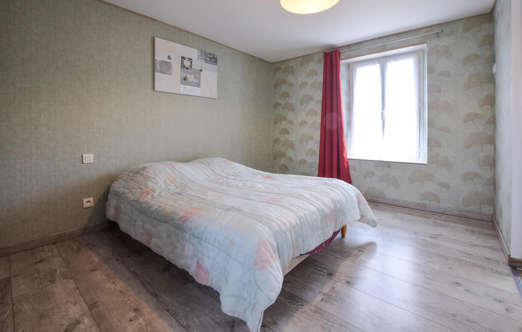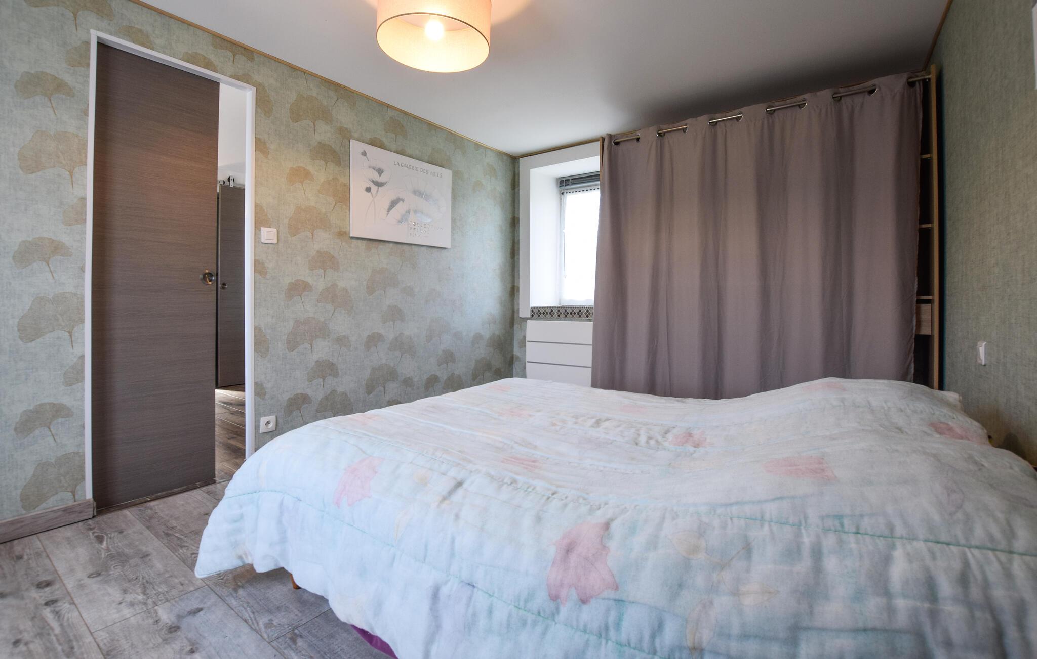 Glæd jer til afslappende dage i dette nænsomt renoverede stenhus, som har en lys og moderne atmosfære. Tilbered lækre retter i det åbne køkken og nyd hyggelige aftener ved det runde spisebord. Find jer godt til rette i de komfortable lænestole med en bog eller et glas regional cider og afslut dagen med afslappende afslapning.