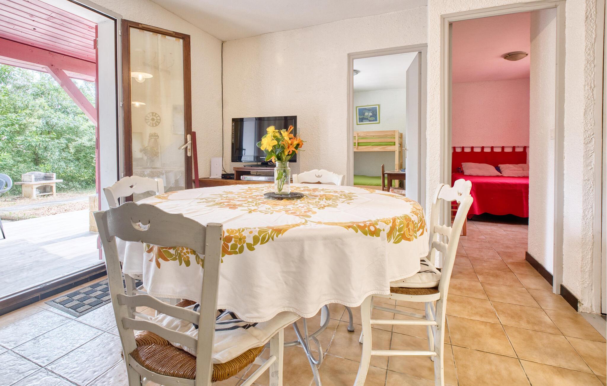 Dette charmerende hus byder jer velkommen med en lys og venlig atmosfære i hjertet af den maleriske Périgord Noir. Her kan I trylle lækre retter frem lavet med regionale råvarer og planlægge jeres aktiviteter i den indbydende spisestue. Nyd hyggelige spilleaftener under blød belysning eller fordyb jer i en god bog.