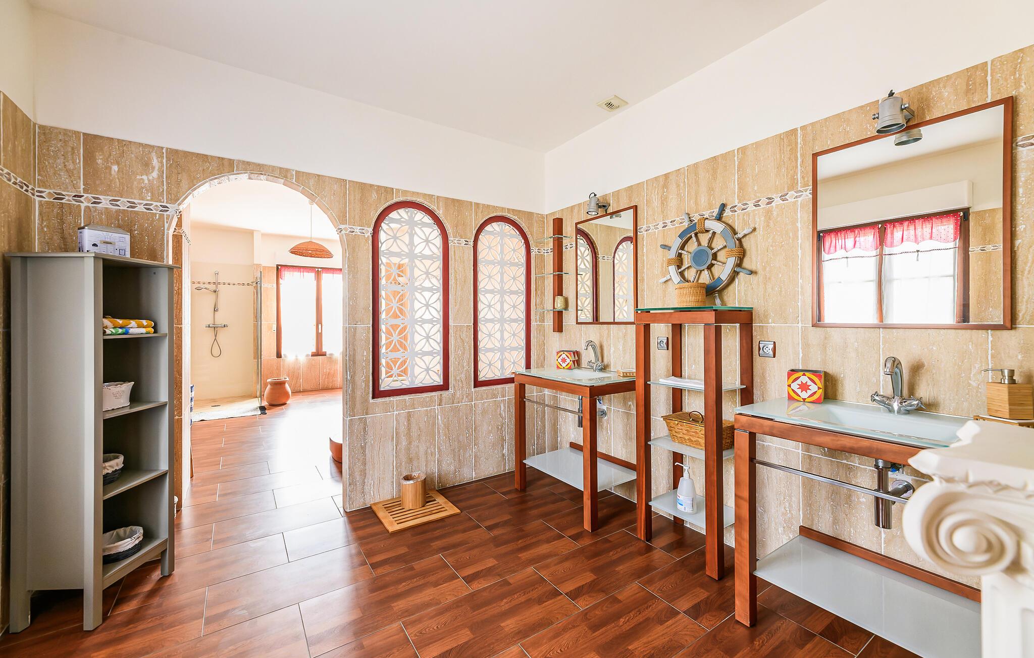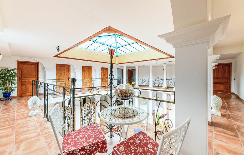 Dette imponerende herresæde inviterer jer til en uforglemmelig ferie i elegante og rummelige omgivelser. Det lysfyldte atrium, der strækker sig over to etager, den rislende fontæne og de åbne rum skaber en luksuriøs og samtidig afslappet atmosfære. Lad jer begejstre af den stilfulde indretning, den store pejs og det indbydende køkken.