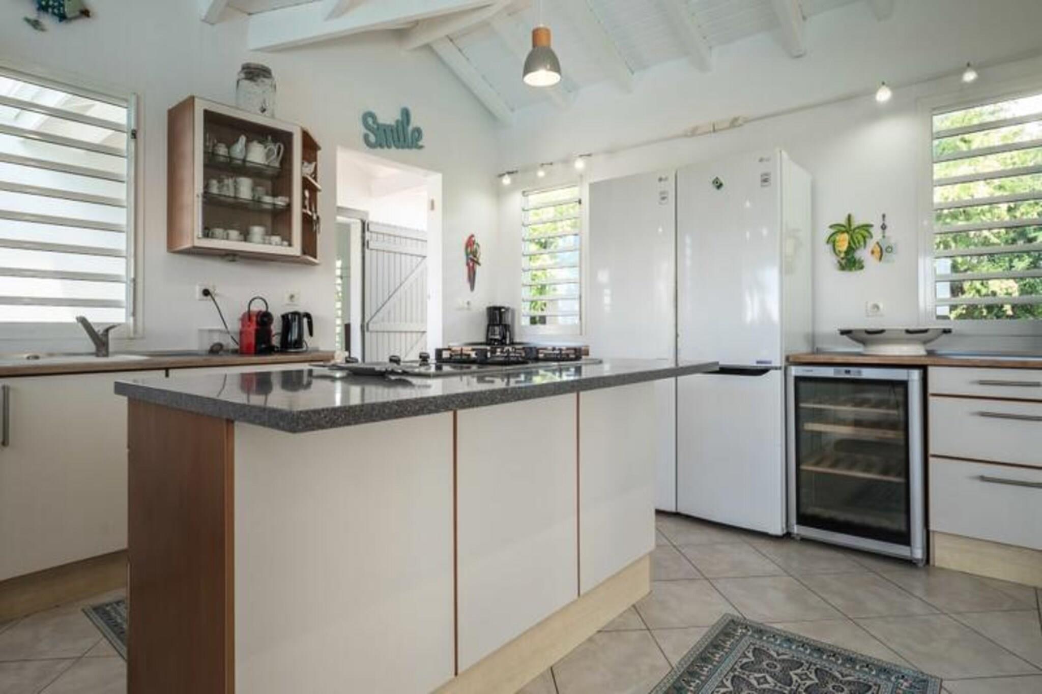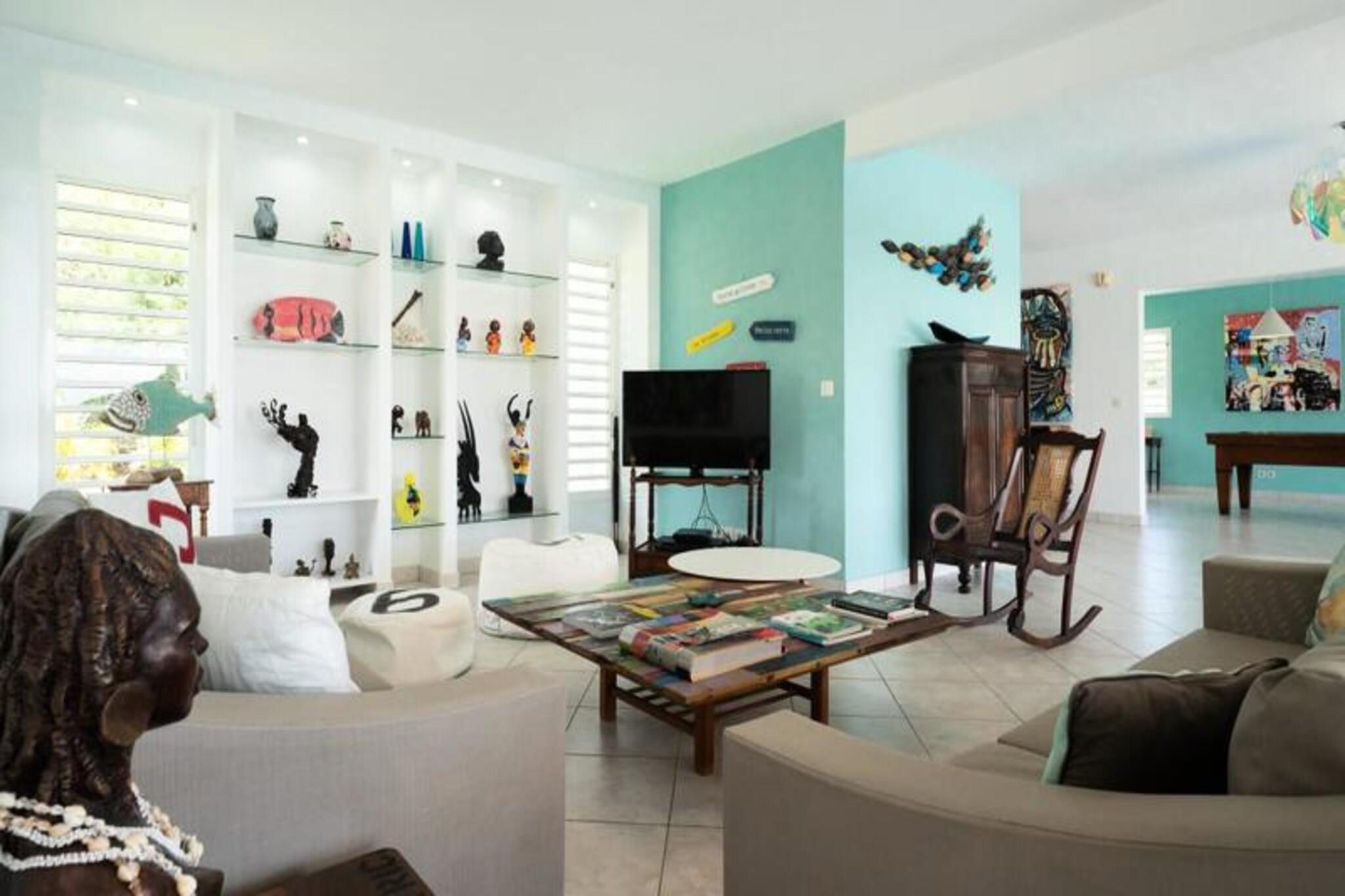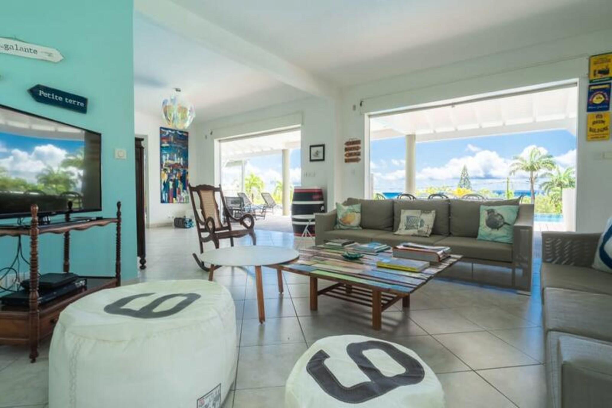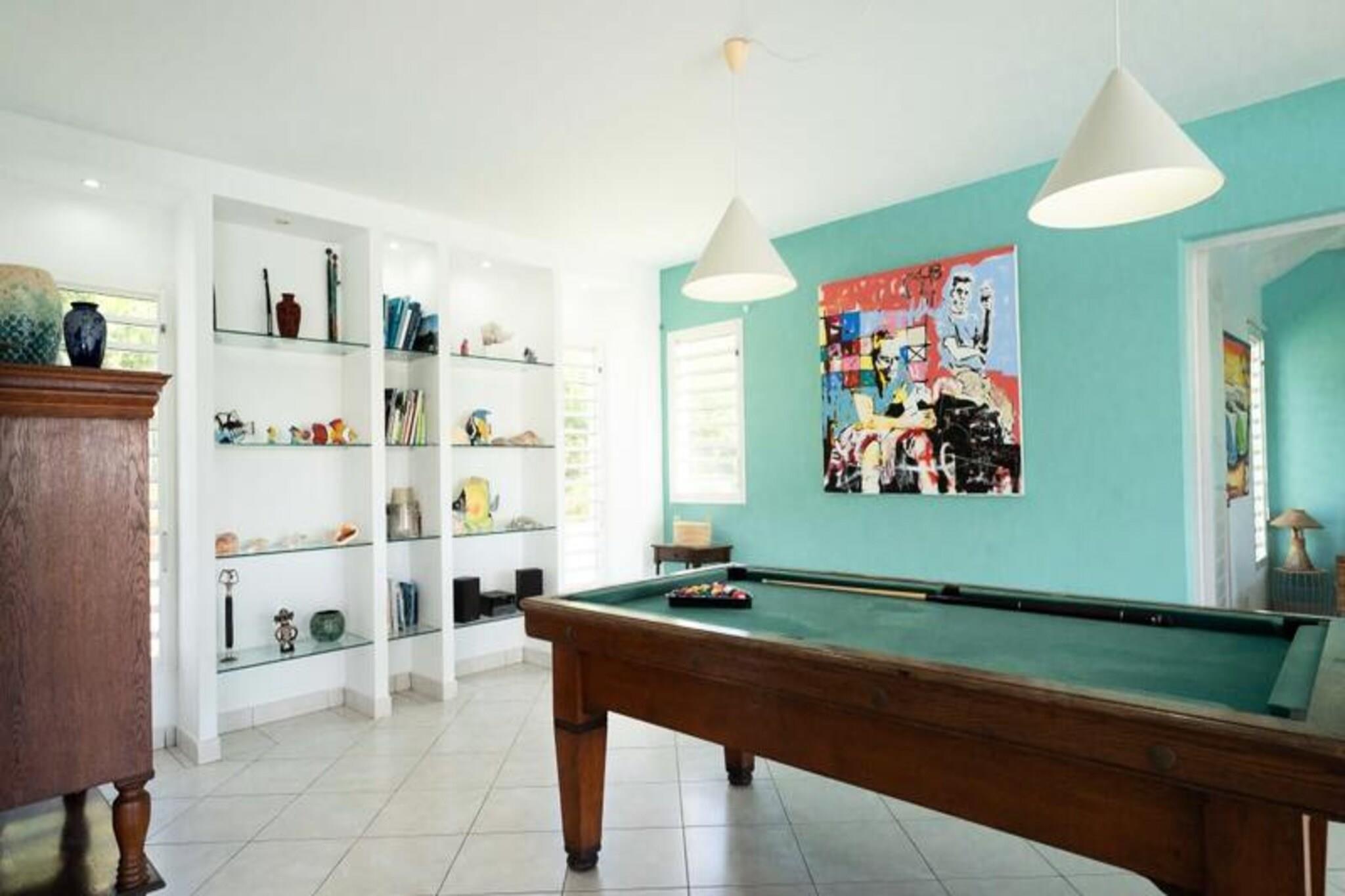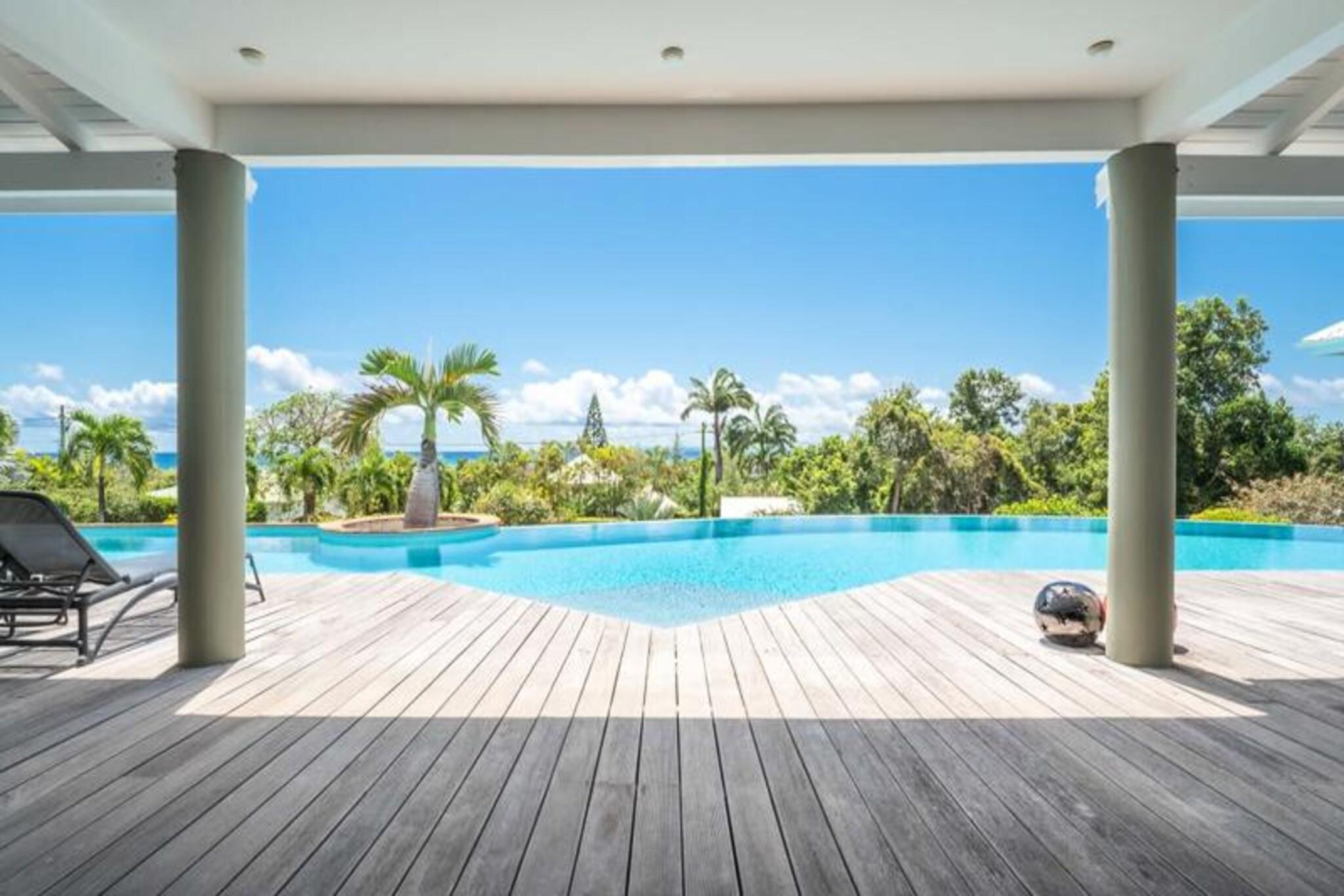 Dette rummelige feriehus har 5 sovev?relser med aircondition, hver med sit eget en-suite badev?relse, der tilbyder ultimativ komfort og privatliv for store familier eller vennegrupper. Stuen ?bner til en fantastisk overl?bsswimmingpool med panoramaudsigt over havet, hvilket skaber et fredfyldt milj?. Yderligere faciliteter omfatter billard, dart og en stor have, hvor b?rn kan lege sikkert. Ejendommen er k?ledyrsvenlig, og h?ndkl?der og senget?j er inkluderet. Ejendommen ligger i Saint-Fran?ois, kun 5 minutters gang fra stranden og tilbyder nem adgang til lokale attraktioner. Byens centrum og lystb?dehavnen er inden for g?afstand, med butikker, restauranter og vandaktiviteter i n?rheden. For en fantastisk udsigt, tag til Pointe des Ch?teaux, kun 15 minutter v?k i bil, eller bes?g havnen for udflugter til de omkringliggende ?er. Villaen har et fuldt udstyret k?kken, en udend?rs terrasse med grill og et vandreservesystem for at beskytte mod eventuelle forstyrrelser. Der tilbydes reng?ring af h?j kvalitet f?r og efter dit ophold. Internetadgang og aircondition i alle v?relser sikrer komfort overalt. En dedikeret concierge-service er tilg?ngelig for alle dine behov.