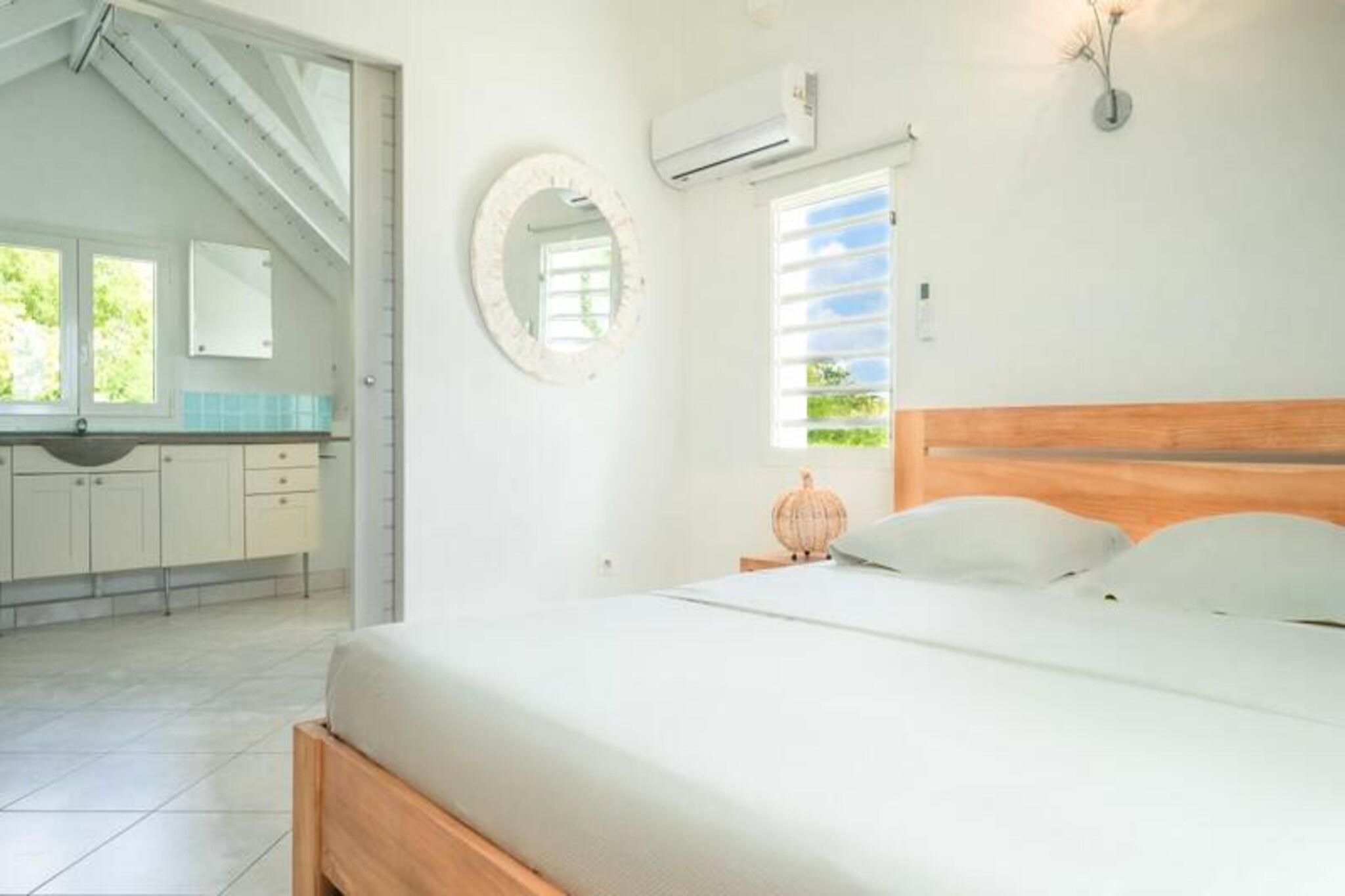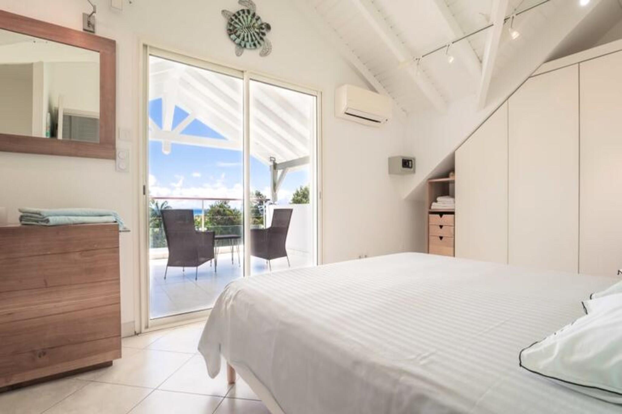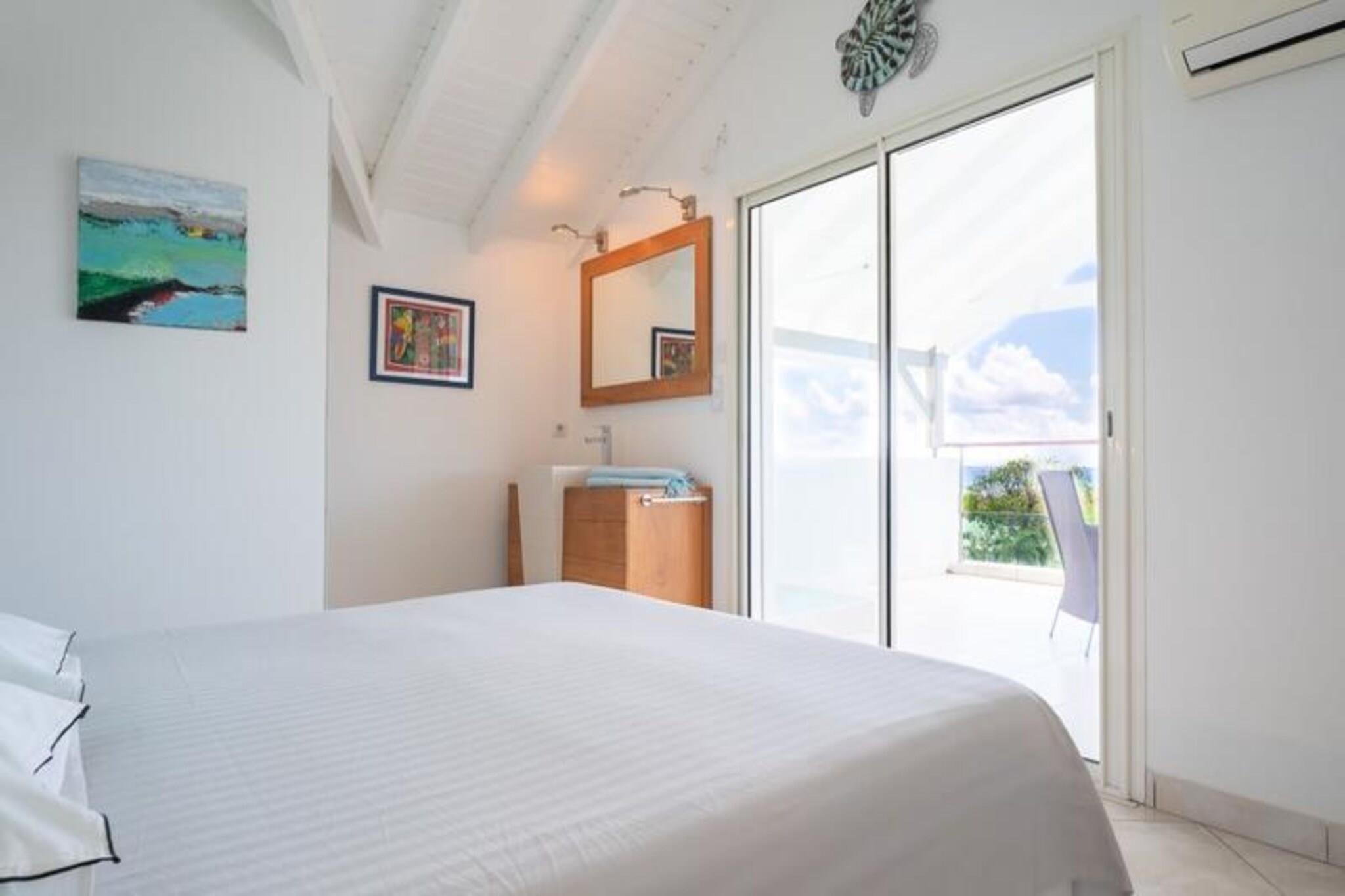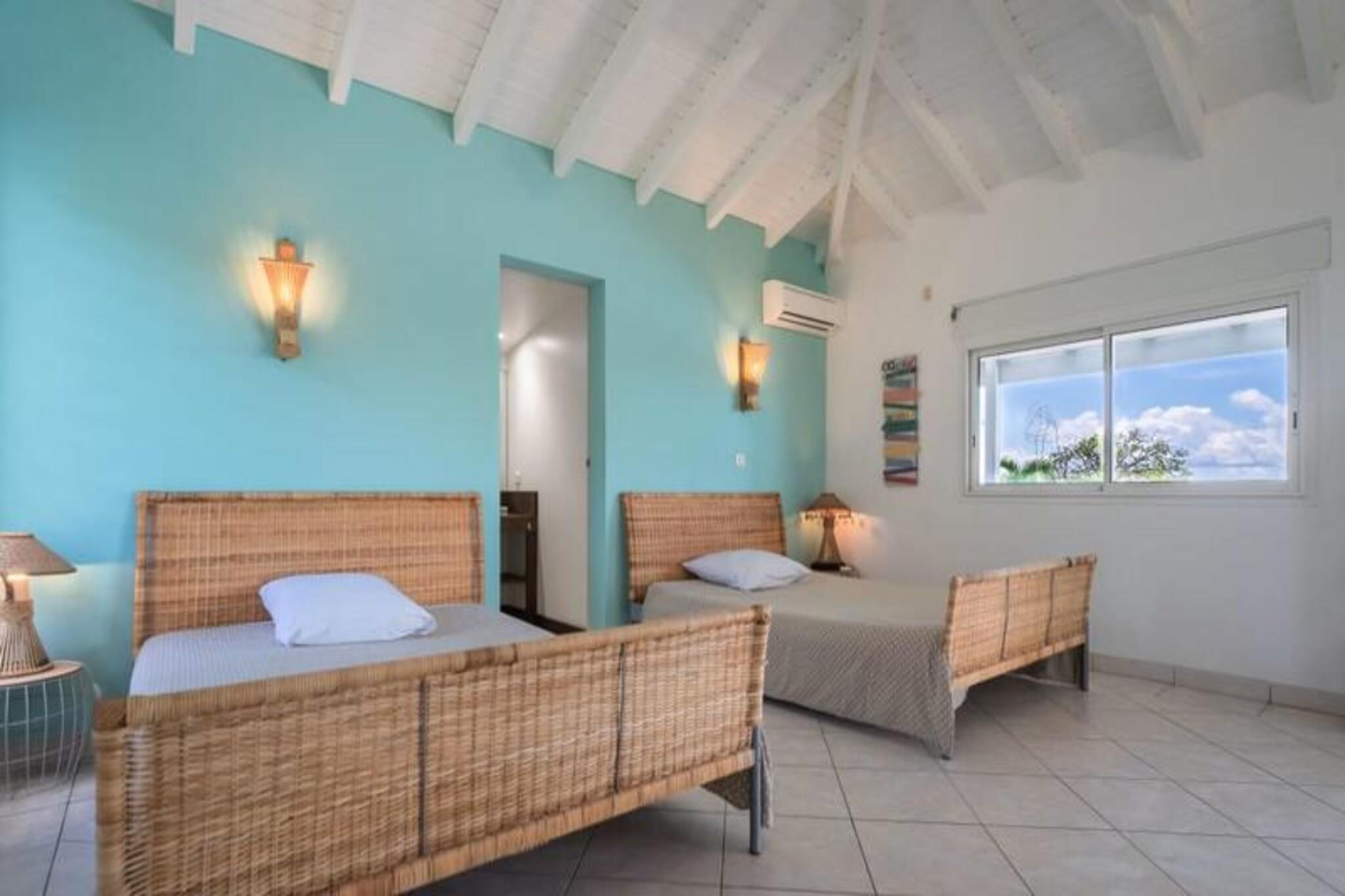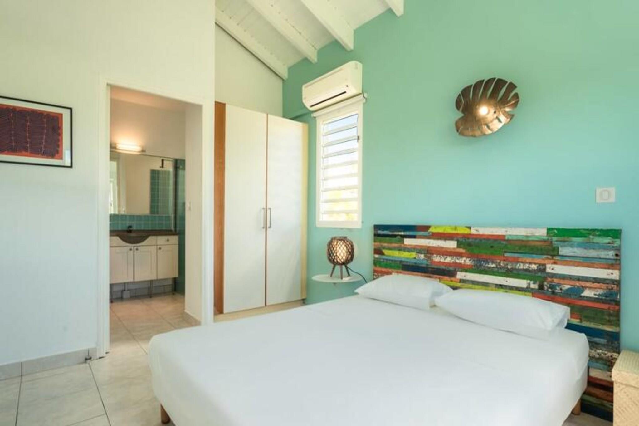 Dette rummelige feriehus har 5 sovev?relser med aircondition, hver med sit eget en-suite badev?relse, der tilbyder ultimativ komfort og privatliv for store familier eller vennegrupper. Stuen ?bner til en fantastisk overl?bsswimmingpool med panoramaudsigt over havet, hvilket skaber et fredfyldt milj?. Yderligere faciliteter omfatter billard, dart og en stor have, hvor b?rn kan lege sikkert. Ejendommen er k?ledyrsvenlig, og h?ndkl?der og senget?j er inkluderet. Ejendommen ligger i Saint-Fran?ois, kun 5 minutters gang fra stranden og tilbyder nem adgang til lokale attraktioner. Byens centrum og lystb?dehavnen er inden for g?afstand, med butikker, restauranter og vandaktiviteter i n?rheden. For en fantastisk udsigt, tag til Pointe des Ch?teaux, kun 15 minutter v?k i bil, eller bes?g havnen for udflugter til de omkringliggende ?er. Villaen har et fuldt udstyret k?kken, en udend?rs terrasse med grill og et vandreservesystem for at beskytte mod eventuelle forstyrrelser. Der tilbydes reng?ring af h?j kvalitet f?r og efter dit ophold. Internetadgang og aircondition i alle v?relser sikrer komfort overalt. En dedikeret concierge-service er tilg?ngelig for alle dine behov.