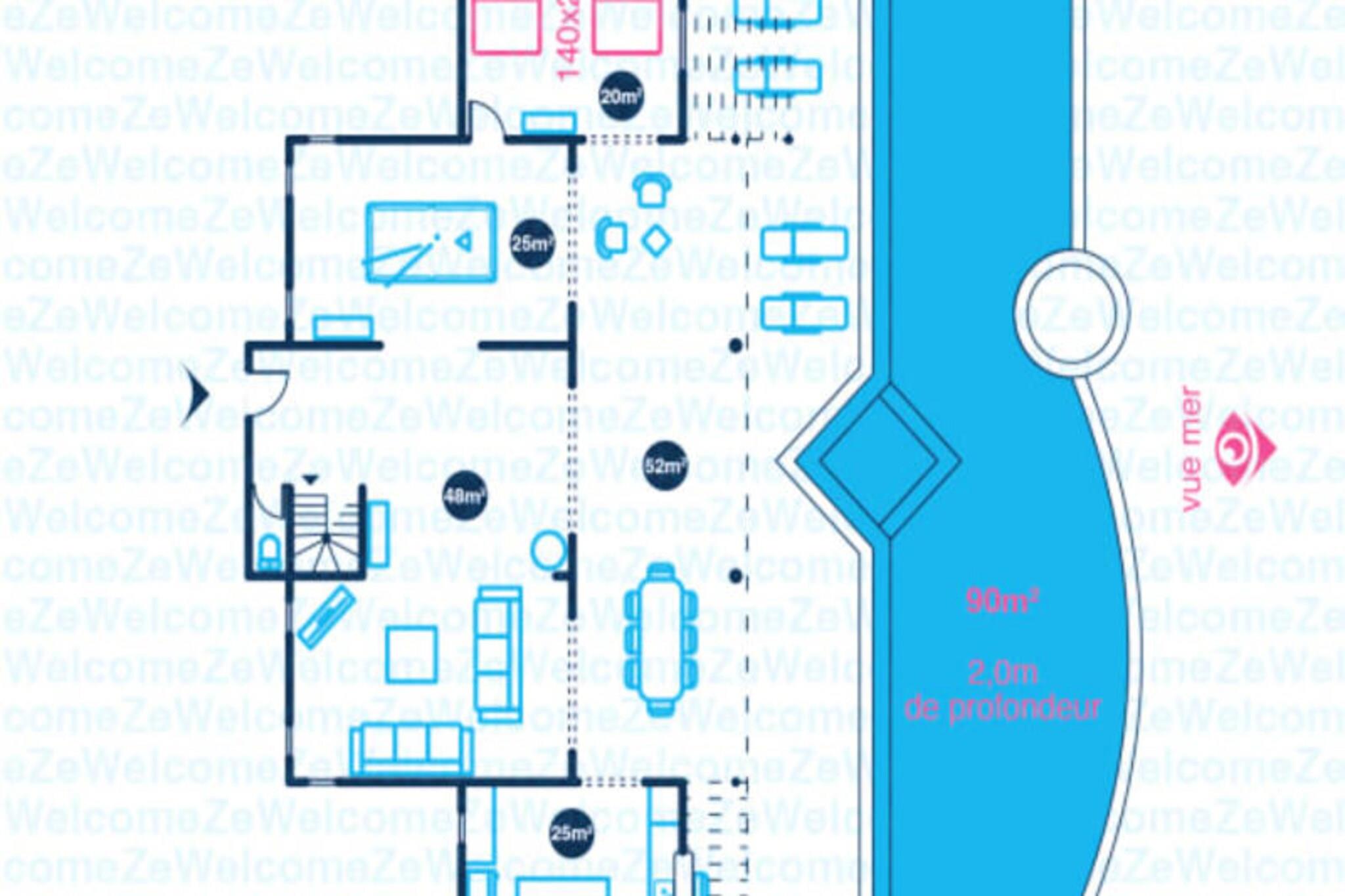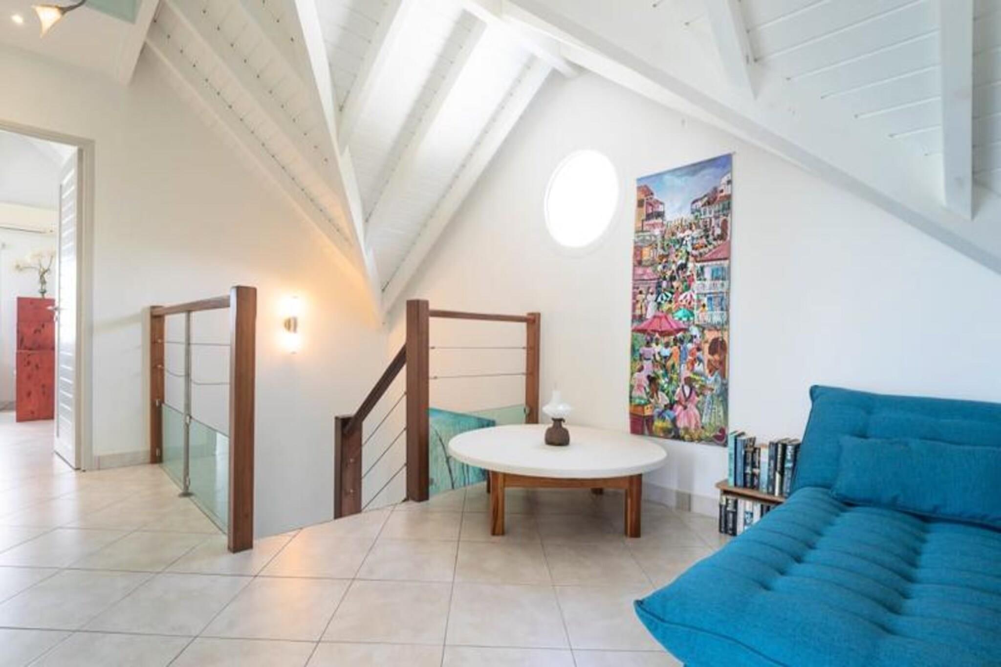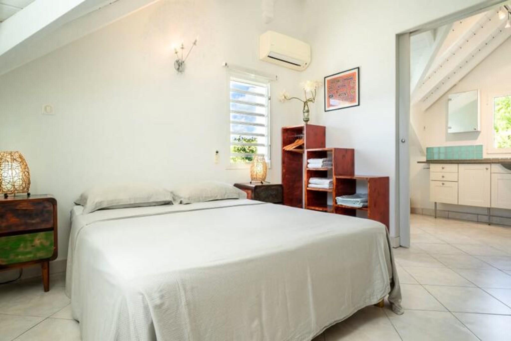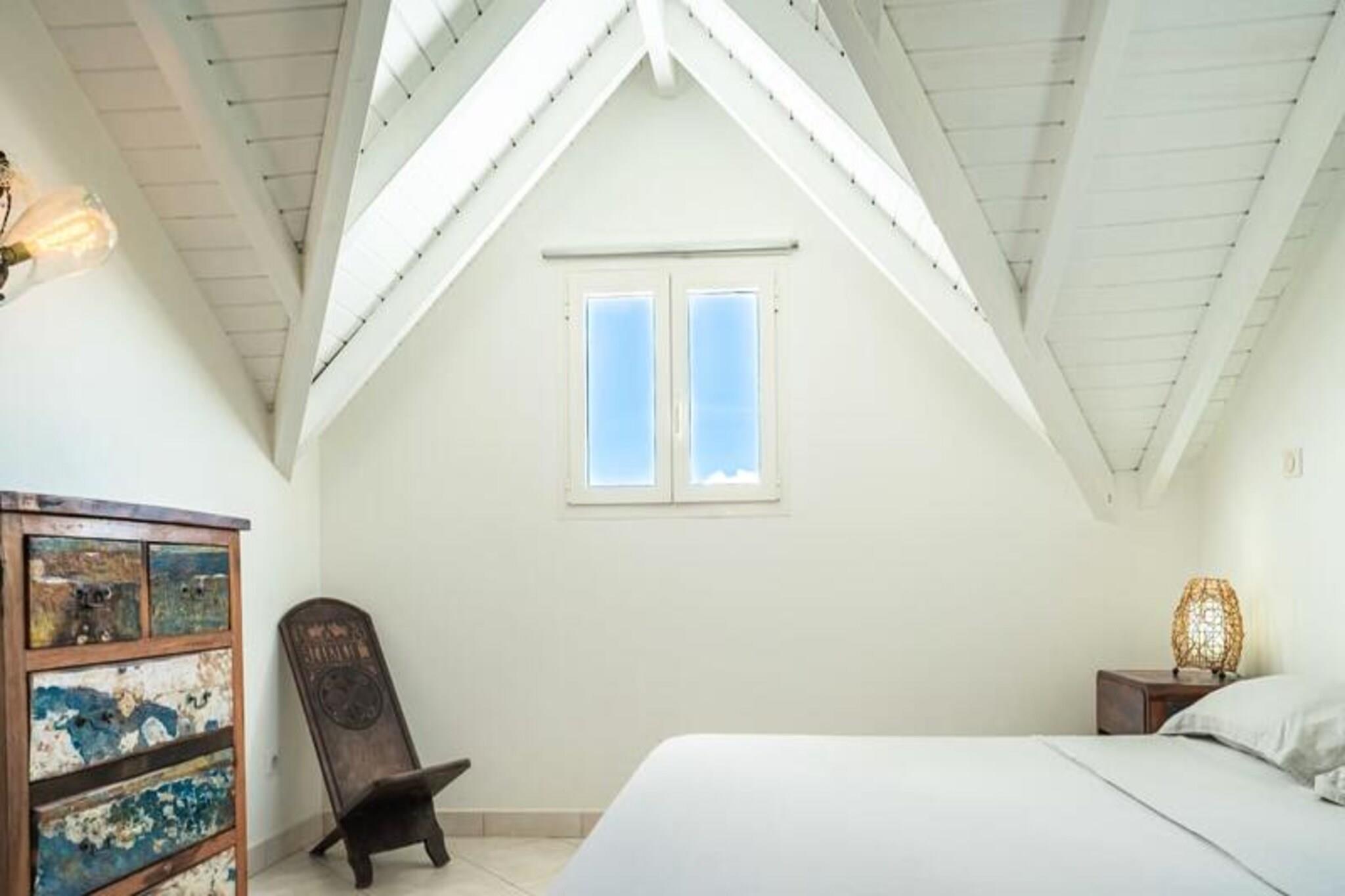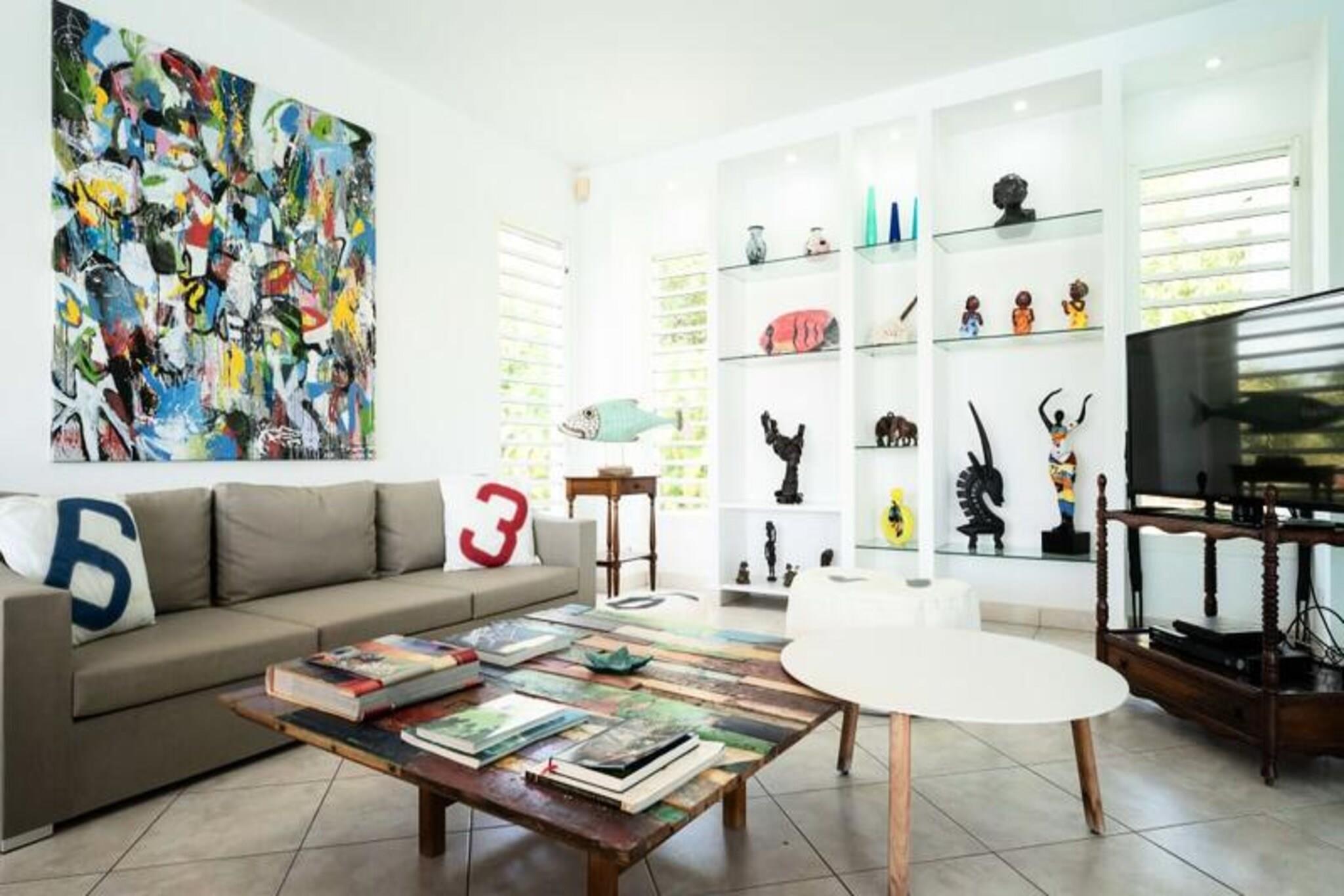 Dette rummelige feriehus har 5 sovev?relser med aircondition, hver med sit eget en-suite badev?relse, der tilbyder ultimativ komfort og privatliv for store familier eller vennegrupper. Stuen ?bner til en fantastisk overl?bsswimmingpool med panoramaudsigt over havet, hvilket skaber et fredfyldt milj?. Yderligere faciliteter omfatter billard, dart og en stor have, hvor b?rn kan lege sikkert. Ejendommen er k?ledyrsvenlig, og h?ndkl?der og senget?j er inkluderet. Ejendommen ligger i Saint-Fran?ois, kun 5 minutters gang fra stranden og tilbyder nem adgang til lokale attraktioner. Byens centrum og lystb?dehavnen er inden for g?afstand, med butikker, restauranter og vandaktiviteter i n?rheden. For en fantastisk udsigt, tag til Pointe des Ch?teaux, kun 15 minutter v?k i bil, eller bes?g havnen for udflugter til de omkringliggende ?er. Villaen har et fuldt udstyret k?kken, en udend?rs terrasse med grill og et vandreservesystem for at beskytte mod eventuelle forstyrrelser. Der tilbydes reng?ring af h?j kvalitet f?r og efter dit ophold. Internetadgang og aircondition i alle v?relser sikrer komfort overalt. En dedikeret concierge-service er tilg?ngelig for alle dine behov.
