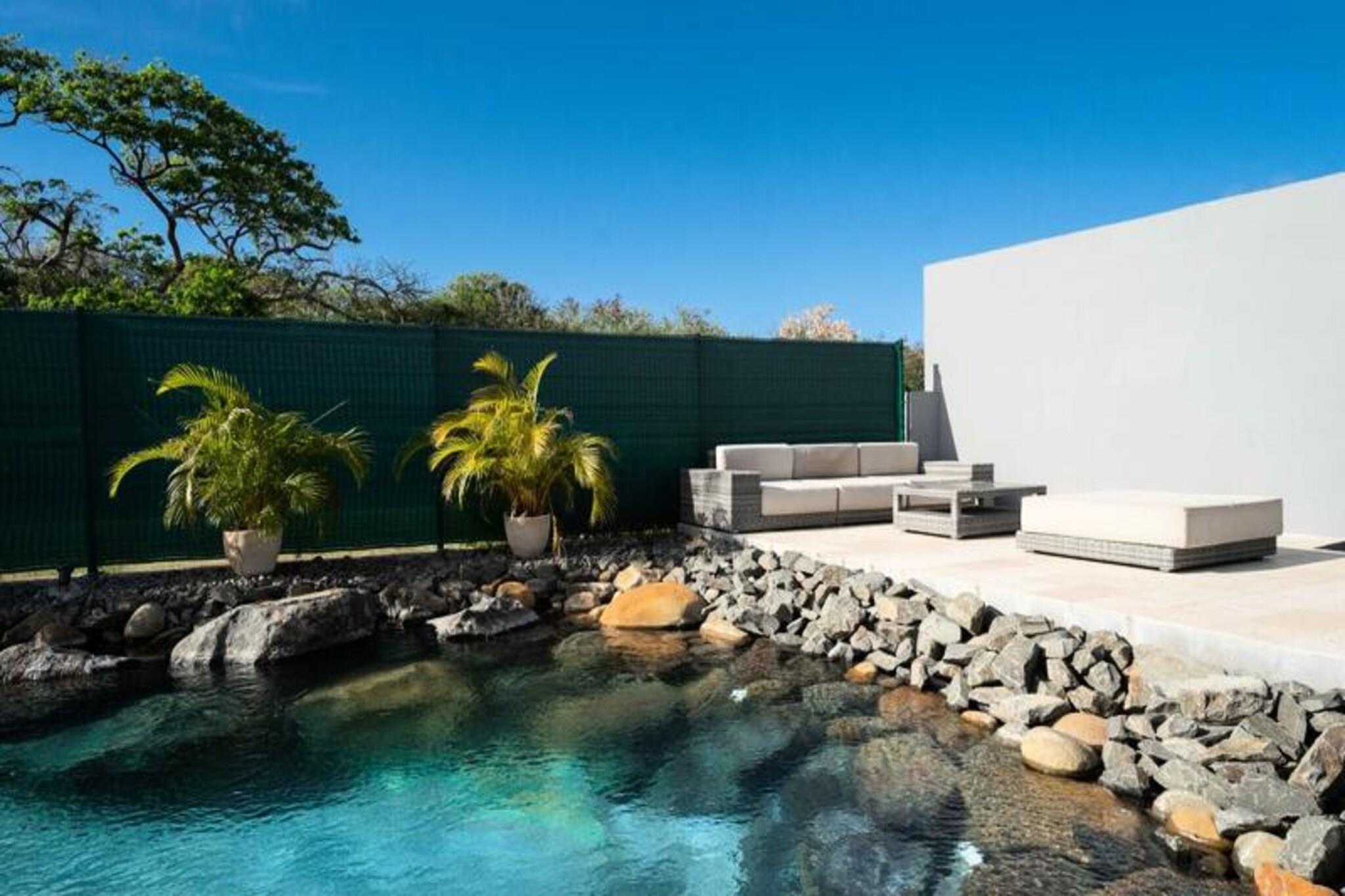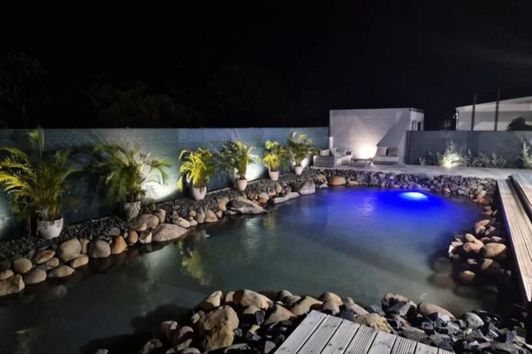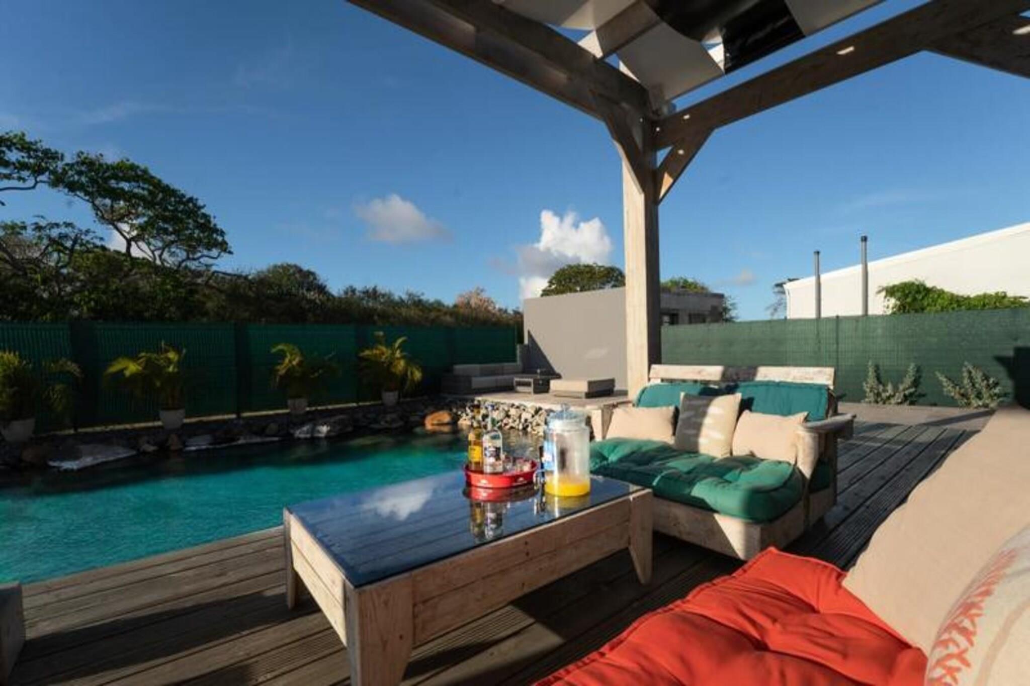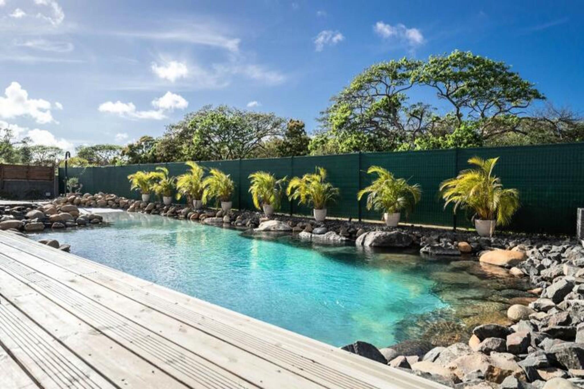 Magnífica arquitectura con encanto criollo. Piscina única revestida de piedras de río. A 3 km de playas, comercios y puerto deportivo. El espíritu del río a dos pasos de la laguna y sus aguas turquesas. La Villa des Rochers es una exitosa alianza entre comodidad y amor por la naturaleza. Su piscina enteramente revestida de piedras de río invita a relajarse. baños impregnados de tranquilidad; y en; relájese en su playa y en su terraza para tomar un aperitivo bajo el sol poniente. El salón dominado por una increíble estructura de techo. el aspecto catedralicio le da luminosidad. muy particular. Una cocina abierta muy bien equipada y espaciosa con una barra ultra amigable. Una estancia audiovisual bien organizada. Cuatro bonitos dormitorios climatizados y amueblados con camas de 160 cm para dos de ellos, una cama de 180 cm para el tercero y dos camas de 90 cm para el cuarto. Allí encontrará paz y tranquilidad. Dos sofás cama convertibles tienen capacidad para 4 personas adicionales para un total de 12 personas. Dos cuartos de baño vibrantes y coloridos completan esta zona de dormitorio. El encanto de la madera natural y los materiales nobles en todo tu hogar. a tiro de piedra del centro de la ciudad, de las playas y del puerto deportivo en una zona residencial. Piscina única e increíble. Cerca de todos los servicios Diseño hecho con gusto. La villa está situada en la localidad de Saint-François, en la parte oriental de Guadalupe llamada Grande-Terre. À A 45 minutos en coche del aeropuerto de Pointe-à-Pitre, tardará menos de 5 minutos en llegar a la ciudad de Saint-François y encontrar todos los servicios: espacio comercial, supermercado, panadería, farmacia, mercado de pescado y especias. . No te perderás la imperdible Marina de Saint-François, donde podrás disfrutar de restaurantes cercanos. el variado menú y las compras en sus numerosas boutiques. El campo de golf internacional Saint-François, el casino y el aeródromo se encuentran a poca distancia. A sólo 5 minutos de su villa de lujo en Guadalupe. Las playas más hermosas de Guadalupe (playa Raisins Clairs, Anse à la Gourde, Anse-Champagne, la Coulée) se encuentran cerca. a sólo 5 minutos de su magnífica villa de vacaciones. Para los amantes de los deportes acuáticos, el puerto de Saint-François ofrece clases de surf para todos los niveles y la playa de Anse-Champagne es el lugar ideal. ;al para realizar sus primeras viradas con Wing Foil. La villa se encuentra a unos 10 minutos en coche de uno de los lugares más visitados de Guadalupe: Pointe-des-Châteaux frente al mar. la isla de Désirade. ✅ acceso a Internet ✅ Aire acondicionado en todas las habitaciones. ✅ Toallas y ropa de cama incluidas. ✅ Sistema de reserva de agua para protegerte contra cortes ✅ Gestión hotelera de limpieza de calidad realizada antes de su llegada y después de su salida. ℹ️ Por respeto al barrio, `no se autorizan fiestas` 🛎 El equipo está listo para partir. su servicio para garantizarle una estancia óptima! Damos gran importancia a su bienestar y al buen desarrollo de su estancia. Ya sea para su alojamiento, su estancia o todas sus necesidades, su conserje dedicado le ayudará. Estaremos a tu disposición para que tengas una excelente estadía! 🍹 Refrigerios y cóctel de bienvenida a su llegada. 🤵♂️ Su conserje disponible en cualquier momento antes, durante y después de su estadía ⛵️ Servicios exclusivos a través de nuestros socios: Excursiones, Alquiler de vehículos, Traslados al aeropuerto, Solicitudes especiales 💬 Nuestra selección de eventos locales antes de su estancia (bajo petición) *Tus vacaciones te esperan bajo el sol de Guadalupe* 🏖 ☀️ El conserje estará encantado de darle la bienvenida. Si no te has puesto en contacto con él, por favor contáctanos. Antes de llegar al alquiler, llámelos al salir del aeropuerto. Depósito (en euros) - 1000