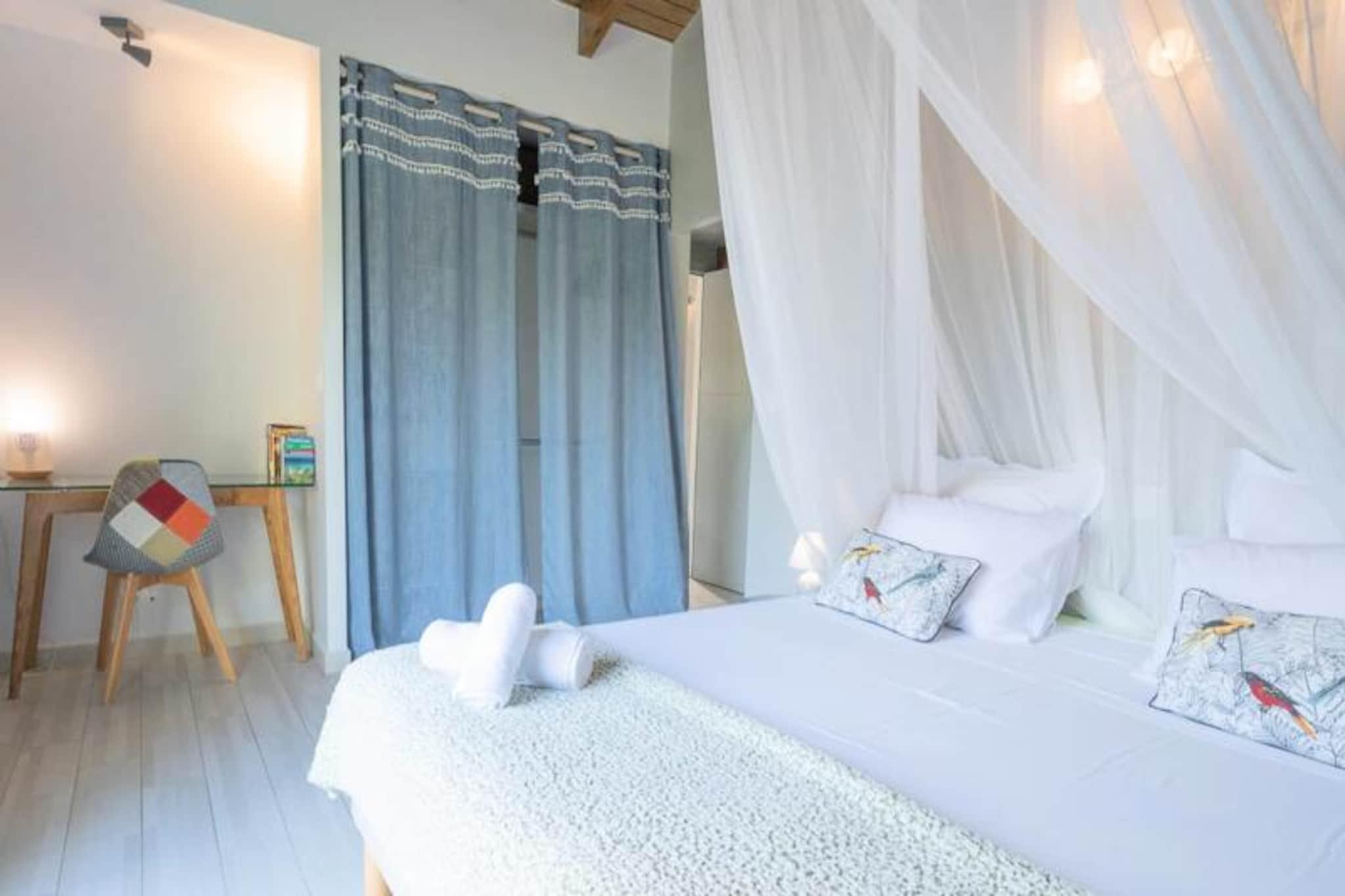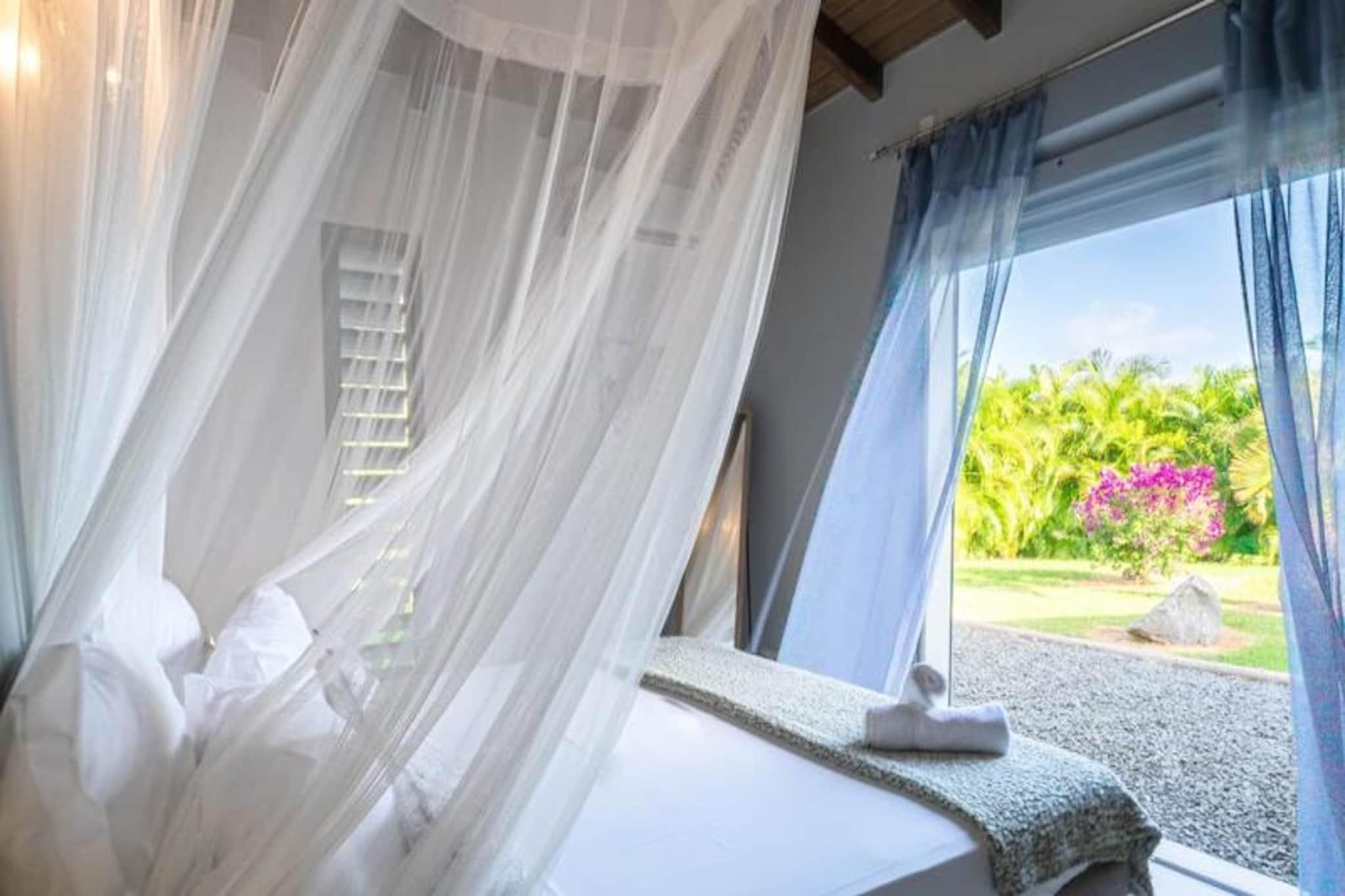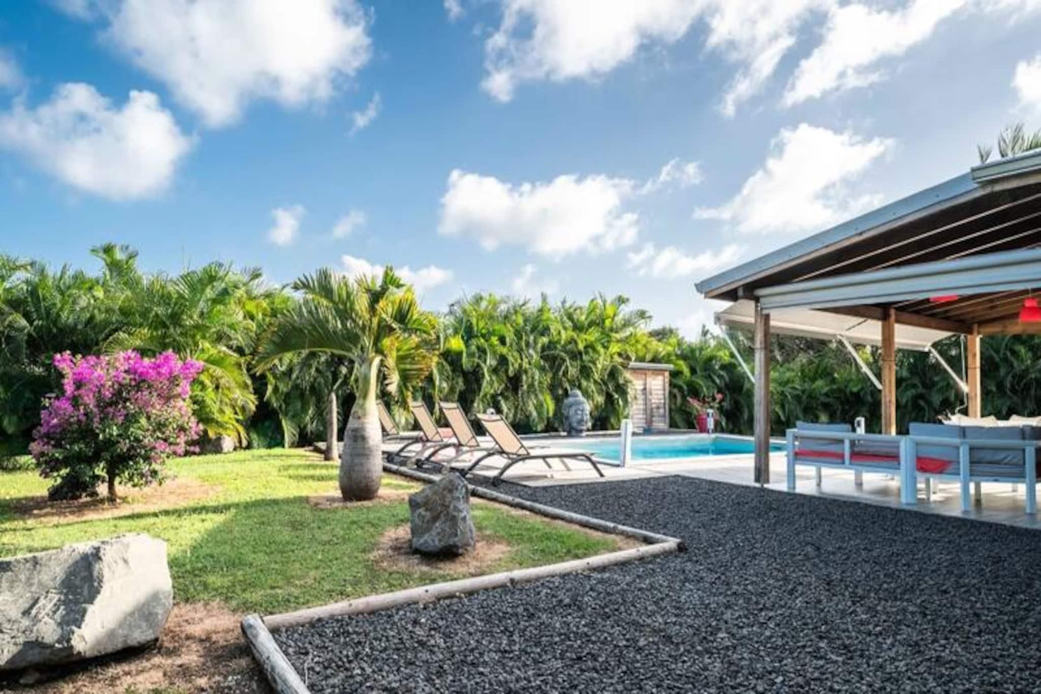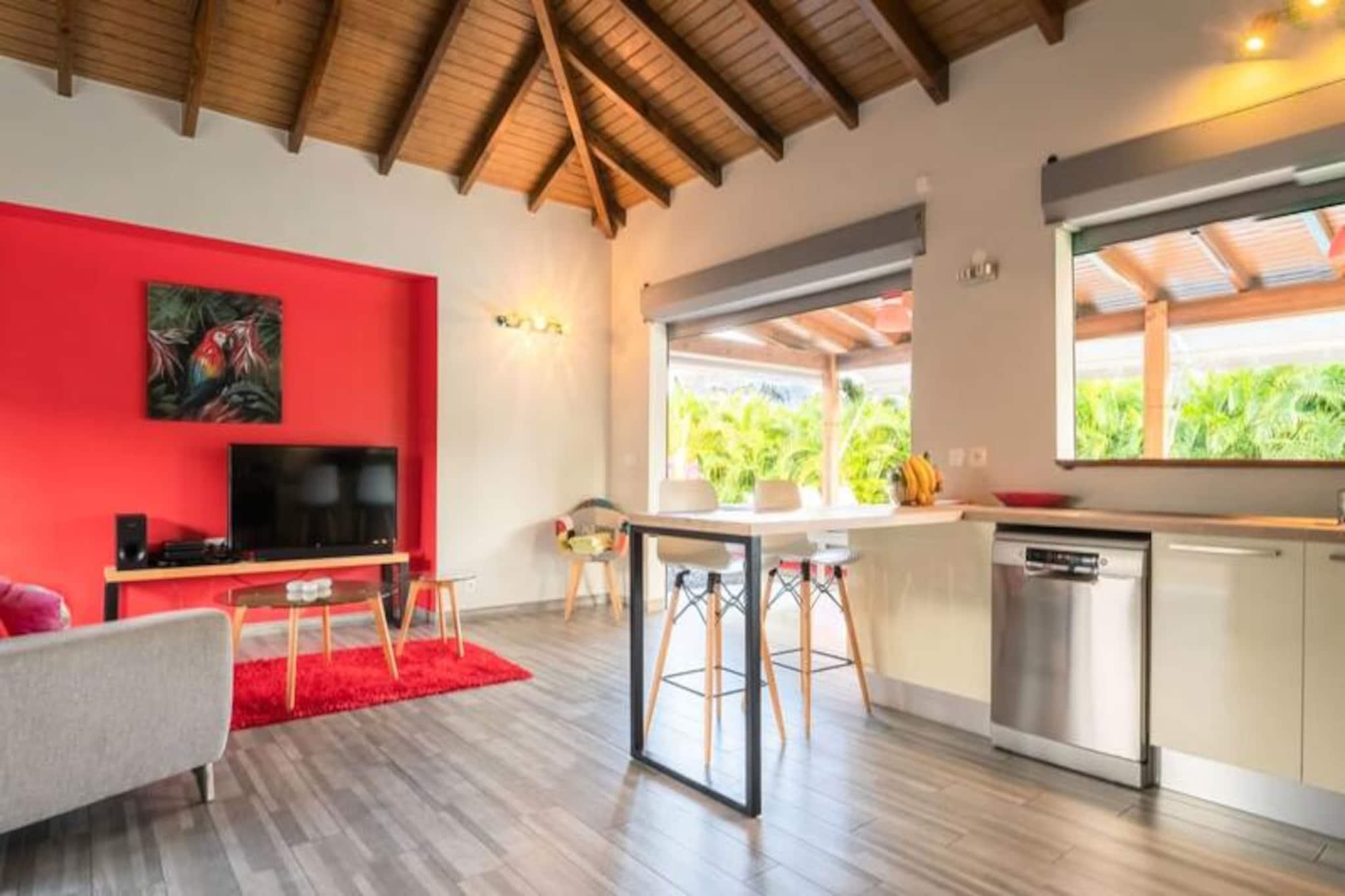 I hjertet af Saint-François, hvor den caribiske sol kysser det turkisblå vand, tilbyder Villa Alysea et idyllisk tilflugtssted for dem, der søger ro og elegance. Omgivet af en frodig tropisk have er denne villa i ét plan en oase af ro, kun få minutter fra de uberørte strande og den pulserende marina i Saint-François. Forestil dig at vågne op til den blide raslen af ??palmer og træde ud til din private pool, en perfekt oase til afslapning. Villaen er designet med traditionel caribisk charme og har to smukt indrettede soveværelser, der begge tilbyder fleksible sovearrangementer med en 180 cm seng og to 90 cm senge, samt to moderne badeværelser. Den åbne opholdsstue udstråler varme og elegance med møbler af høj kvalitet og et fuldt udstyret køkken med dobbeltbar og vinkælder. Hver detalje er omhyggeligt udvalgt for at sikre maksimal komfort for op til fire gæster. Ud over villaen inviterer Saint-François dig til at udforske dens mange skatte. Fra den nærliggende Plage des Raisins Clairs og Anse à la Gourde til den travle marina fyldt med gourmetrestauranter og butikker, er der noget for enhver smag. Golfentusiaster vil sætte pris på den internationale golfbane, der ligger kun få minutter væk, mens vandsportsentusiaster kan dykke ned i aktiviteter som surfing og kitesurfing. Villa Alysea er mere end bare et sted at bo; det er en oplevelse af raffineret caribisk livsstil. Med en dedikeret concierge, der imødekommer alle dine behov, fra udflugter til privat transport, lover dit ophold at blive uforglemmeligt. Lad Guadeloupes charme og komforten i Villa Alysea skabe minder, der vil vare hele livet.