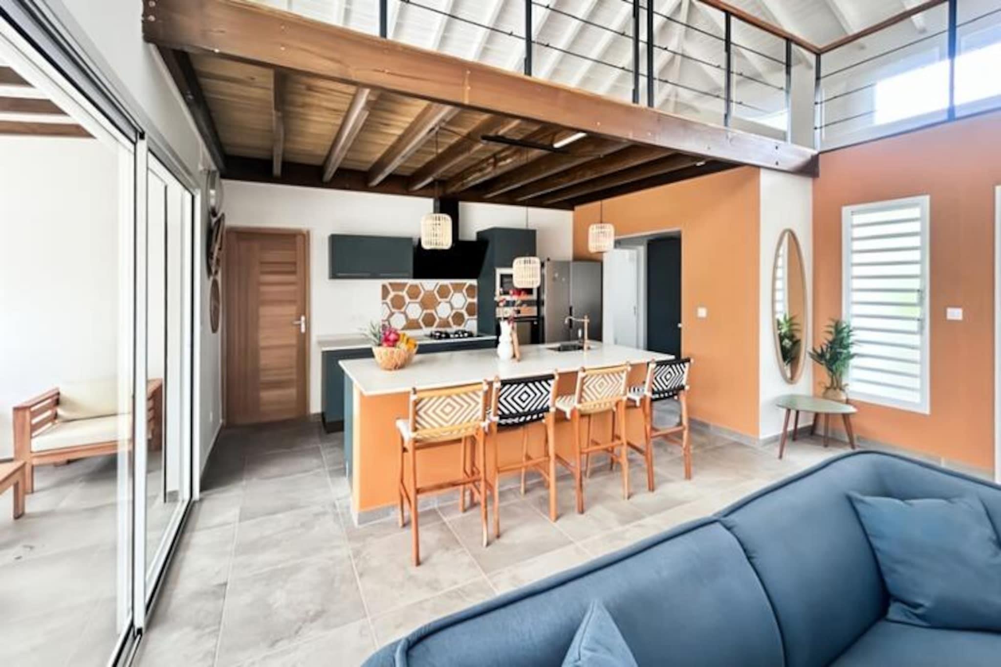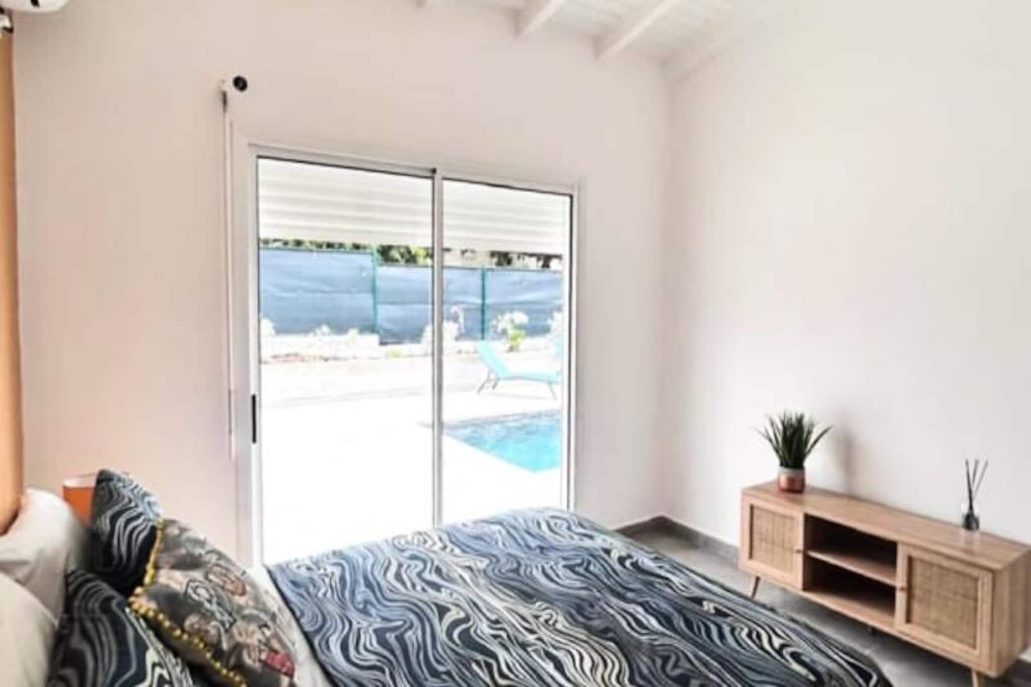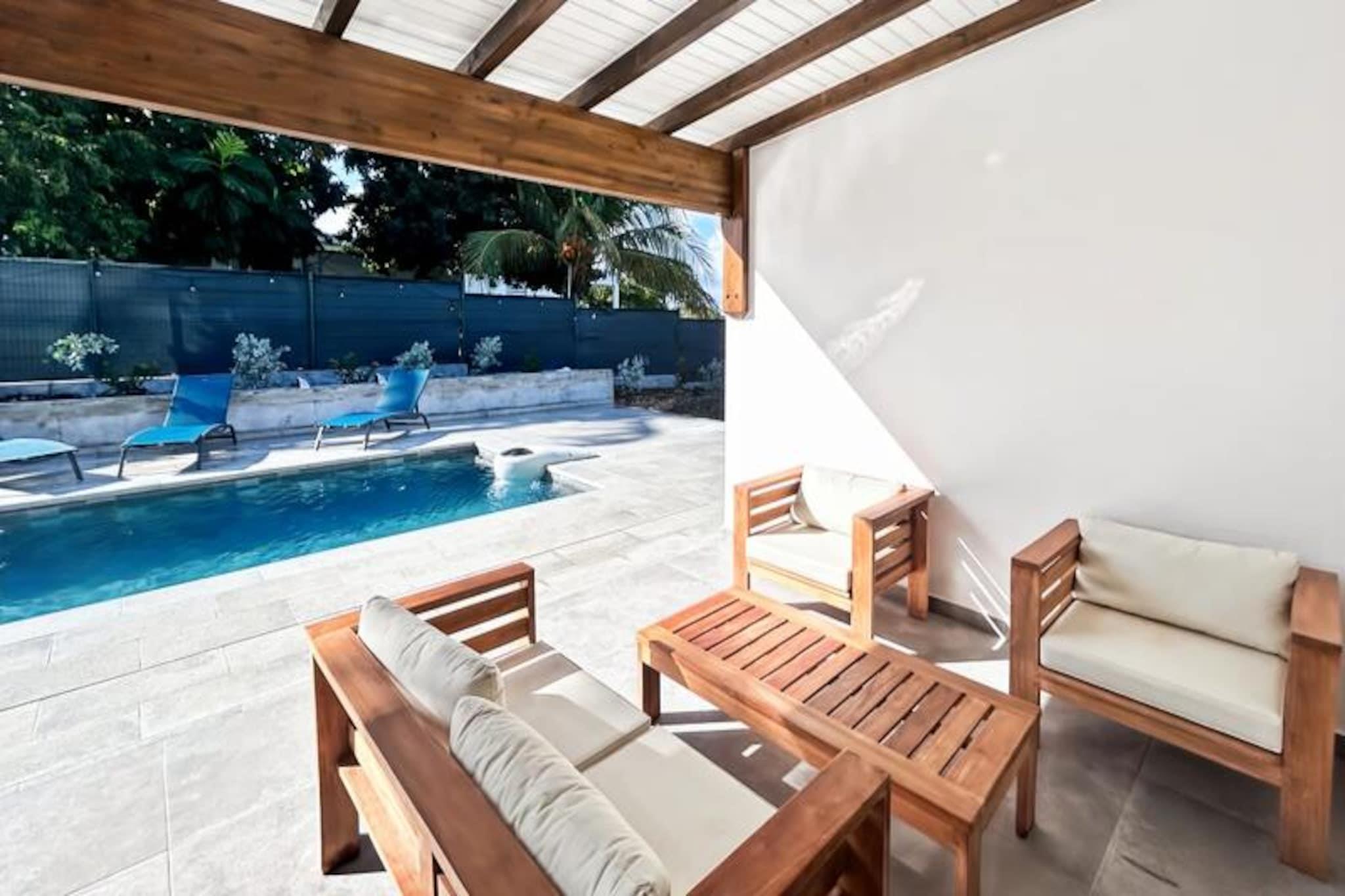 I hjertet af det fredfyldte Morne Goro-kvarter i Saint-François tilbyder Villa Pura Vida en harmonisk blanding af moderne luksus og caribisk charme. Denne nybyggede 4-stjernede villa er en oase af ro, perfekt til familier eller grupper på op til seks personer, der søger en foryngende ferie. Kun 10 minutters gang fra den uberørte Raisins Clairs-strand inviterer denne villa dig til at fordybe dig i Guadeloupes pulserende skønhed. Træd indenfor og oplev et lyst og luftigt opholdsrum designet til ultimativ komfort. Villaen har tre elegant møblerede soveværelser, der hver især er udstyret med en blød 160 cm seng og aircondition for at sikre afslappende nætter. Det fuldt udstyrede køkken er en kulinarisk entusiasts drøm med apparater som ovn, mikrobølgeovn, Nespresso-maskine og meget mere. Den åbne planløsning forbinder problemfrit de indendørs og udendørs områder og skaber den perfekte atmosfære til afslapning. Udenfor er den private pool i centrum og inviterer dig til at køle af under den caribiske sol. Den frodige familiehave er ideel til afslapning, mens gasgrillen sætter scenen for dejlig spisning under åben himmel. Praktiske faciliteter som vaskemaskine, tørretumbler og rejseseng sikrer et stressfrit ophold, mens villaens vandreservesystem tilføjer et ekstra lag af bekvemmelighed. Beliggende kun en kort køretur fra Saint-François' livlige centrum, har du nem adgang til supermarkeder, bagerier og det travle lokale marked. Den nærliggende Marina de Saint-François tilbyder udsøgte restauranter og butikker, mens den internationale golfbane og casinoet tilbyder underholdning for enhver smag. For dem, der søger eventyr, ligger den ikoniske Pointe-des-Châteaux og vandsport på Helleux-stranden kun få minutter væk. Villa Pura Vida er mere end bare et sted at bo - det er en invitation til at opleve det bedste af Guadeloupe. Fra det øjeblik du ankommer, kan du nyde personlig concierge-service, en forfriskende velkomstcocktail og løftet om uforglemmelige minder. Lad denne moderne oase være din port til Saint-François' fortryllende skønhed.