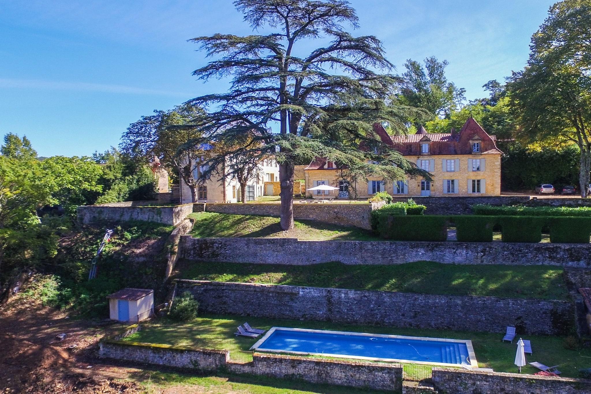 Tilbring din ferie i dette smukt renoverede landsted beliggende på en stor 75 hektar stor ejendom nær Siorac-en-Périgord. Ideel til familier eller grupper af venner, hjemmet tilbyder en privat skov, naturskønne vandrestier og en forfriskende swimmingpool åben fra april til september (ikke opvarmet). Huset blander autentisk charme med moderne indretning og inkluderer et fitnesscenter (tilgængeligt når som helst) og en sauna (tilgængelig tirsdag til lørdag med forudbestilling). Der er en udendørs stikkontakt til elbilopladning. Udforsk nærliggende kulturelle skatte som Commarque Slot (25 km), Castelnaud-la-Chapelle (13 km), Milandes (10 km) og Beynac-et-Cazenac (14 km). Kanosejlads på Dordogne-floden ved Siorac eller Cenac et Saint Julien (19 km) er et must, og golfelskere vil nyde den 18-hullers bane kun 1 km væk. Dagsture til Montignac (44 km), Rocamadour (65 km) og Bergerac (50 km) byder på naturskønne køreture og vingårdsbesøg. Restauranter og supermarkeder er bekvemt placeret inden for 5 km. Afslapning er nøglen her - tilbring dine dage med at slappe af ved poolen, nyd udsigten fra terrassen eller slentre gennem enge og skove. Ejendommens fredelige omgivelser og tankevækkende faciliteter gør det til en perfekt base for at udforske Dordogne, mens du nyder komforten ved et tilbagetog på landet.