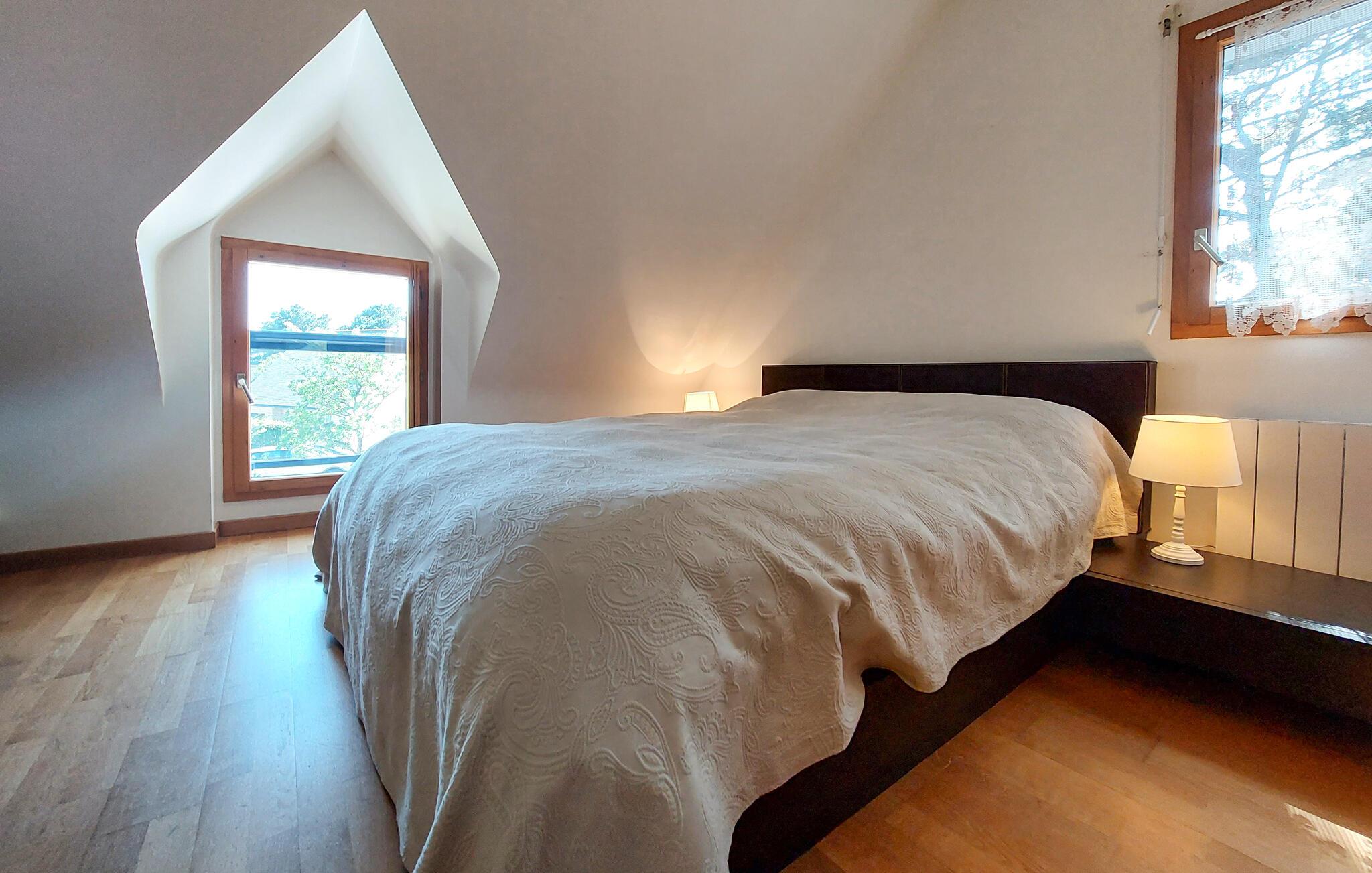 Velkommen til dette store og smukke stenhus i Saint-Gildas-de-Rhuys. Dette familievenlige tilflugtssted tilbyder en behagelig og rummelig atmosfære, der er ideel til jeres fælles feriedage. De lyse indendørs rum er smagfuldt indrettet og udstråler en varm hygge. Tænd pejsen om aftenen og gør det hyggeligt, mens I spiller og snakker i stuen.