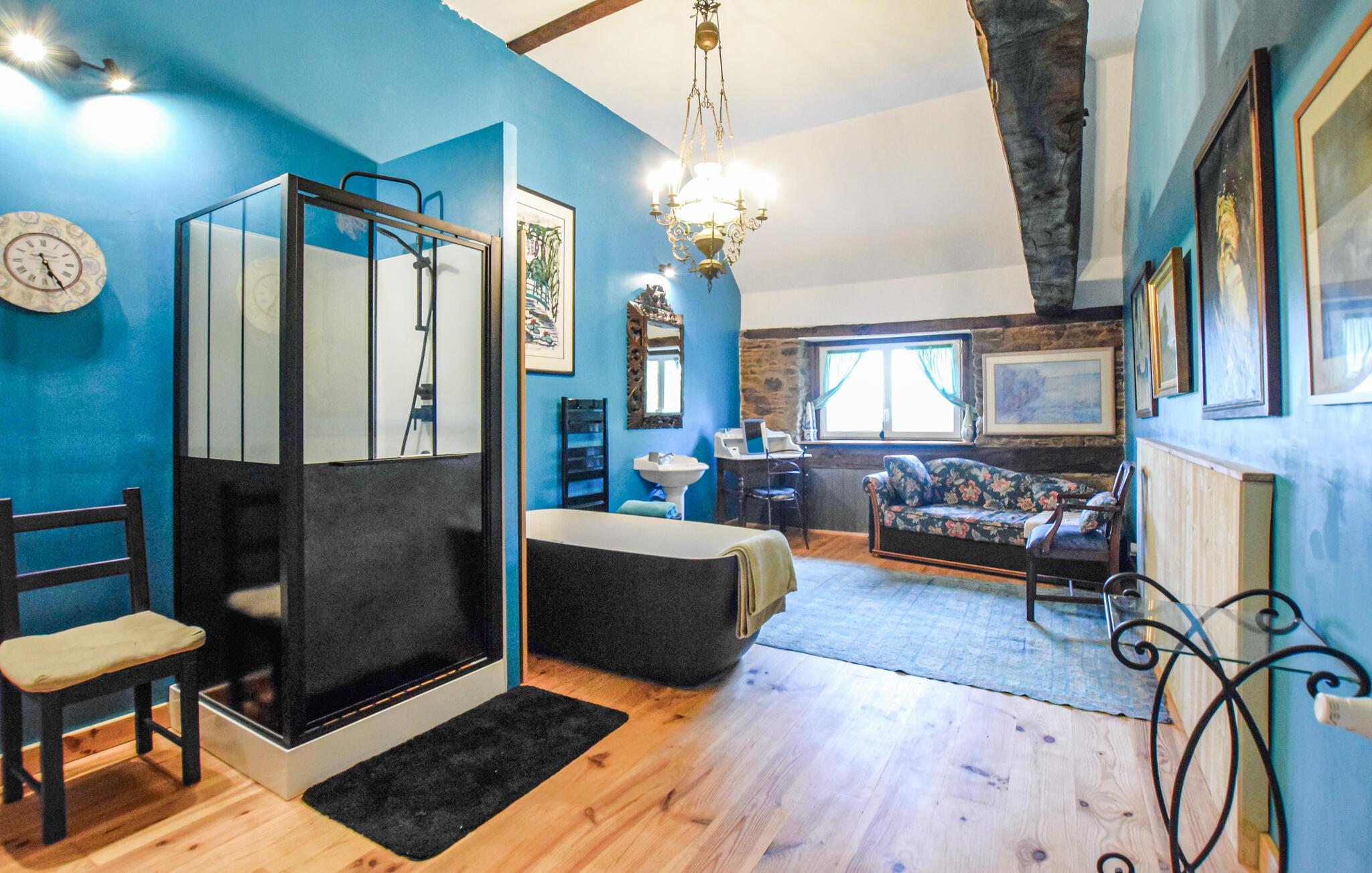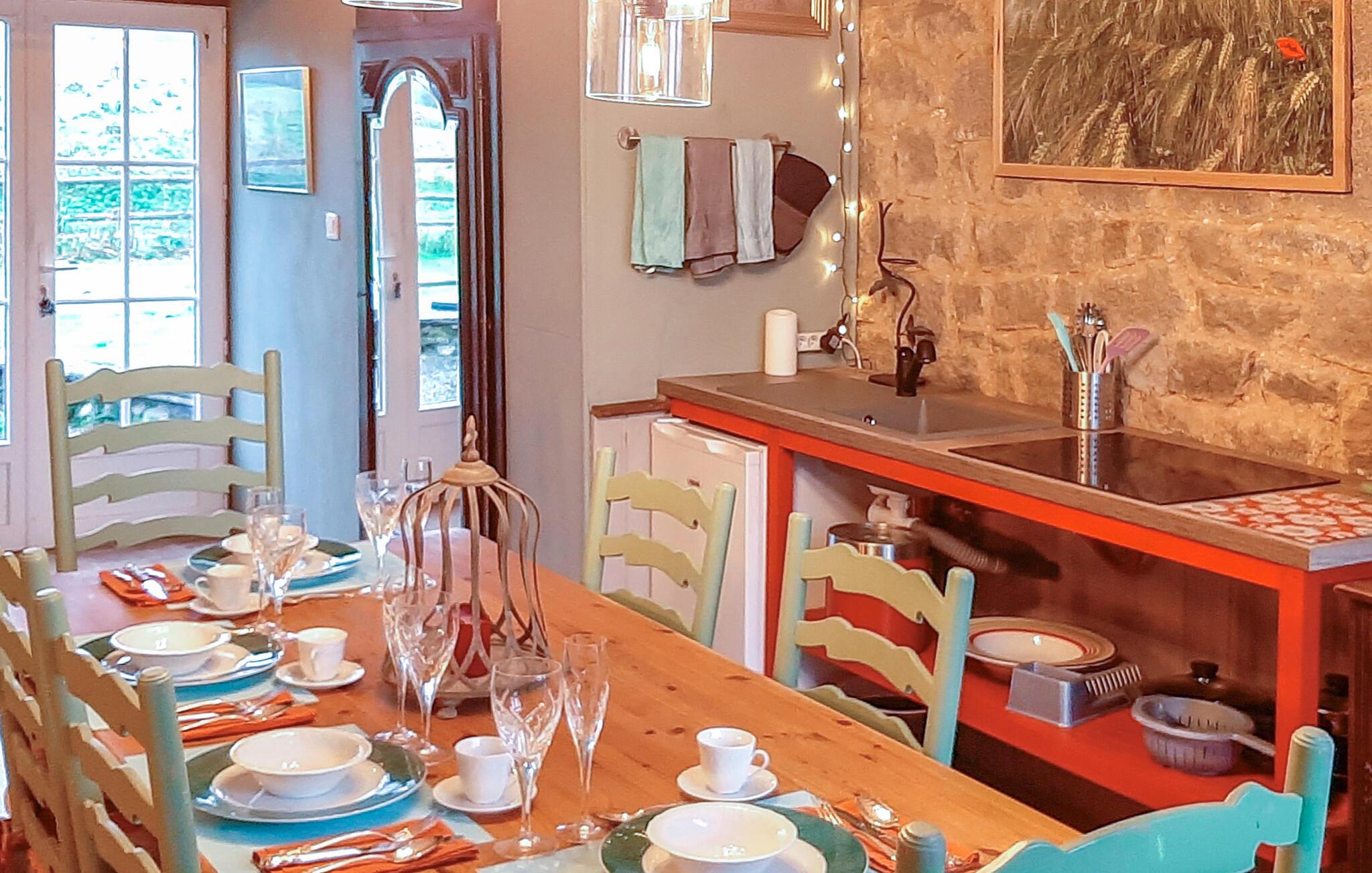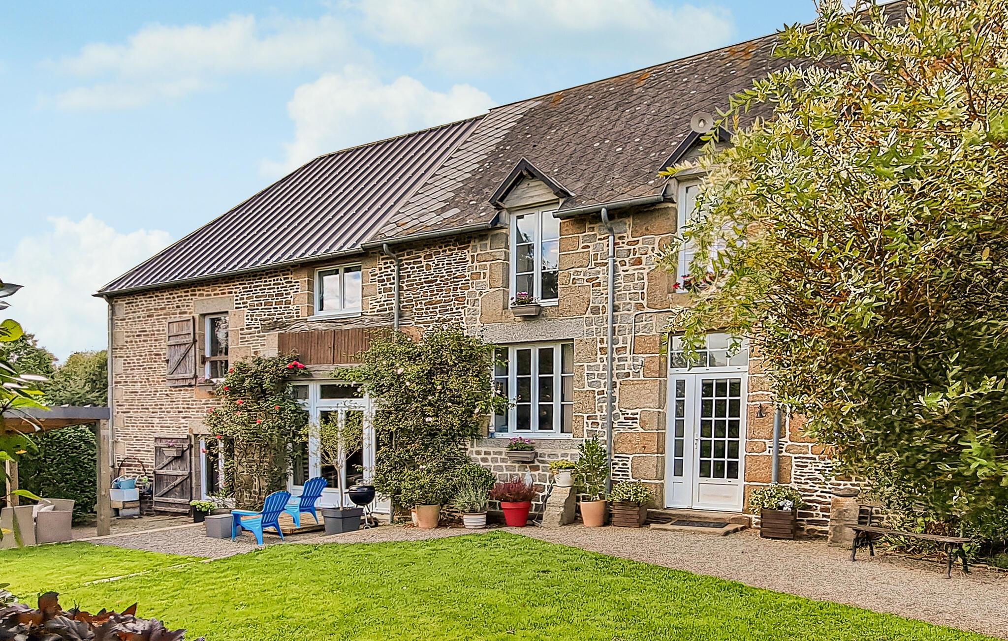 Dette charmerende feriehus i Saint-Hilaire-du-Harcouët føles som en skattekammer – et sandt „Ali Baba“-eventyr. Den rummelige indretning og kunstneriske dekoration gør hvert rum til noget særligt. Fra stuen er der adgang til sydterrassen, mens køkkenet og spisestuen åbner ud til en nordvendt terrasse, som giver jer både solrige og skyggefulde hjørner til afslapning. Nyd roen og den særlige atmosfære, mens I slapper af i solen eller ser børnene lege i haven.