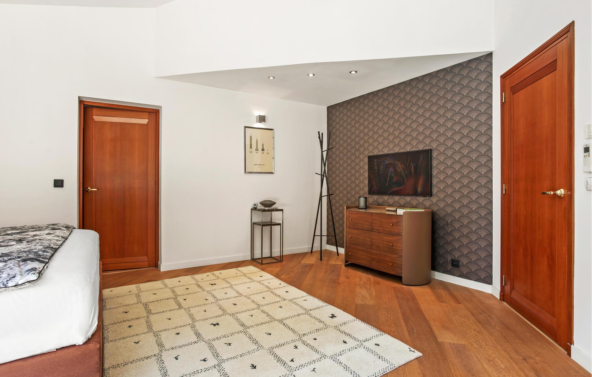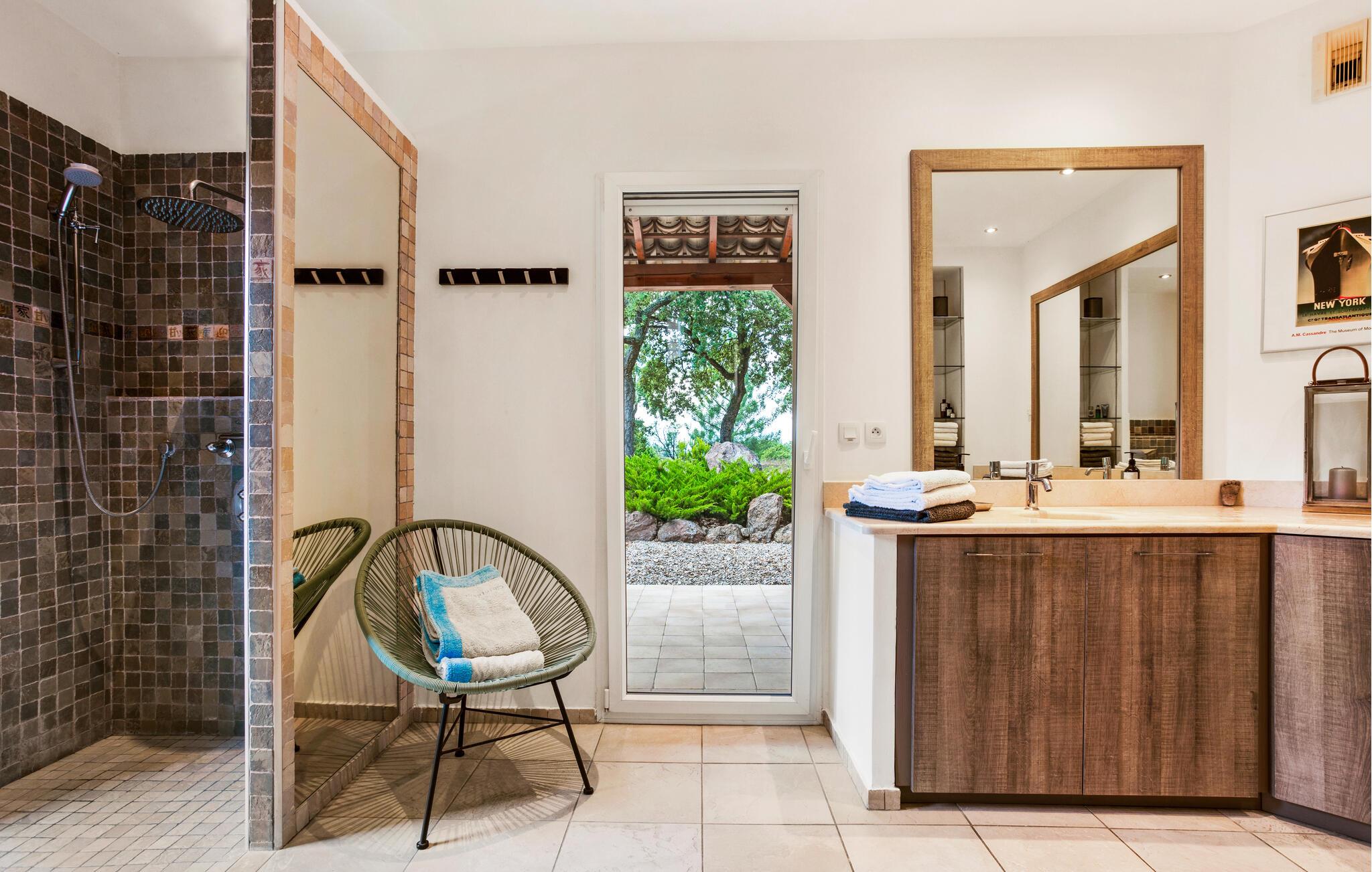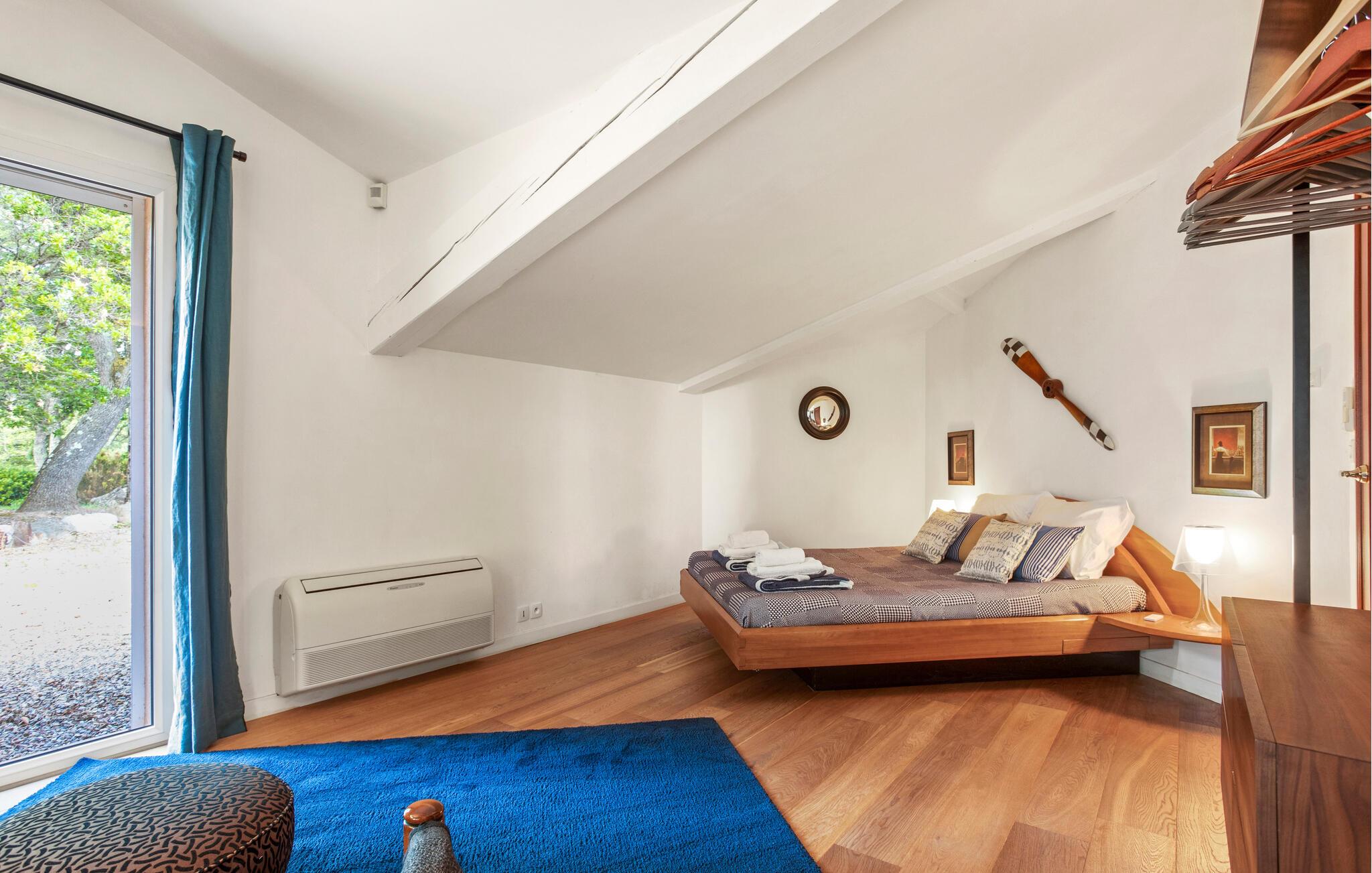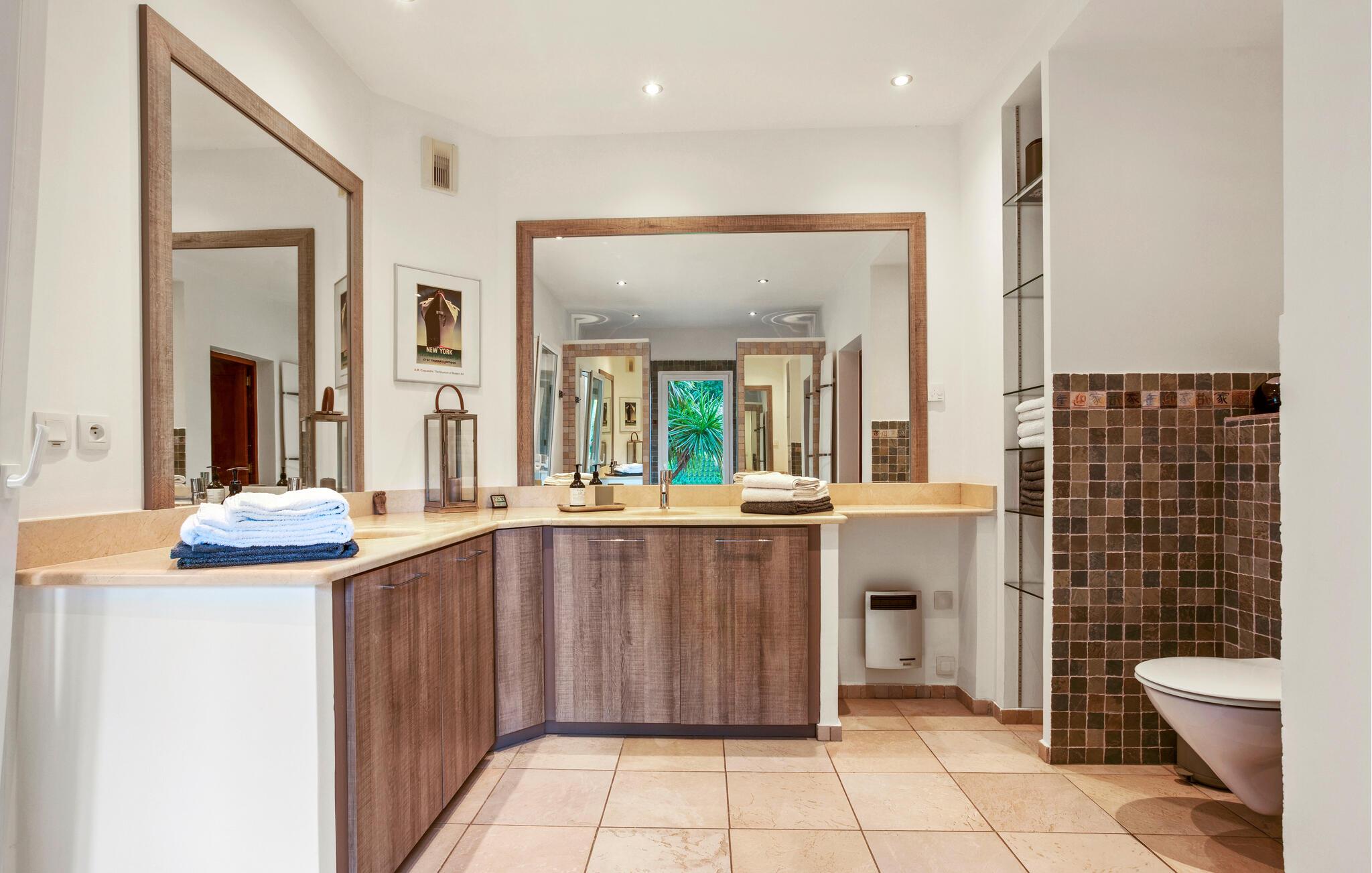 Denne store og eksklusivt udstyrede ejendom ligger omgivet af en smuk park og giver jer fuldt privatliv midt i fortryllende omgivelser. Slap af i den stilfulde opholdsstue, hvor store vinduespartier giver en vidunderlig udsigt til det grønne. Træn i fitnessrummet, slap af i saunaen, og nyd fælles madlavningsaftener og lækre måltider.