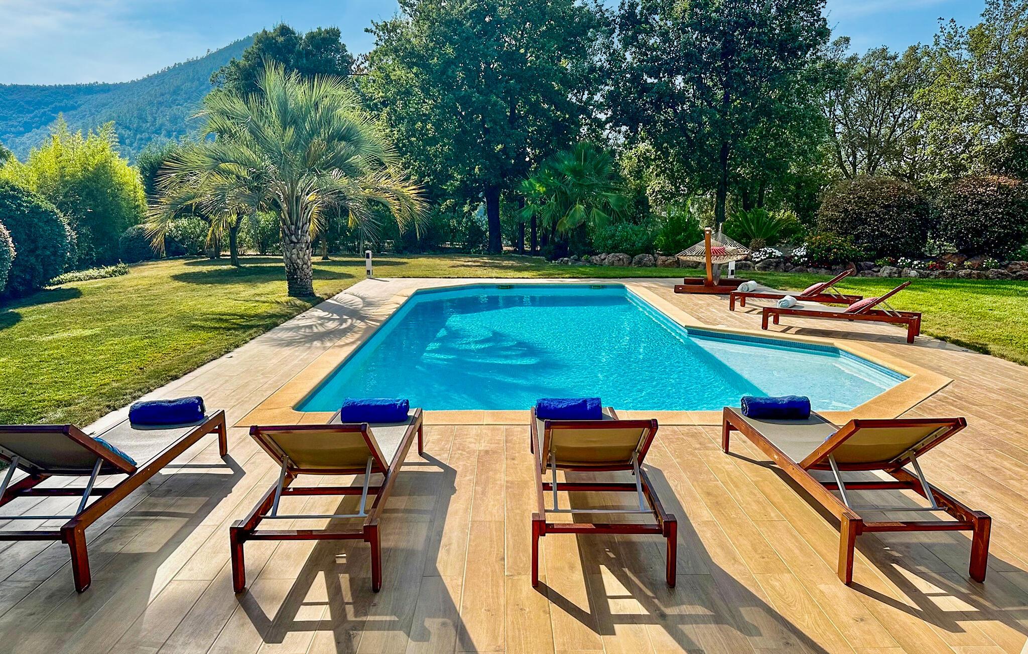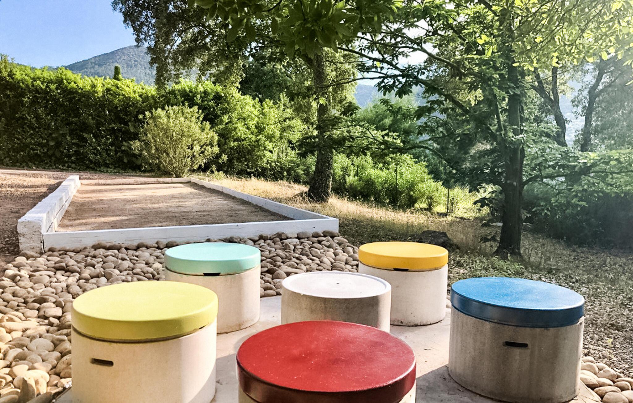 Tag en svømmetur i poolen straks fra morgenstunden af, og nyd den fredelige stemning, når I spiser morgenmad udenfor. Læs en bog i de komfortable havemøbler, eller afhold en stemningsfuld grillaften. Hold øje med jeres børn, mens de leger i poolens lavvandede lagune, spil petanque eller bordtennis, og nyd et glas vin i stearinlysets skær til langt ud på aftenen.