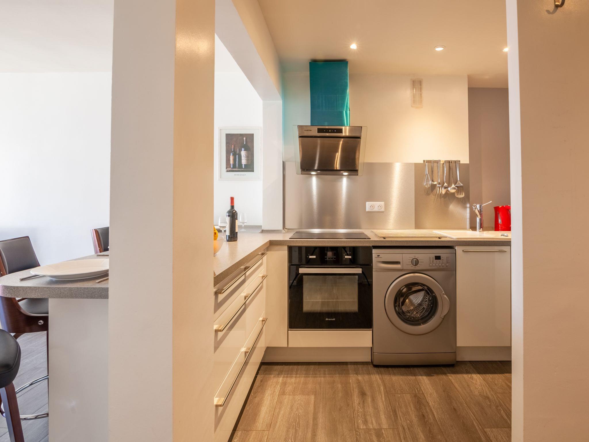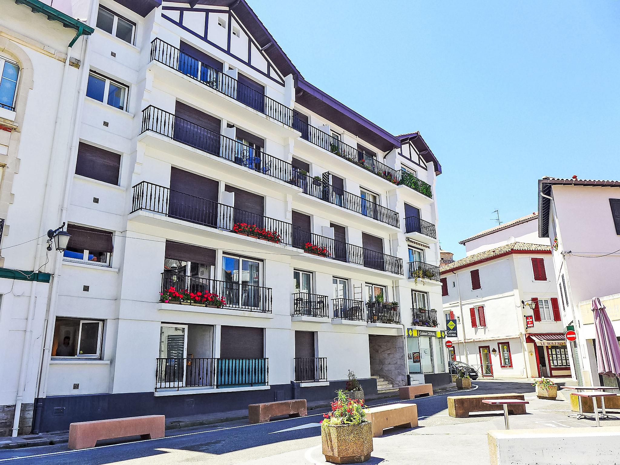 Residence "Résidence de France". In a central, busy position, 200 m from the sea, 200 m from the beach. Shop 50 m, grocery 100 m, shopping centre 1.5 km, restaurant, bakery 50 m, café 100 m, pedestrian zone 50 m, bicycle rental 300 m, 1 minute walk to the centre, bus stop 260 m, railway station 400 m, sandy beach "St Jean de Luz" 200 m, thermal baths "Thalazur" 400 m. Sports harbour 200 m. Nearby attractions: Marché Halles de St Jean de Luz 100 m. The keys‘ handover takes place by the agency Interhome à 16h, à 1 km.