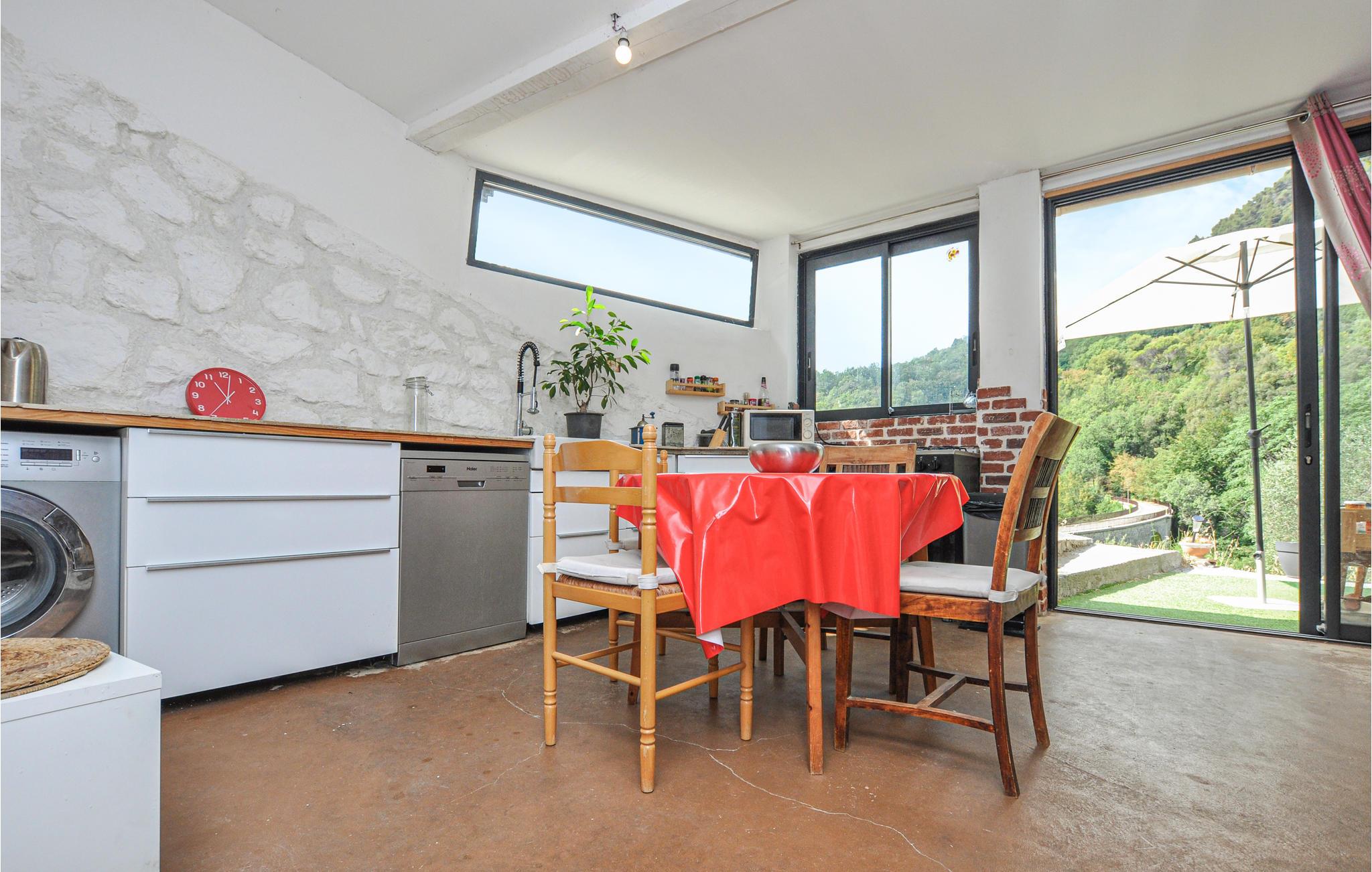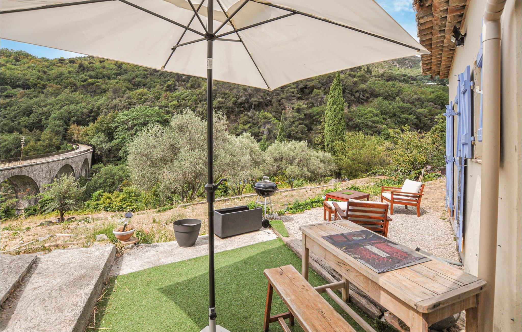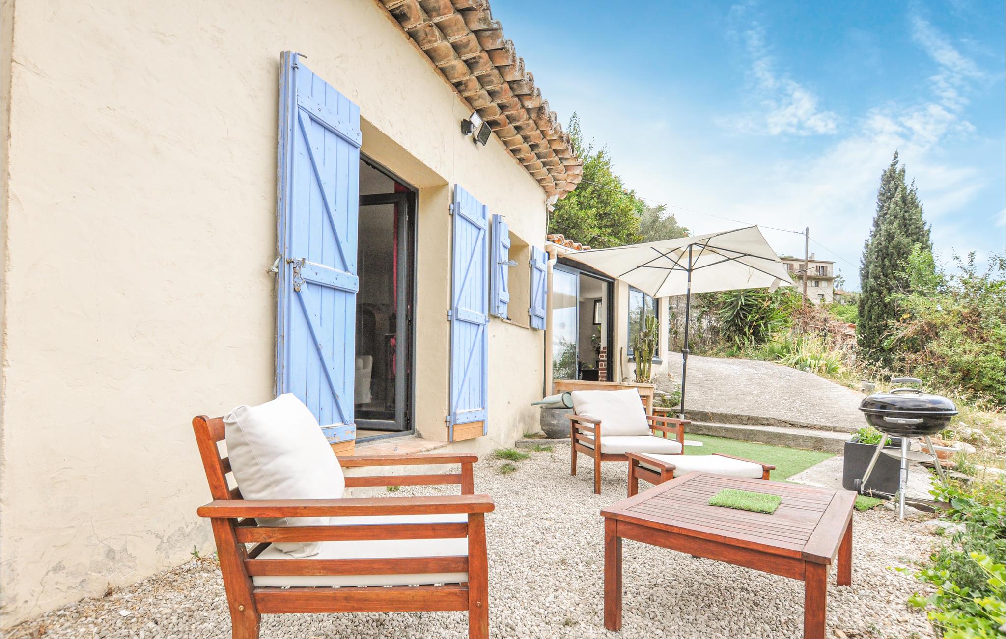 Dette feriehus ligger i landsbyen Saint-Jeannet ved foden af ??de spektakulære kalkstensklipper med navnet Baou de Saint-Jeannet. Udefra har huset et sydlandsk udtryk med tegltag og sandfarvede vægge. Indenfor finder I lyse og praktiske værelser i rustik stil, som giver jer gode rammer til en behagelig ferie.