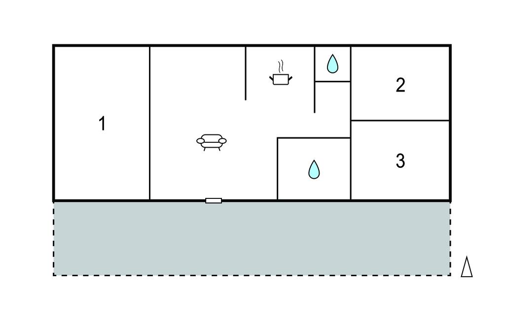 Udenfor venter en overdækket træterrasse med et komfortabelt siddeområde. Nyd måltider sammen under åben himmel eller afslappede aftener med et glas vin. I den lille have kan I nyde freden og roen på liggestolene, læse jeres ferieroman eller blot slappe af.