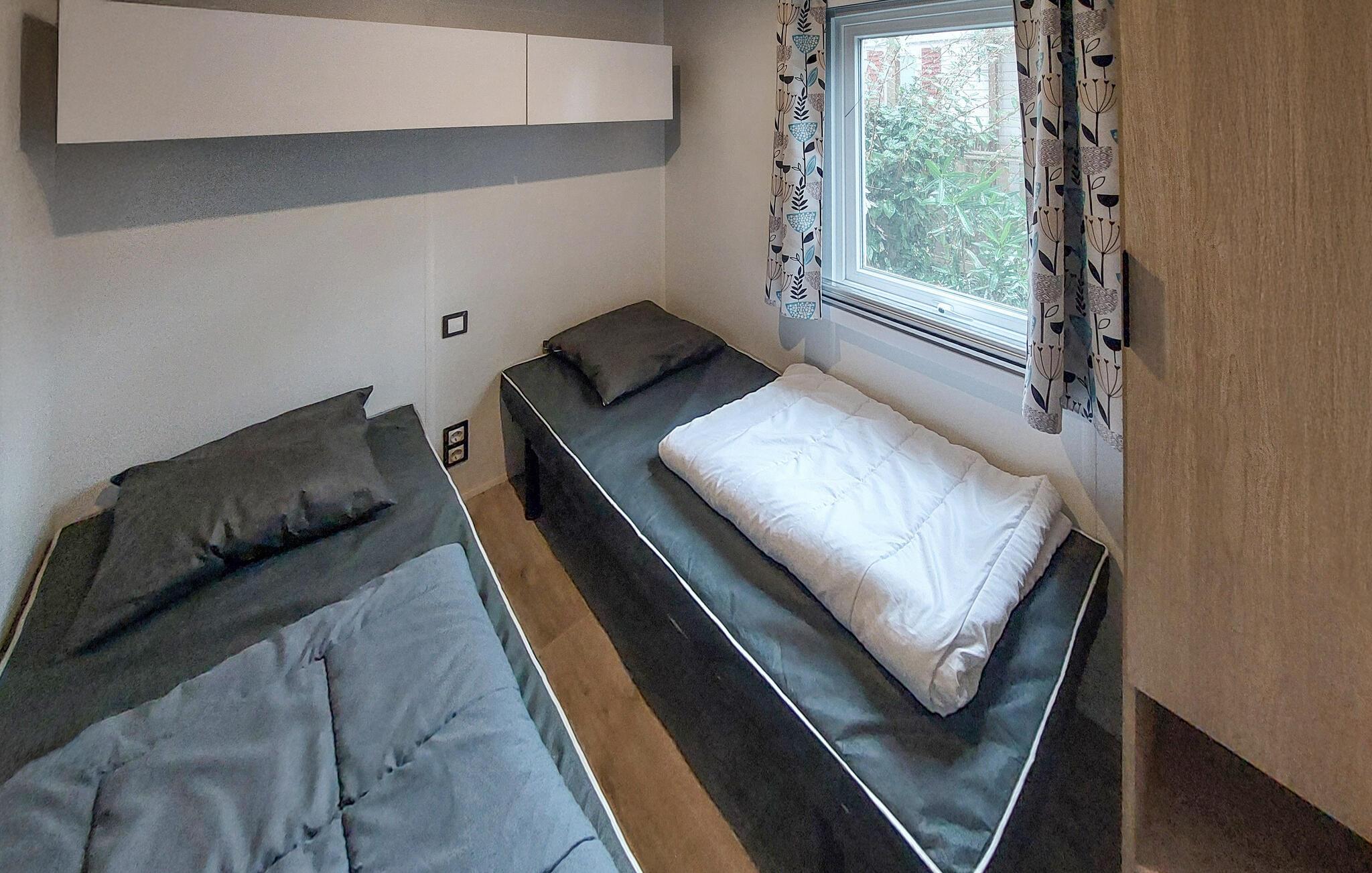 Bliv overrasket af den hyggelige atmosfære i dette moderne møblerede mobilhome. Tilbered solide måltider, planlæg jeres aktiviteter ved det indbydende spisebord og afslut en lang dag med en sjov spilleaften.