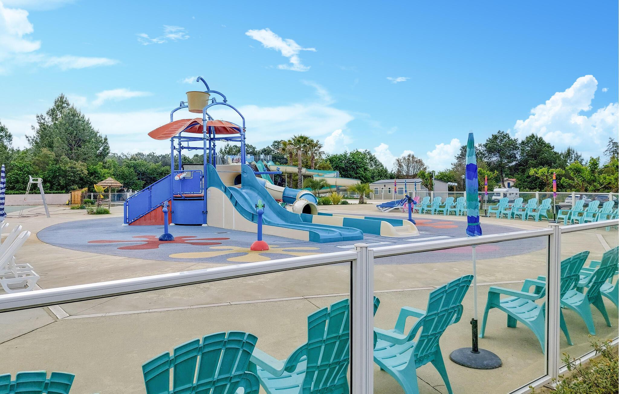 Den overdækkede terrasse er det ideelle sted at begynde dagene med en kop kaffe eller slappe af om aftenen med et glas vin. En plancha lægger op til at tilberede lækre måltider udendørs. I bor på en campingplads, her finder I en restaurant, en bar, en petanquebane, en tennisbane, en købmand og meget mere. Forskellige shows og aktiviteter finder sted hver aften i den store eventhal. Campingpladsen har to opvarmede pools og et vandfaldsområde for børn og voksne.
