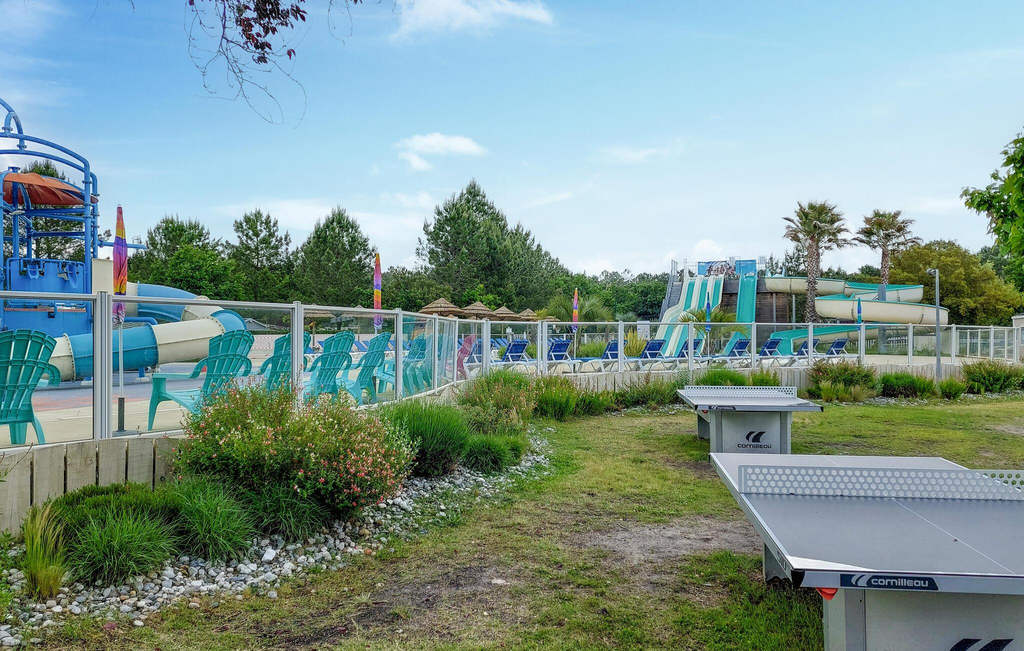 Dra nytte af adgangen til campingpladsens forskellige betalte aktiviteter. Svøm baner i den store pool, nyd rutsjebanerne eller tag med børnene til det farverige vandlegeområde. Den lange sandstrand i Saint-Julien-en-Born og de omkringliggende fyrreskove lægger op til udflugter, cykelture og gåture.