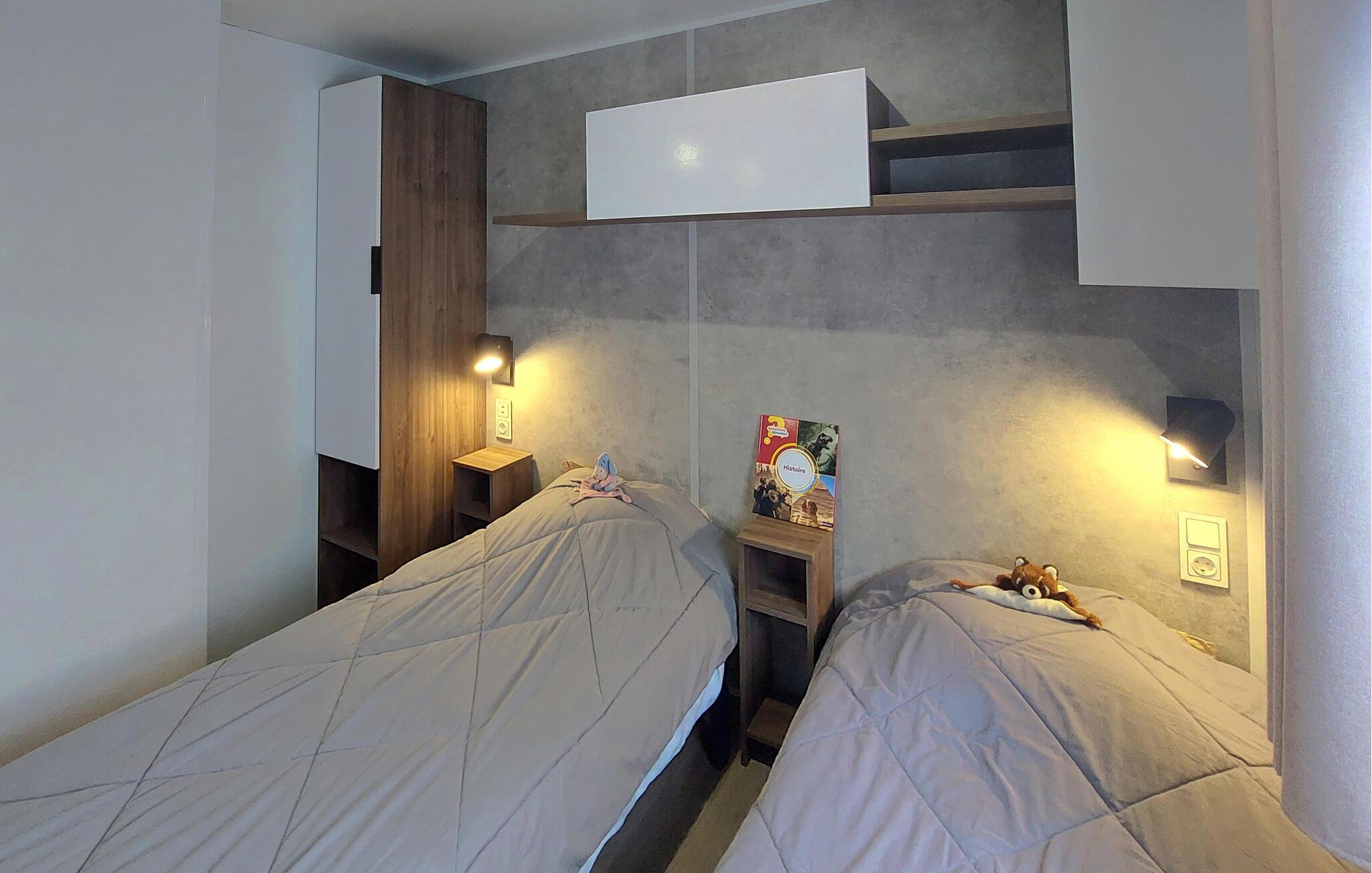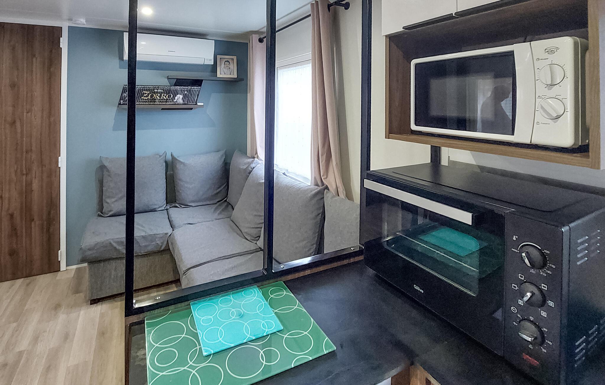 Dette indbydende og praktisk indrettede mobilhome ligger på en campingplads og tilbyder den ideelle base for en række udflugter. Planlæg jeres aktiviteter med afslappende måltider, nyd sjove spilleaftener med familien eller læn jer tilbage på sofaen med en god bog efter en lang dag.