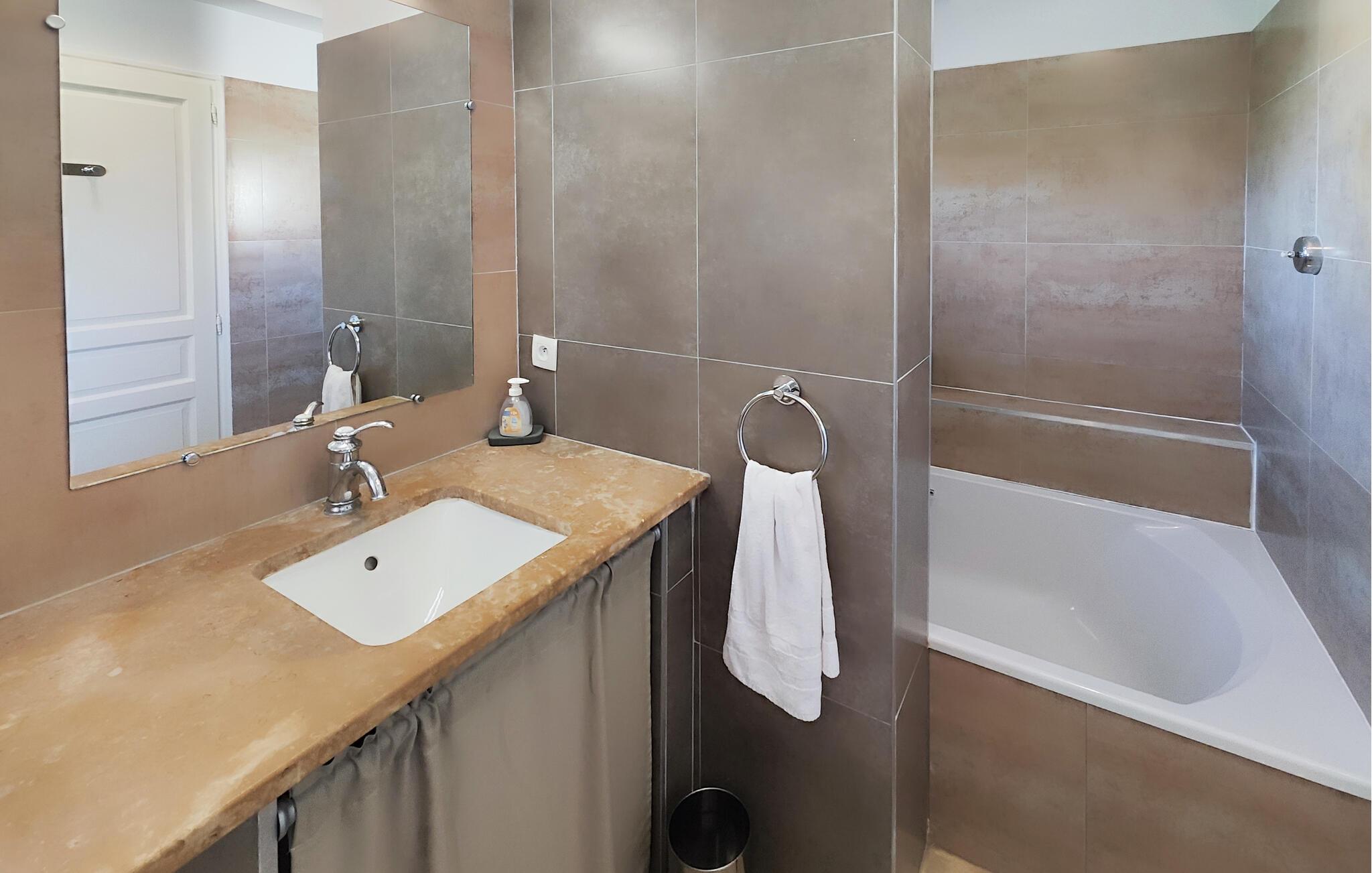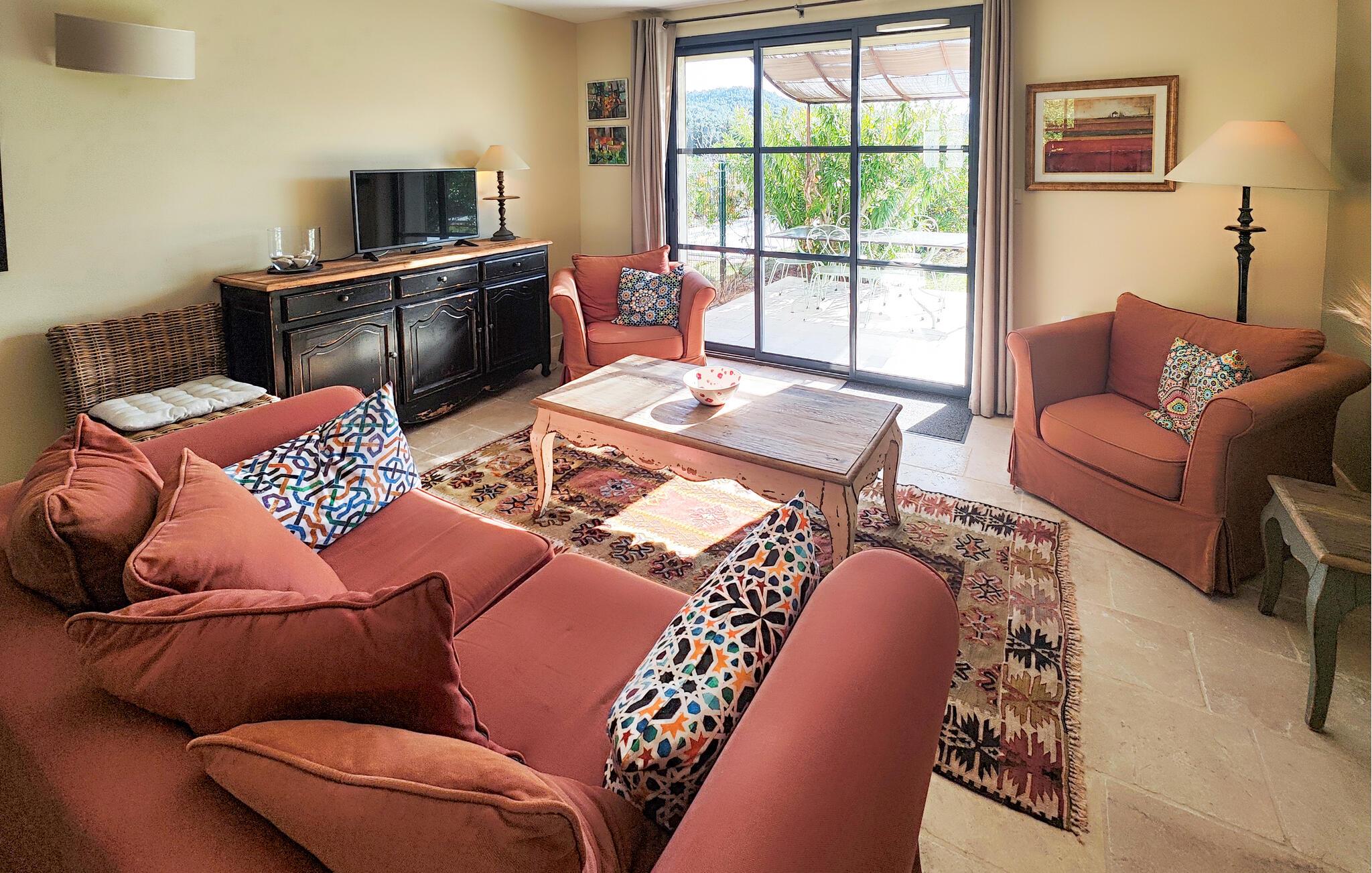 Der venter jer en både afvekslende og afslappende ferie i dette flotte hus, som egner sig perfekt til et ophold med den lille familie. Indretningen fremtræder elegant og stilrent i varme farveskalaer, og husets hjerte er det åbne opholdsrum i stueetagen, hvor der venter jer mange timers hygge. Gør madlavningen til et fornøjeligt fælles projekt og nyd måltiderne ved det rustikke spisebord, inden I runder aftenen af med brætspil eller en god film i den behagelige sofa. Soveværelserne er indbydende og komfortable, og når I står op, kan I starte dagen med en lækker morgenmad på terrassen. Find sol, skygge og læ efter behov og slå mave, inden I begiver jer på udflugt. Når I kommer hjem fra dagens eventyr, kan I dyppe jer i poolen, hvile stængerne og nyde roen og solen.