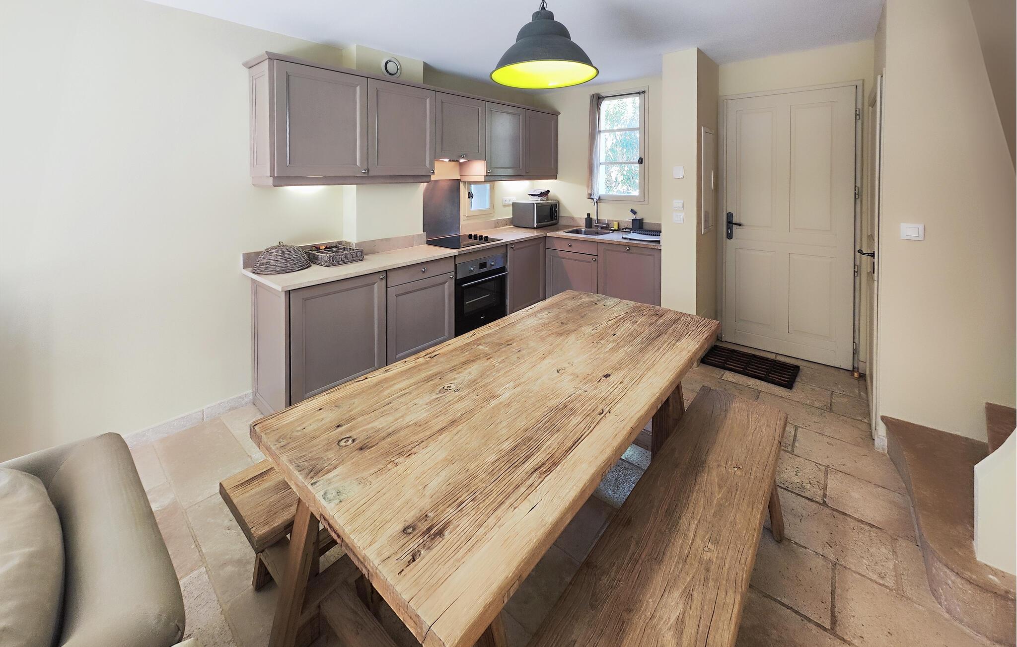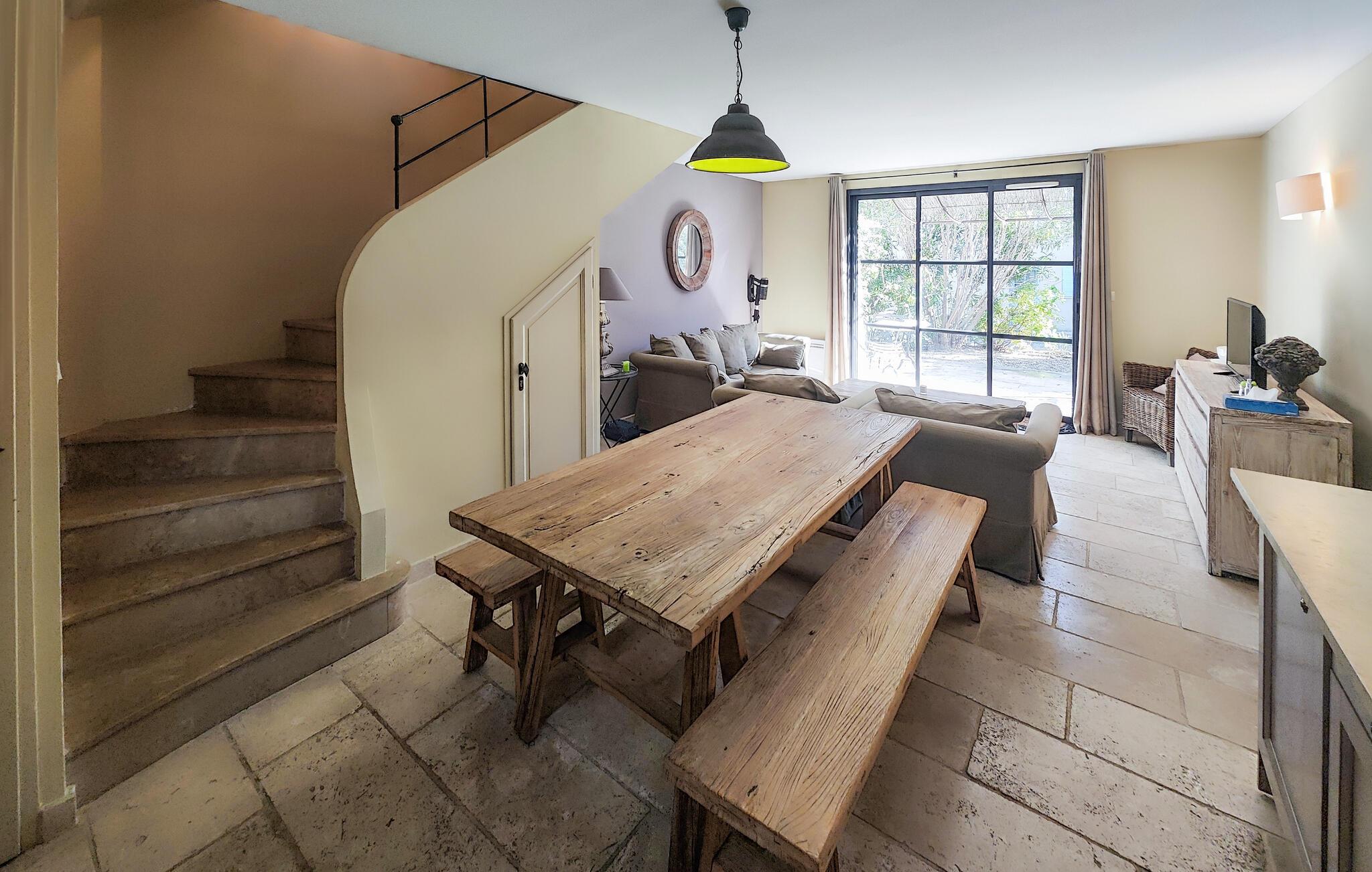 Der venter jer en både afvekslende og afslappende ferie i dette flotte hus, som egner sig perfekt til et ophold med den lille familie. Indretningen fremtræder elegant og stilrent i varme farveskalaer, og husets hjerte er det åbne opholdsrum i stueetagen, hvor der venter jer mange timers hygge. Gør madlavningen til et fornøjeligt fælles projekt og nyd måltiderne ved det rustikke spisebord, inden I runder aftenen af med brætspil eller en god film i den behagelige sofa. Soveværelserne er indbydende og komfortable, og når I står op, kan I starte dagen med en lækker morgenmad på terrassen. Find sol, skygge og læ efter behov og slå mave, inden I begiver jer på udflugt.