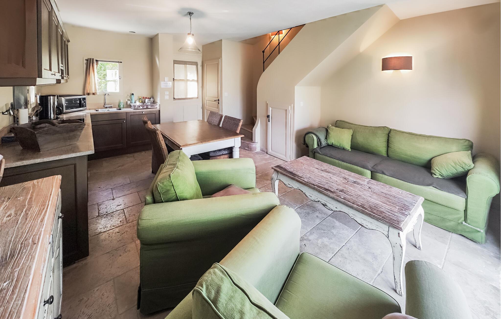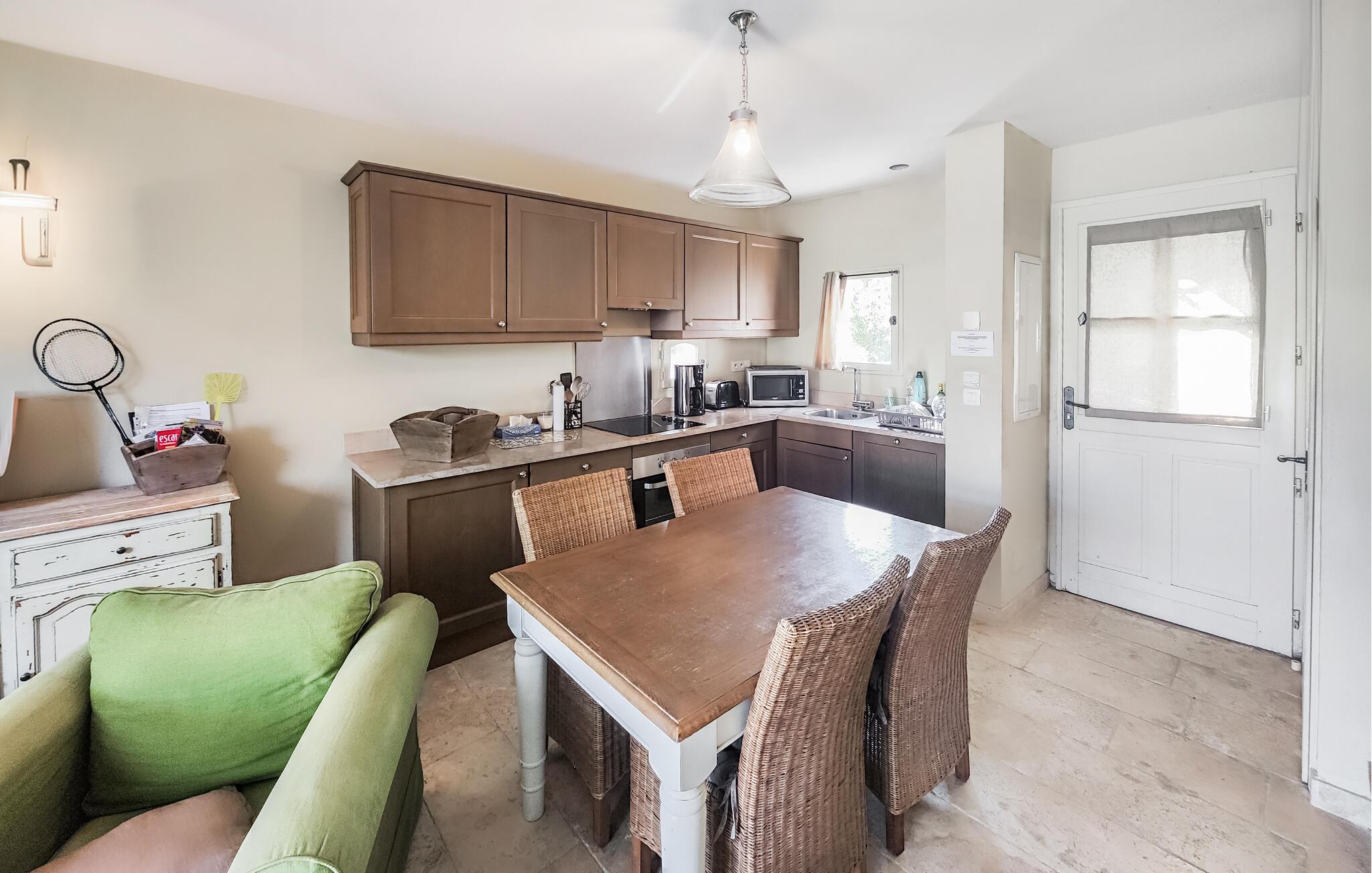 Velkommen til dette flotte hus, der med sin dejlige beliggenhed og indretning danner rammen om en magisk ferie som par eller lille familie. Huset er fordelt over to etager, og det er i stueetagen, den fælles hygge kommer til at udfolde sig i det åbne opholdsrum med køkken, stue og spisebord i ét og samme rum. Med sine varme farver, gode møbler og dejlige lysindfald kan I virkelig sænke skuldrene og komme ned i tempo med god tid til madlavningen og hyggelige filmaftener i sofaen.