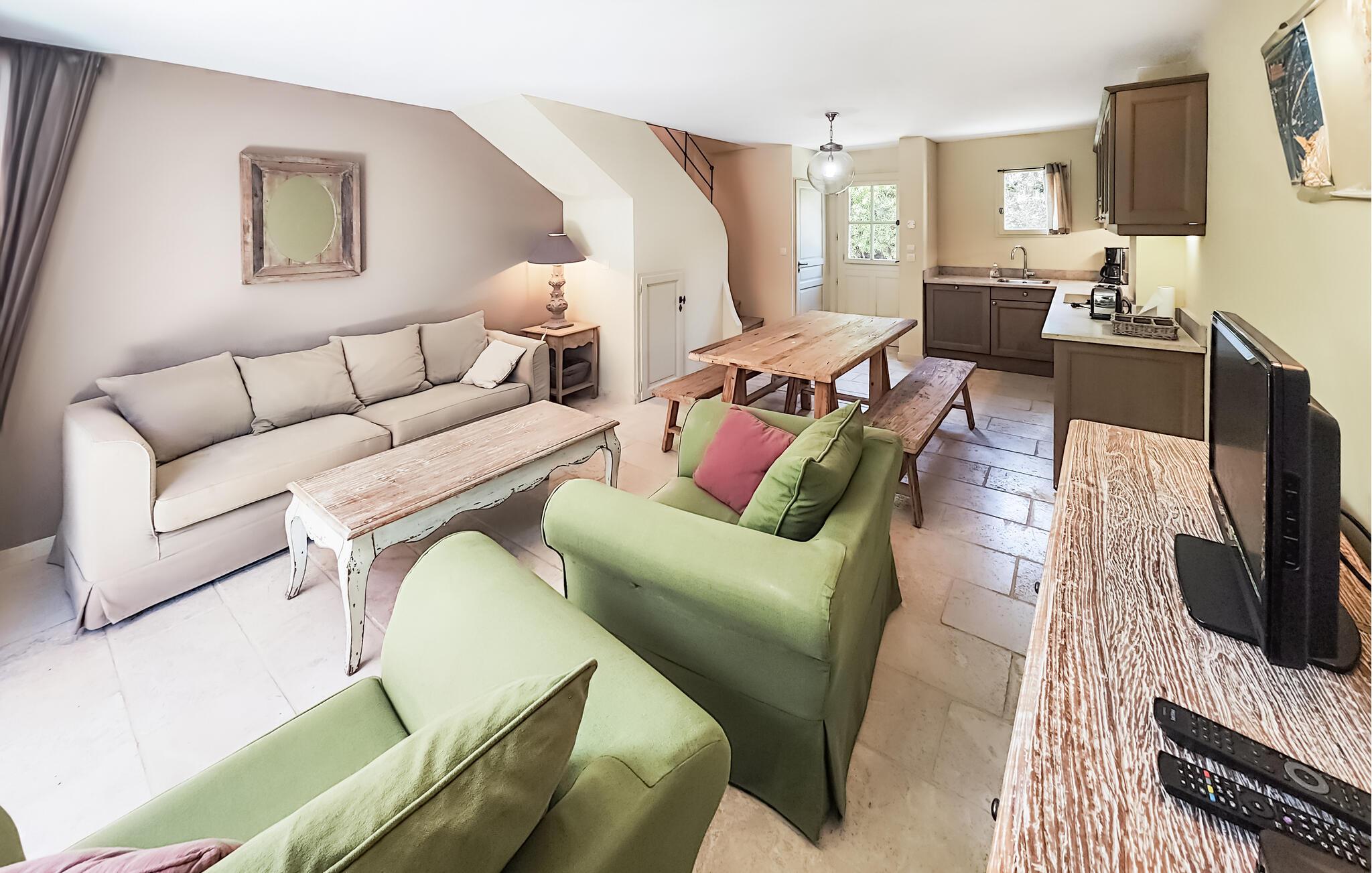 Der venter jer en både afvekslende og afslappende ferie i dette flotte hus, som egner sig perfekt til et ophold med den lille familie. Indretningen fremtræder elegant og stilrent i varme farveskalaer, og husets hjerte er det åbne opholdsrum i stueetagen, hvor der venter jer mange timers hygge. Gør madlavningen til et fornøjeligt fælles projekt og nyd måltiderne ved det rustikke spisebord, inden I runder aftenen af med brætspil eller en god film i den behagelige sofa. Soveværelserne er indbydende og komfortable, og når I står op, kan I starte dagen med en lækker morgenmad på terrassen. Find sol, skygge og læ efter behov og slå mave, inden I begiver jer på udflugt.